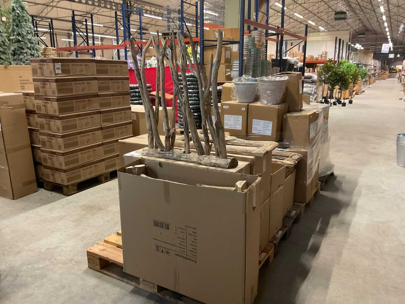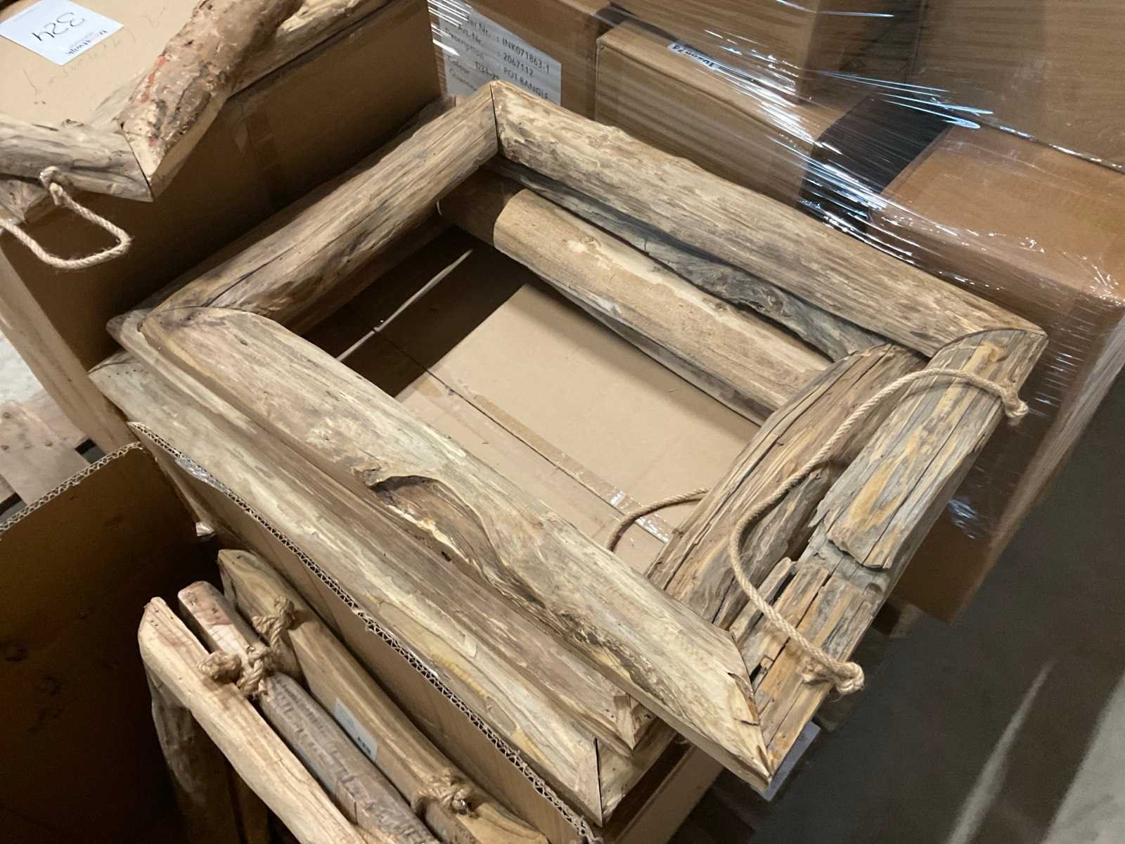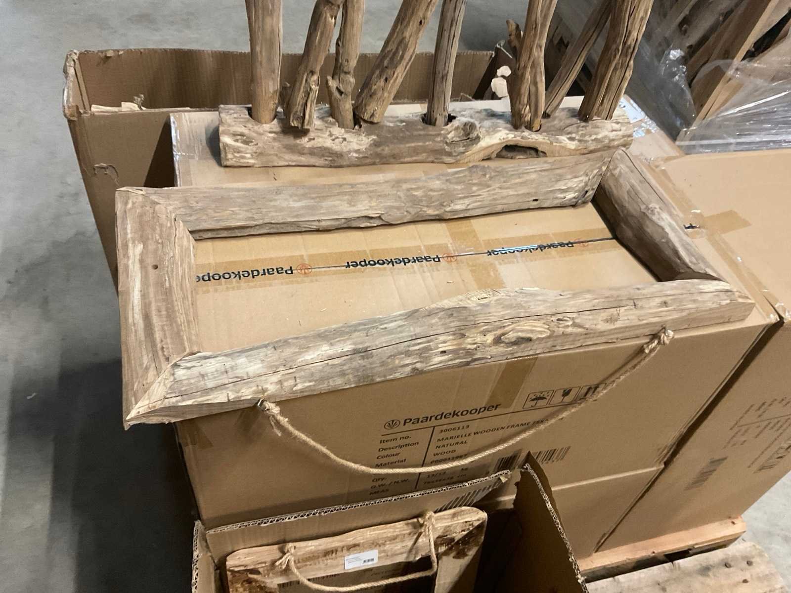 Bestaande uit takken op plank en houten frames in diverse afmetingen, op 2 pallets, inclusief pallets. Materiaal: Kunststof