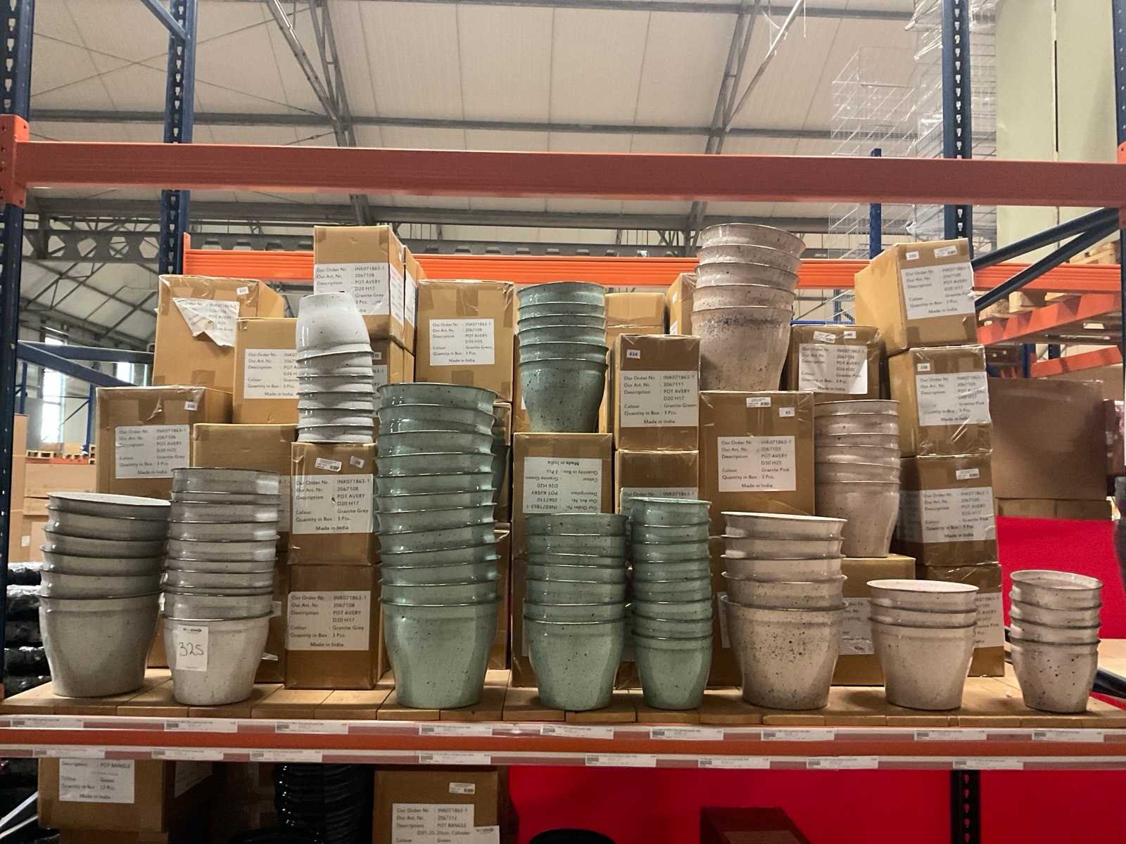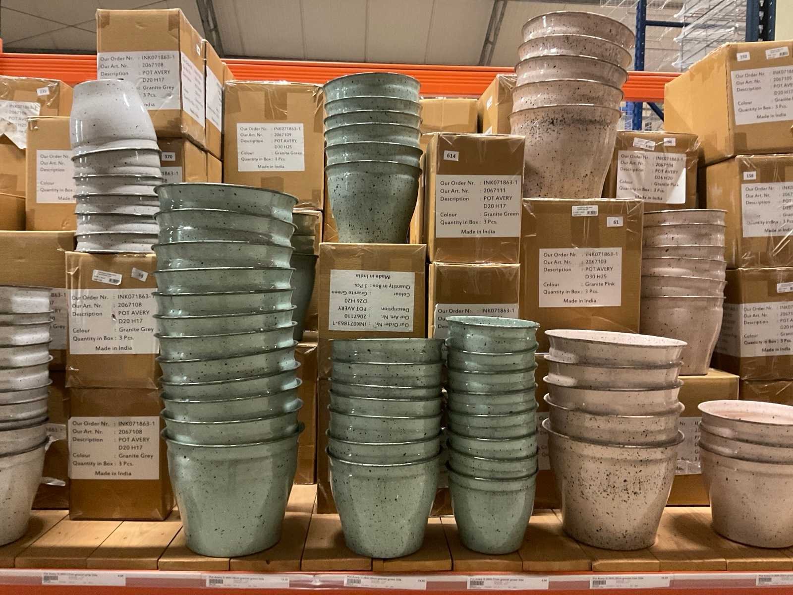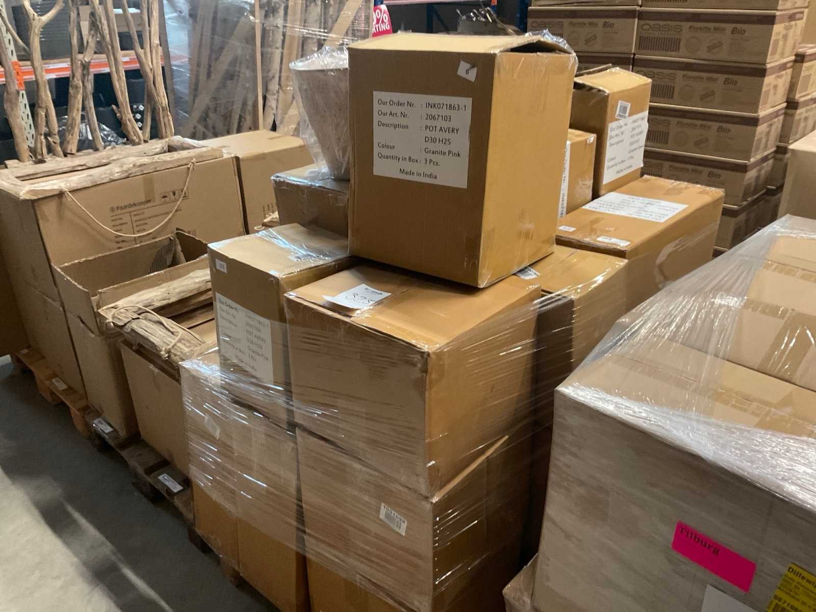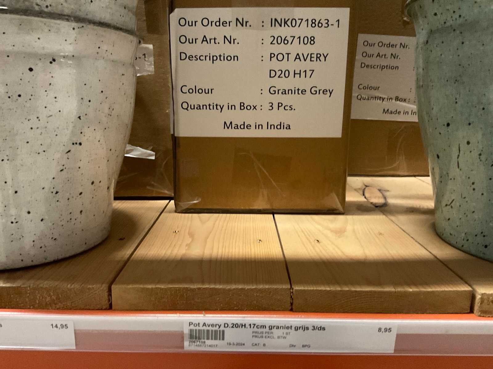 In 3 kleuren, graniet green, grey en pink, in diverse formaten, op 1 pallet en in 1 stellingvak, inclusief pallet. Materiaal: Kunststof