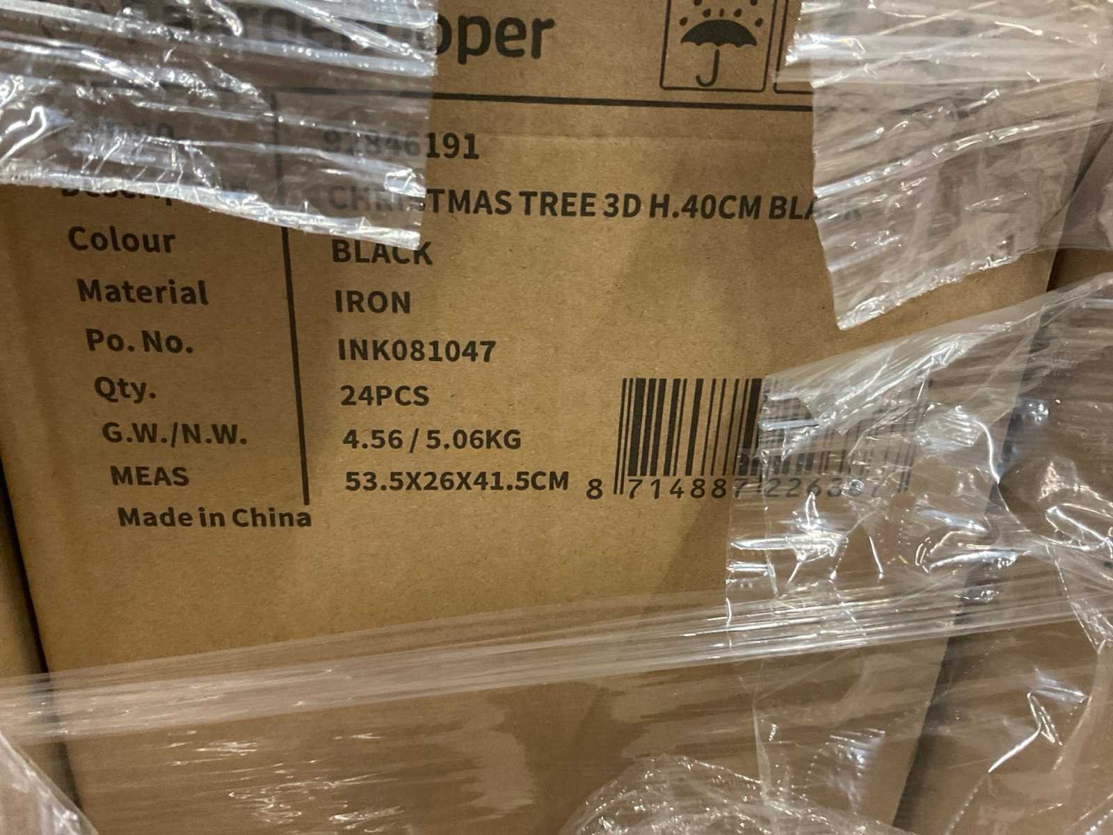Metalen kerstboom, 3D op pallet, inclusief pallet. Model: Metalen Kleur: Zwart Hoogte: 40cm Materiaal: Metalen