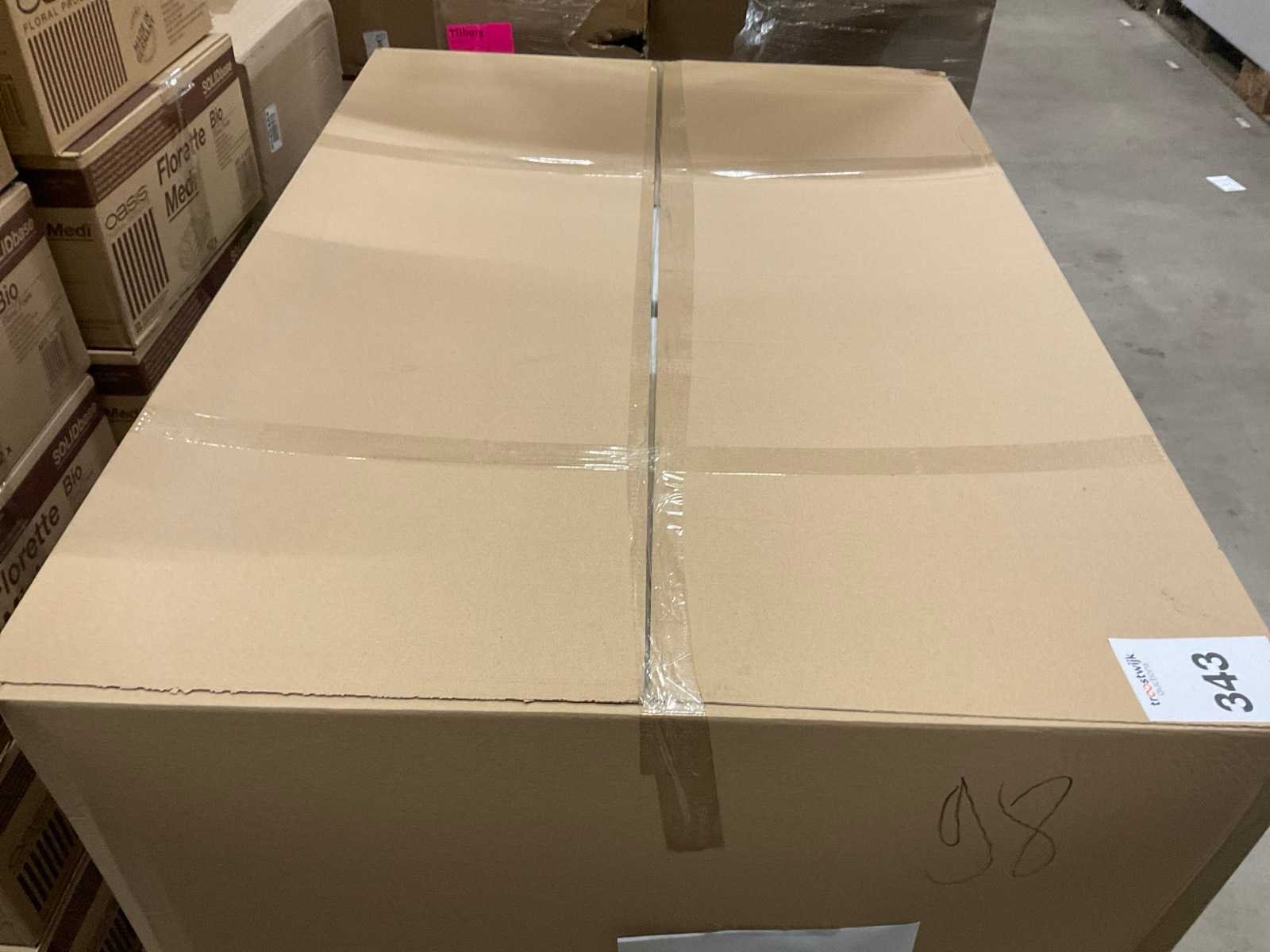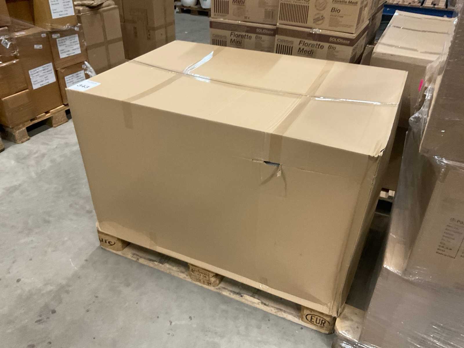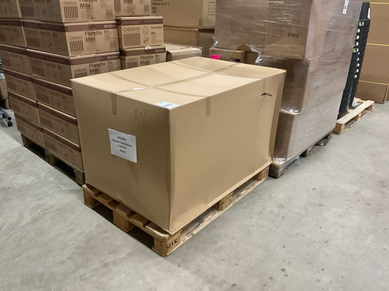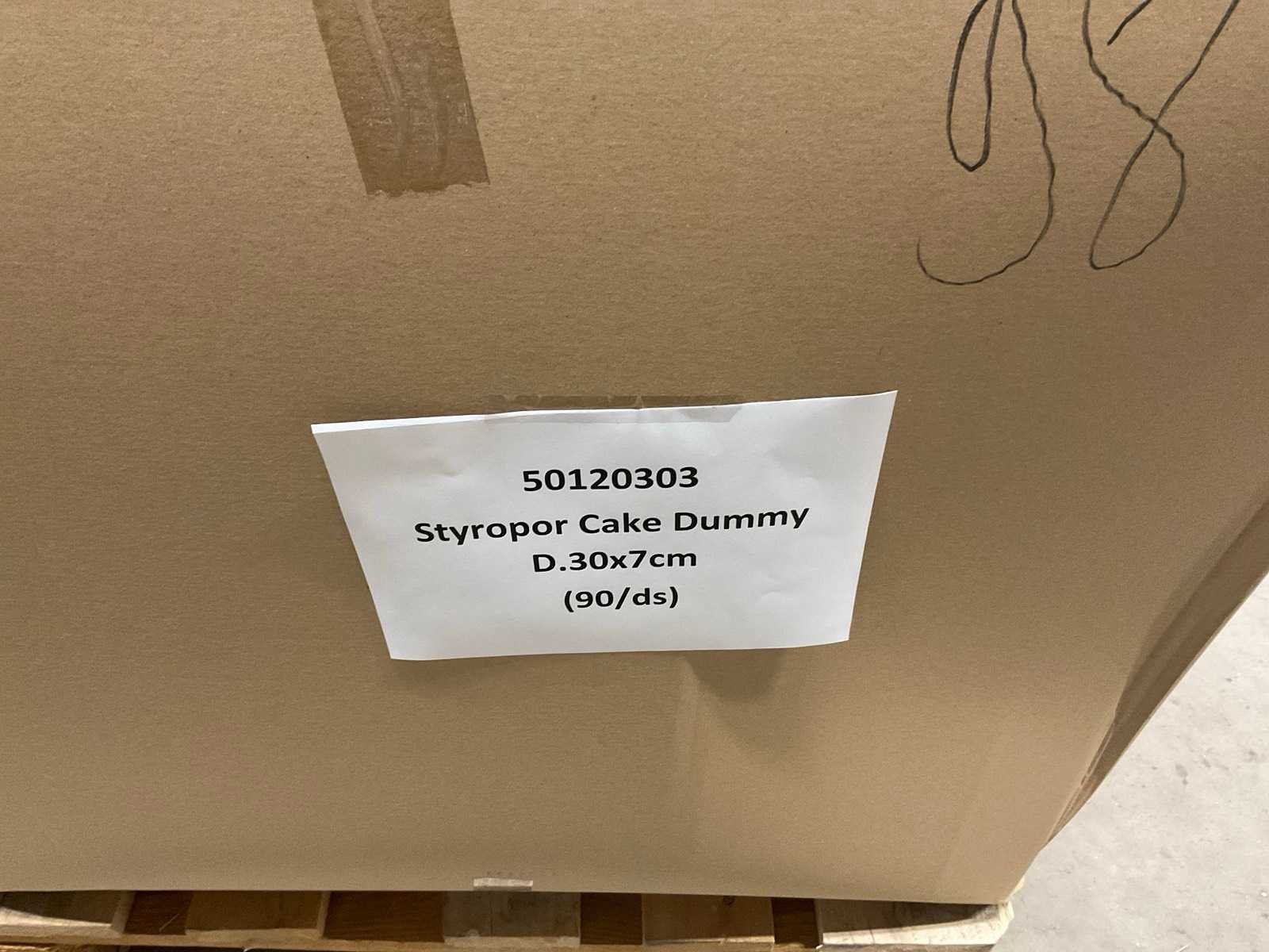 In palletdoos op pallet, diameter ca. 30 cm, hoogte ca. 7 cm, inclusief pallet. Model: Cake dummy