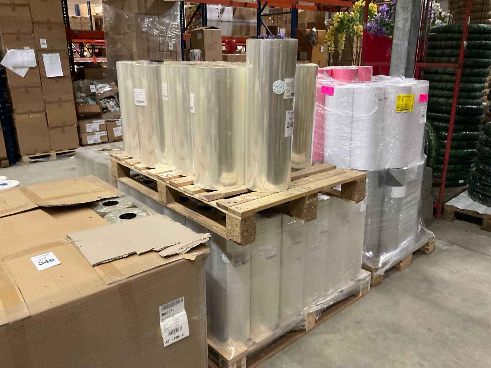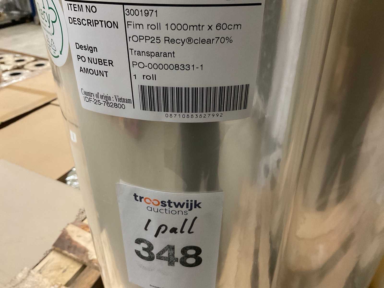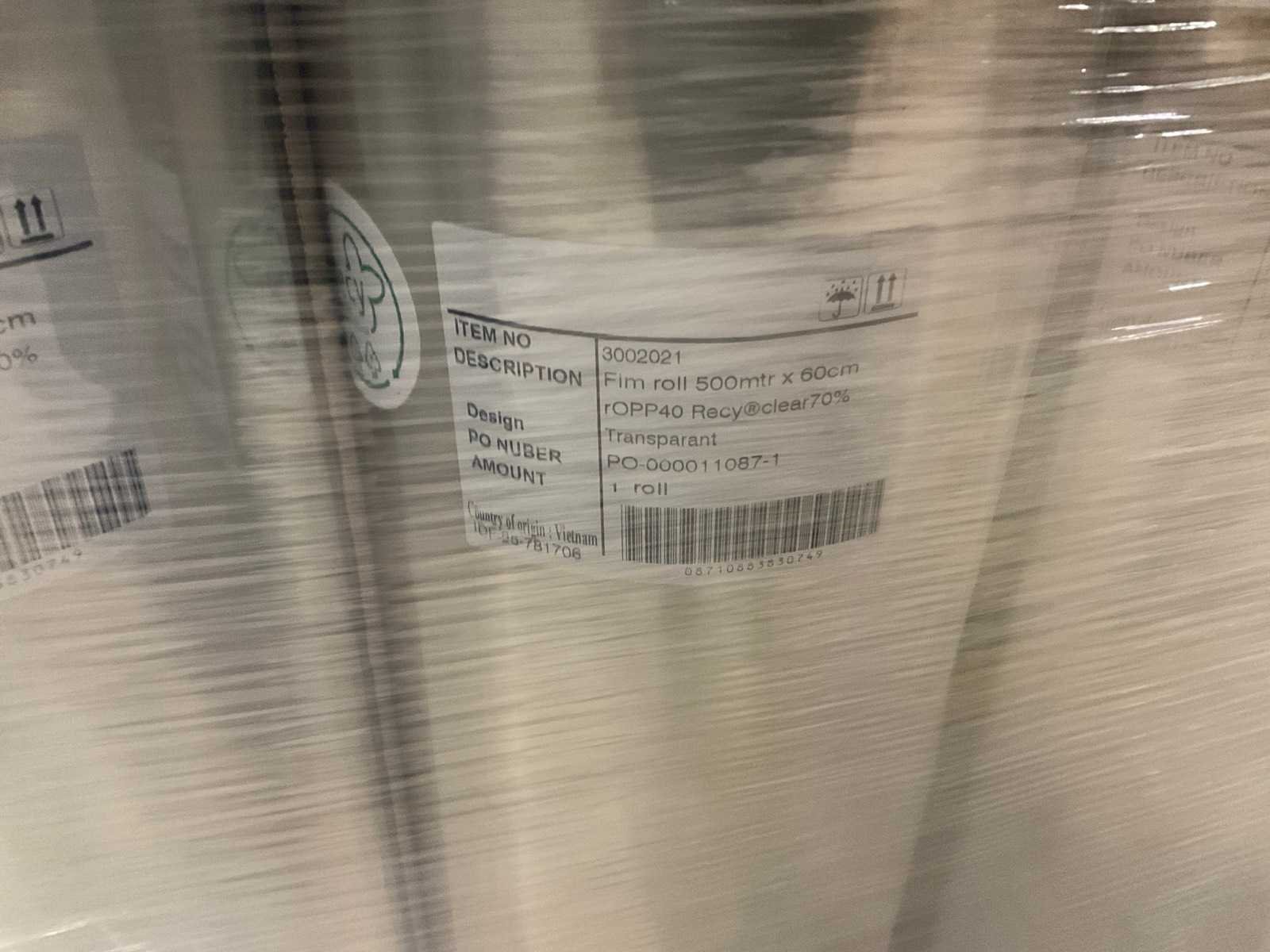 Folie op pallet, w.o. rOPP40 transparant, OPP40 flowerfilm on roll transparant, inclusief pallet. Model: OPP, rOPP