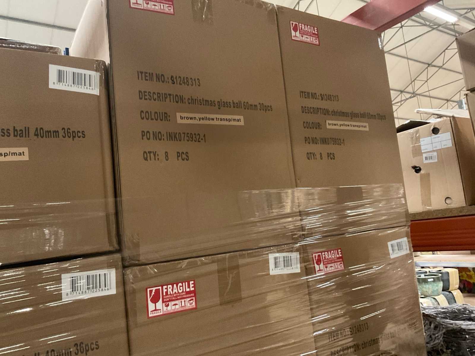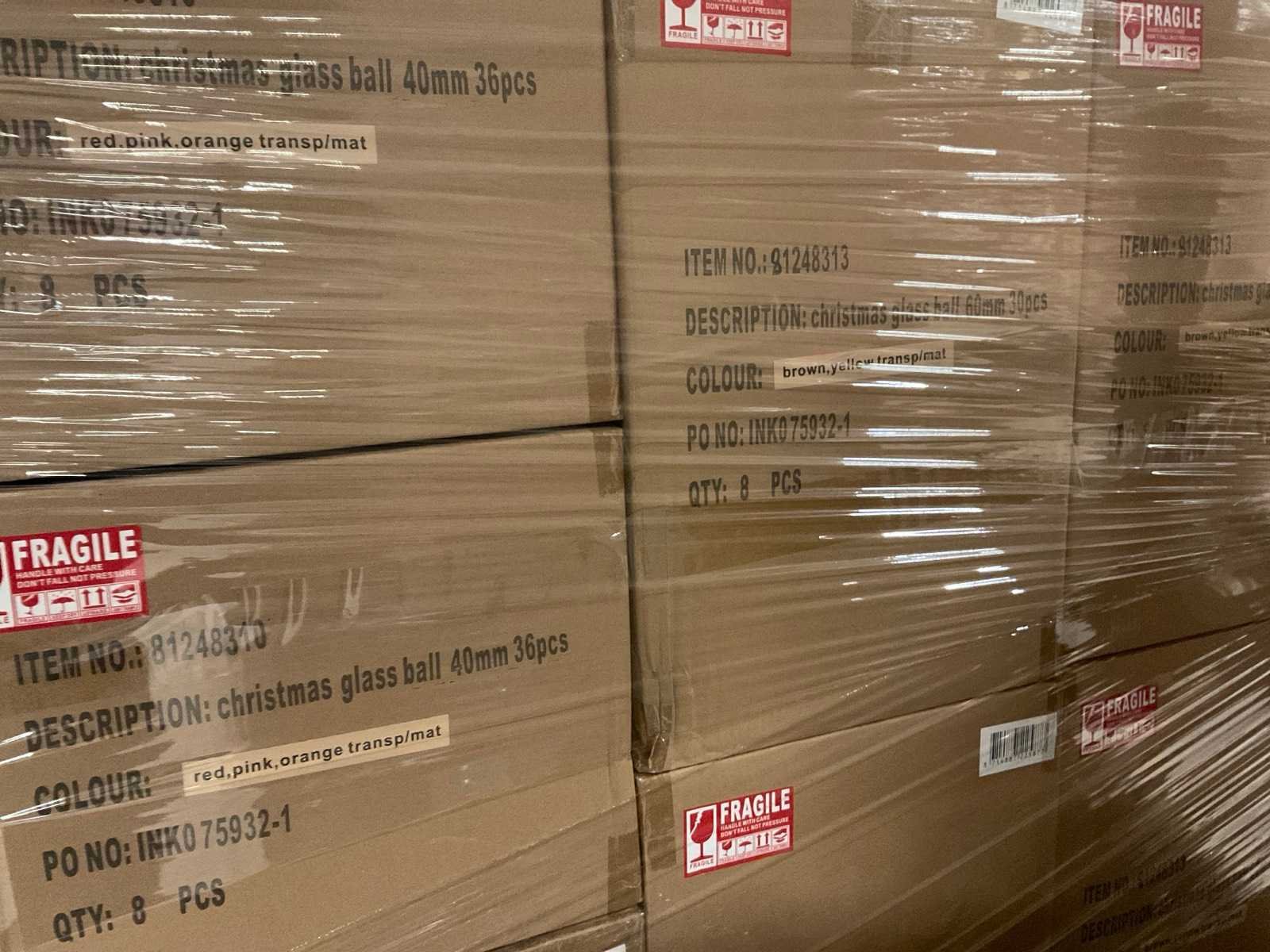 2 pallets met kerstballen, type unbreakable in diverse maten en kleuren, inclusief pallets.