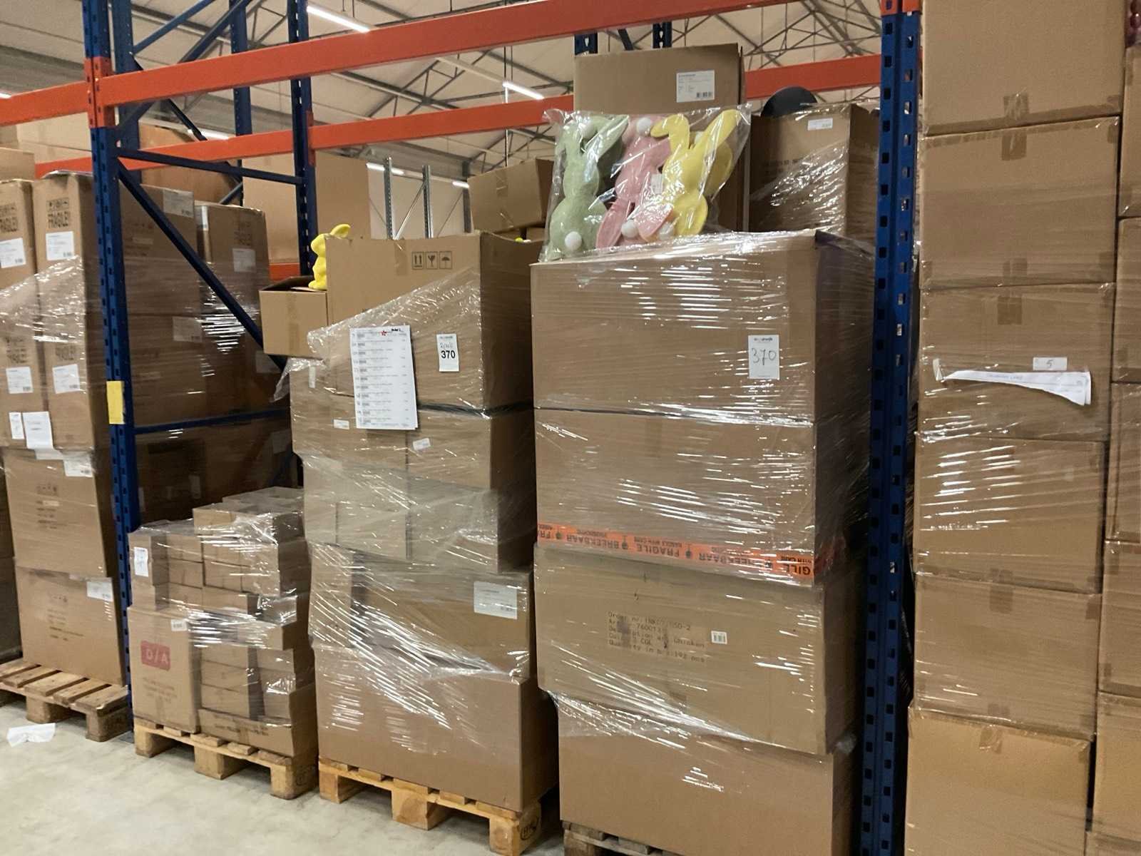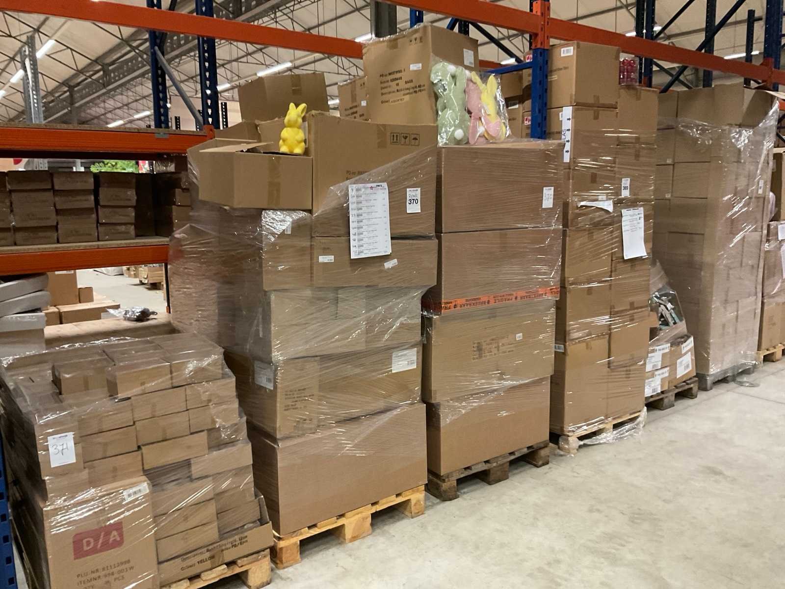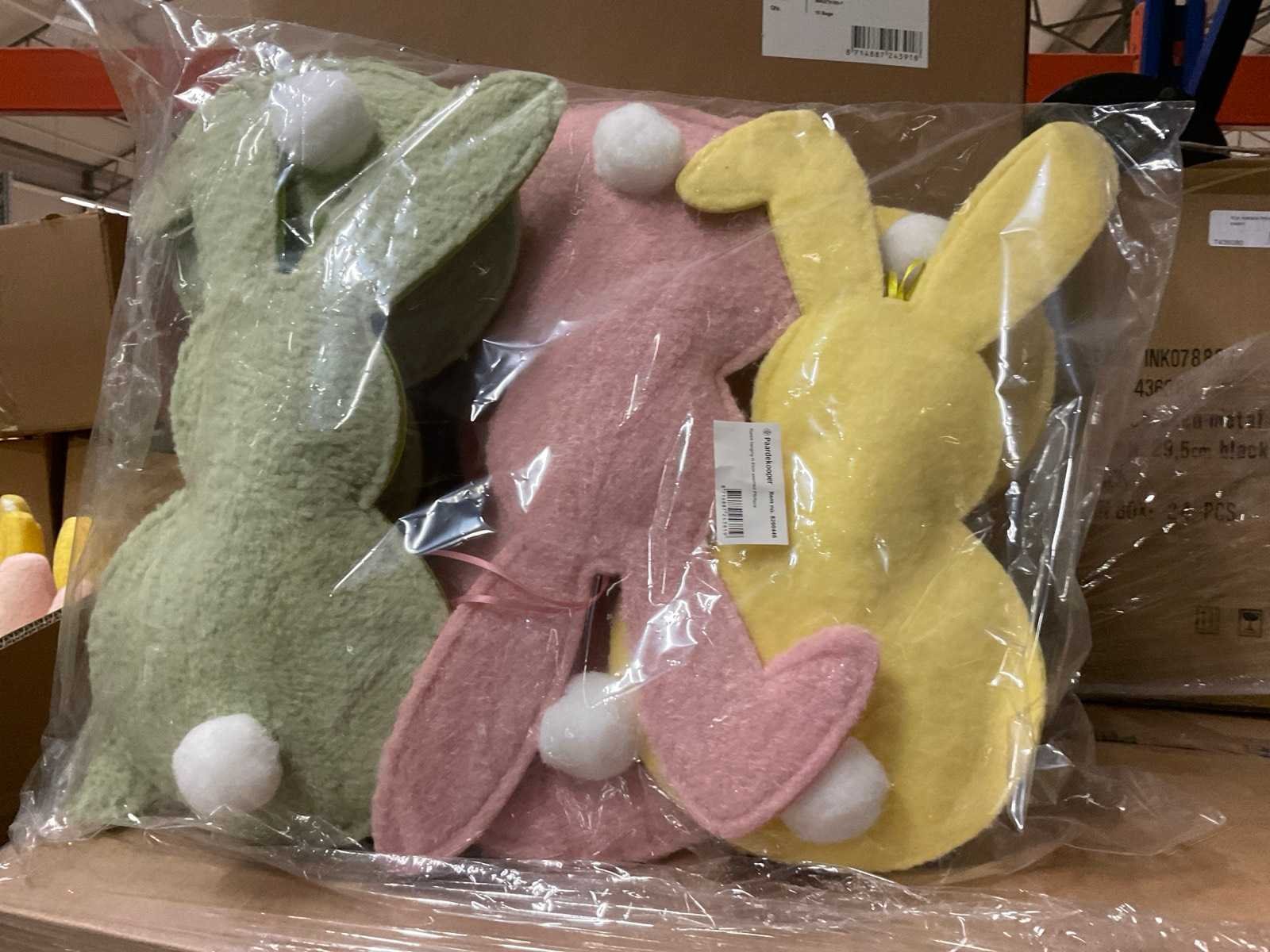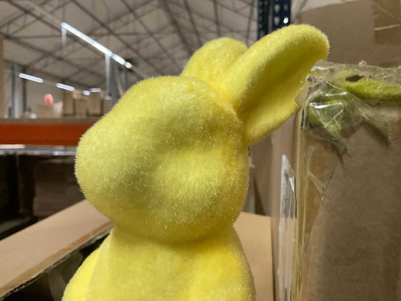 2cpallets met paasdecoratie w.o. Konijnen in diverse maten, uitvoeringen en kleuren, inclusief pallets.