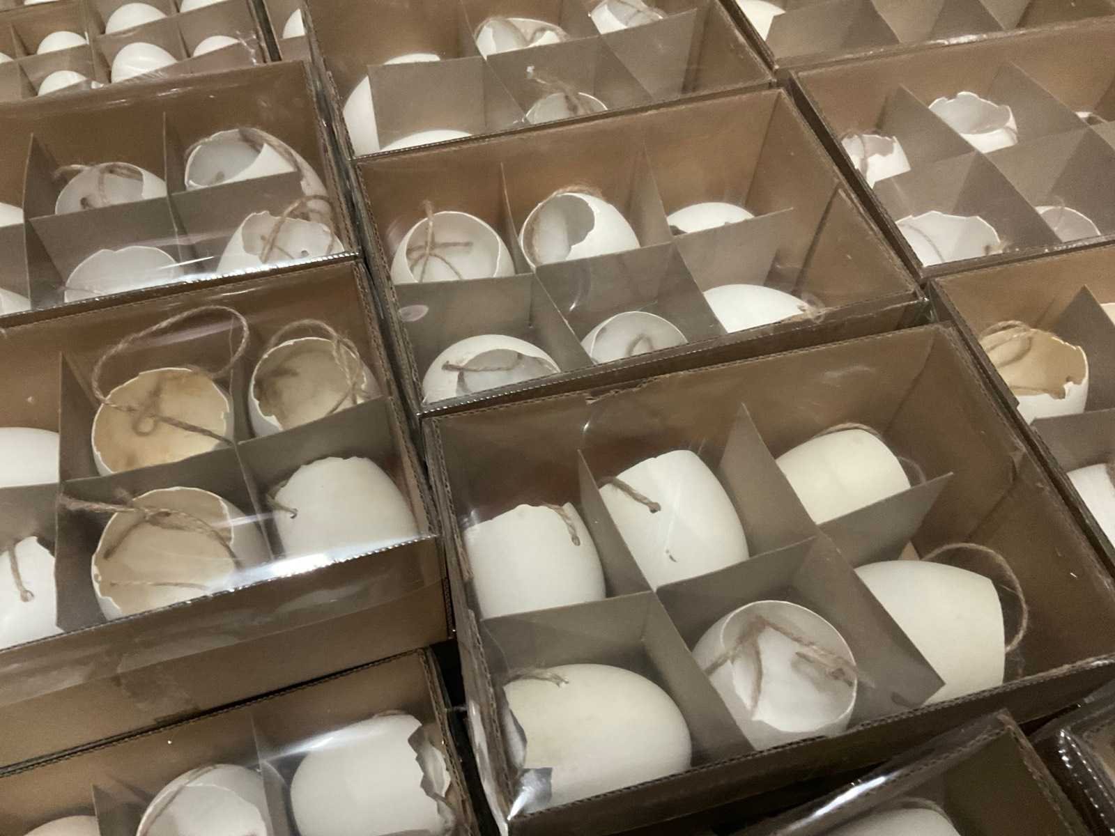 4 pallets paasdecoratie met eieren in diverse maten en uitvoeringen, inclusief pallets.