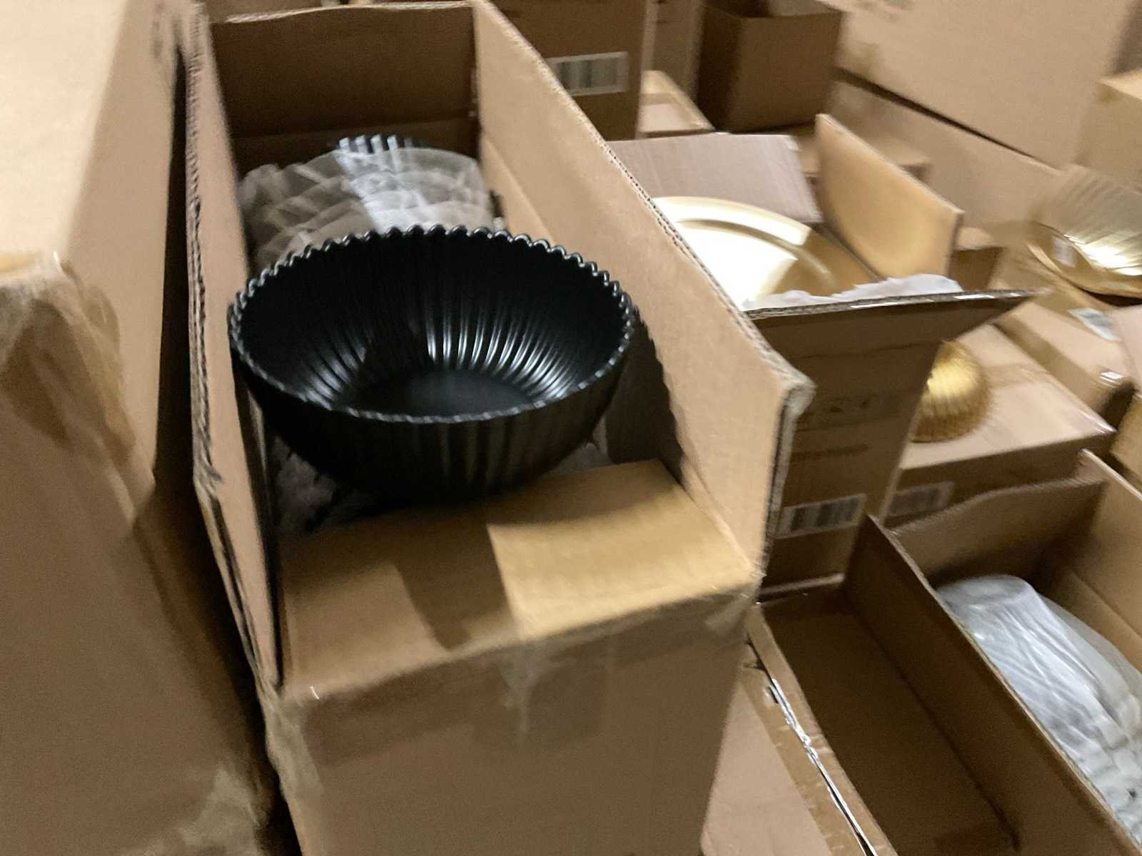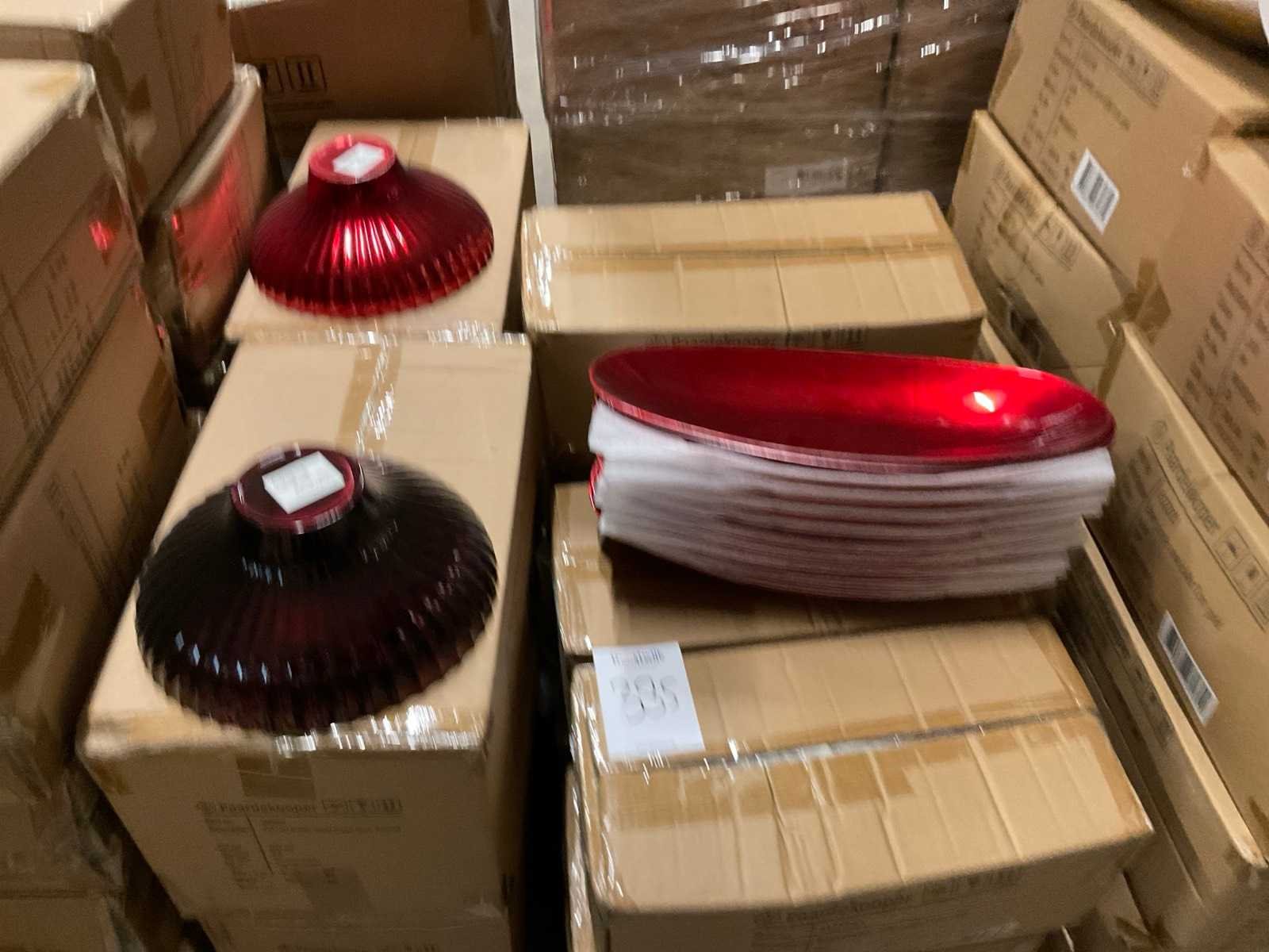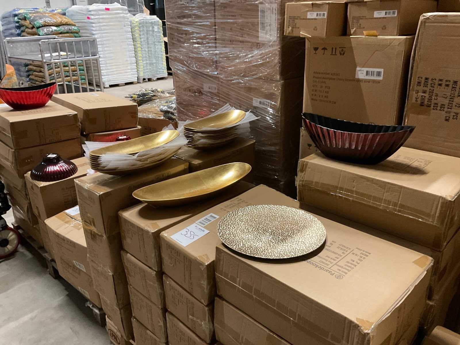 Inhoud op 6 pallets bestaande uit verschillende maten potten, bakken en schalen, inclusief pallets.