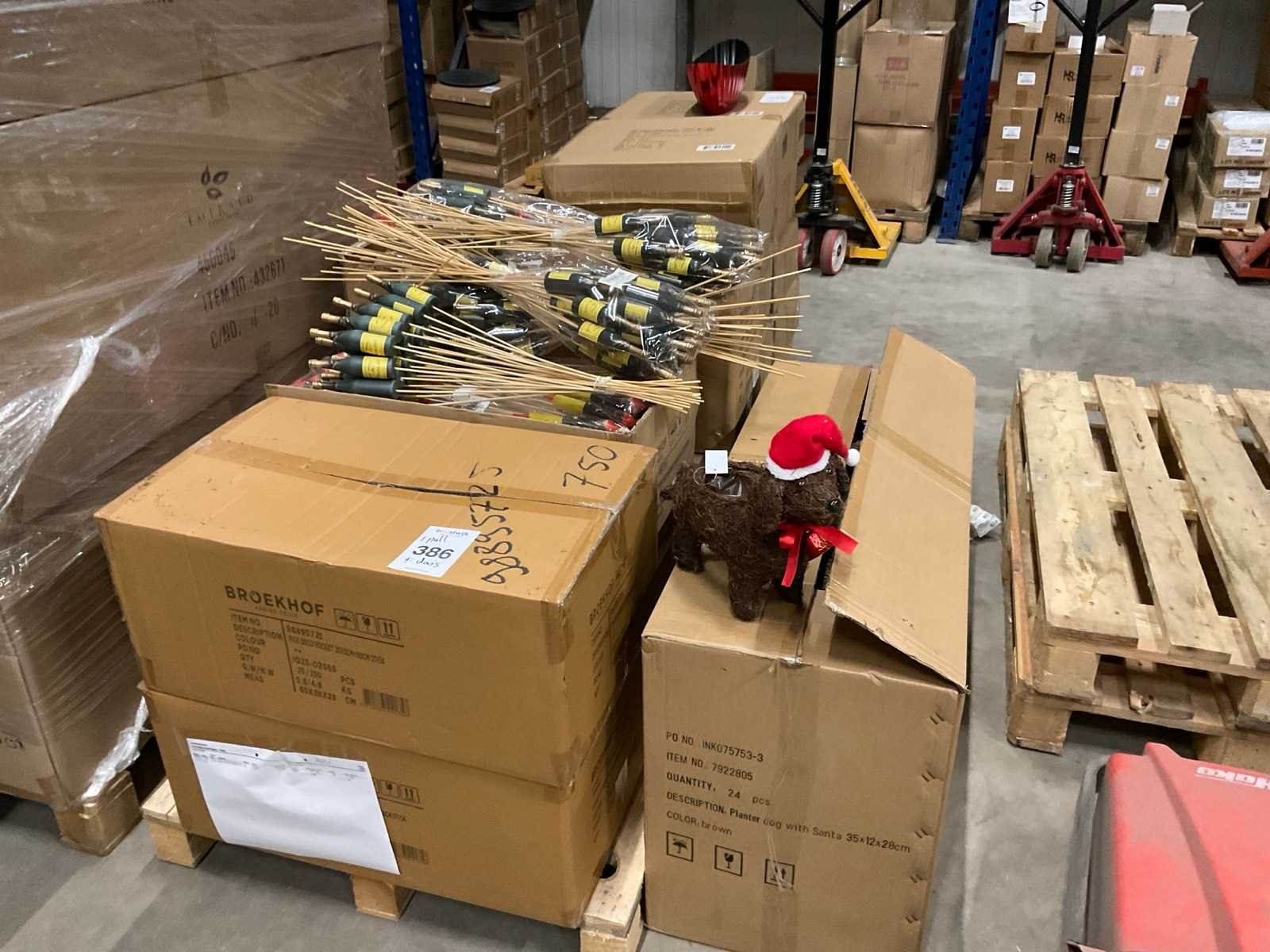 Inhoud op 1 pallet bestaande uit bijstekers bloempot in de vorm van een hond, inclusief pallet.