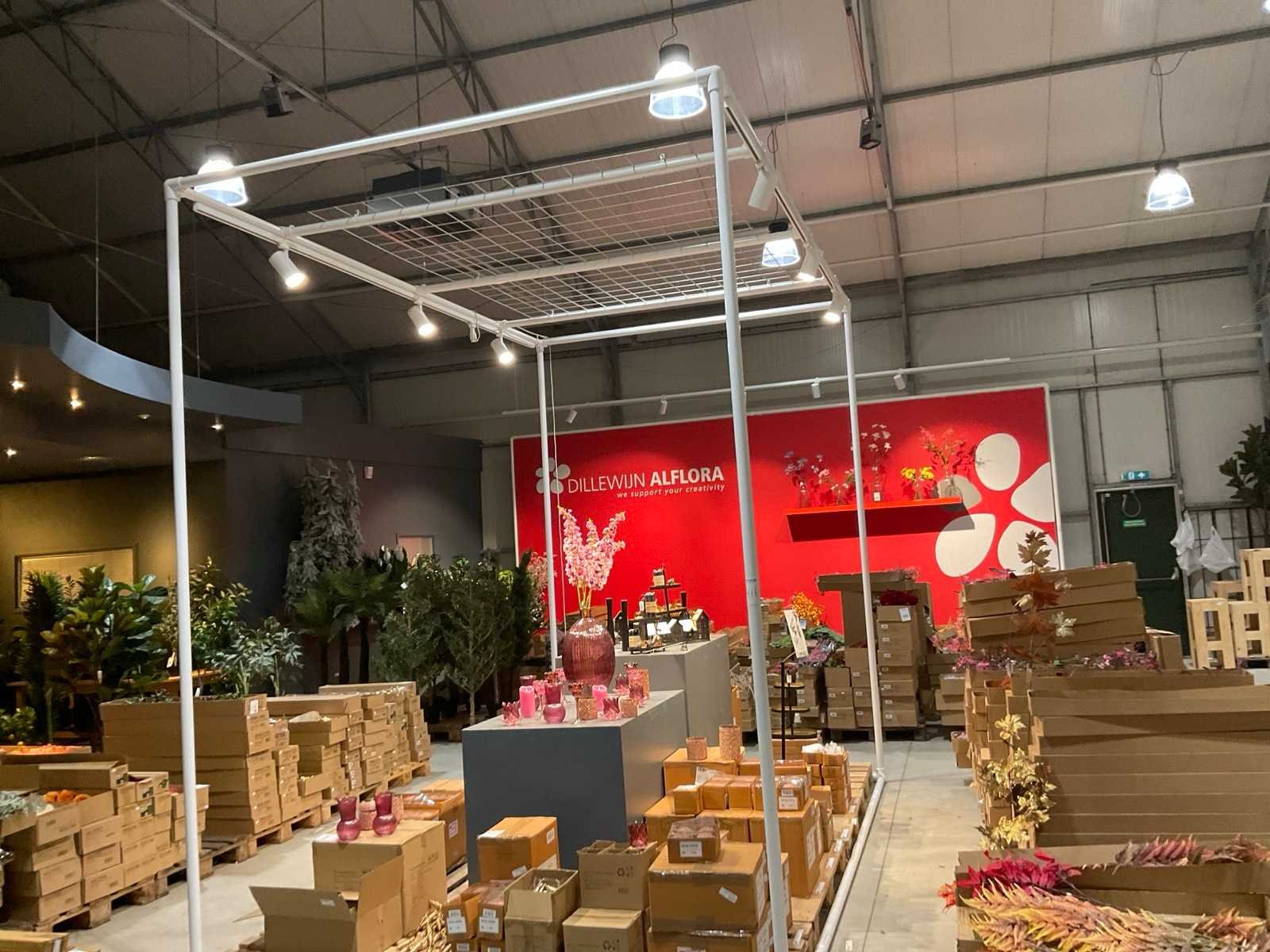 Aluminium buisframe kubus v.v. draadstalen gaas, verlichting, decoratie welke bevestigd zijn aan kubus niet inbegrepen Merk: ByMaykel Afmeting l: 4200mm Afmeting b: 2550mm Afmeting h: 3650mm