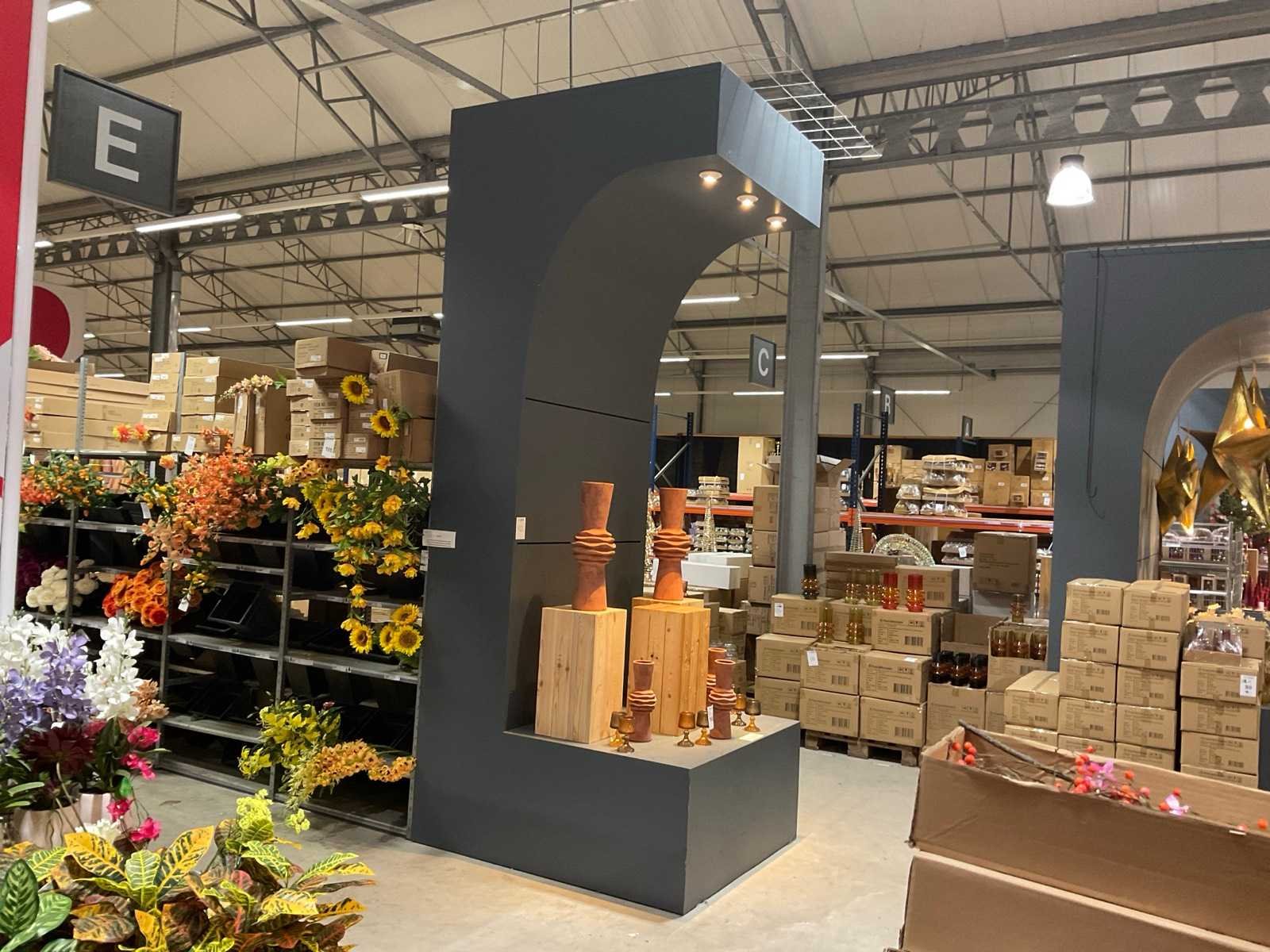 4 winkeldisplay, hoogte ca. 350 cm, diepte ca. 150 cm, breedtes 125, 130, 240 en 250 cm. Merk: ByMaykel