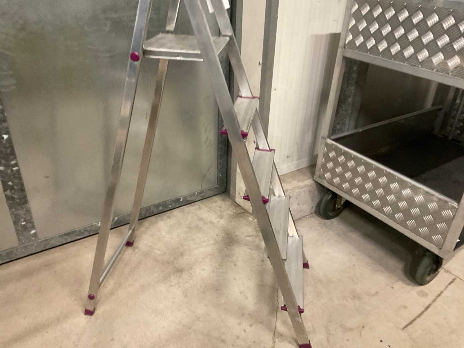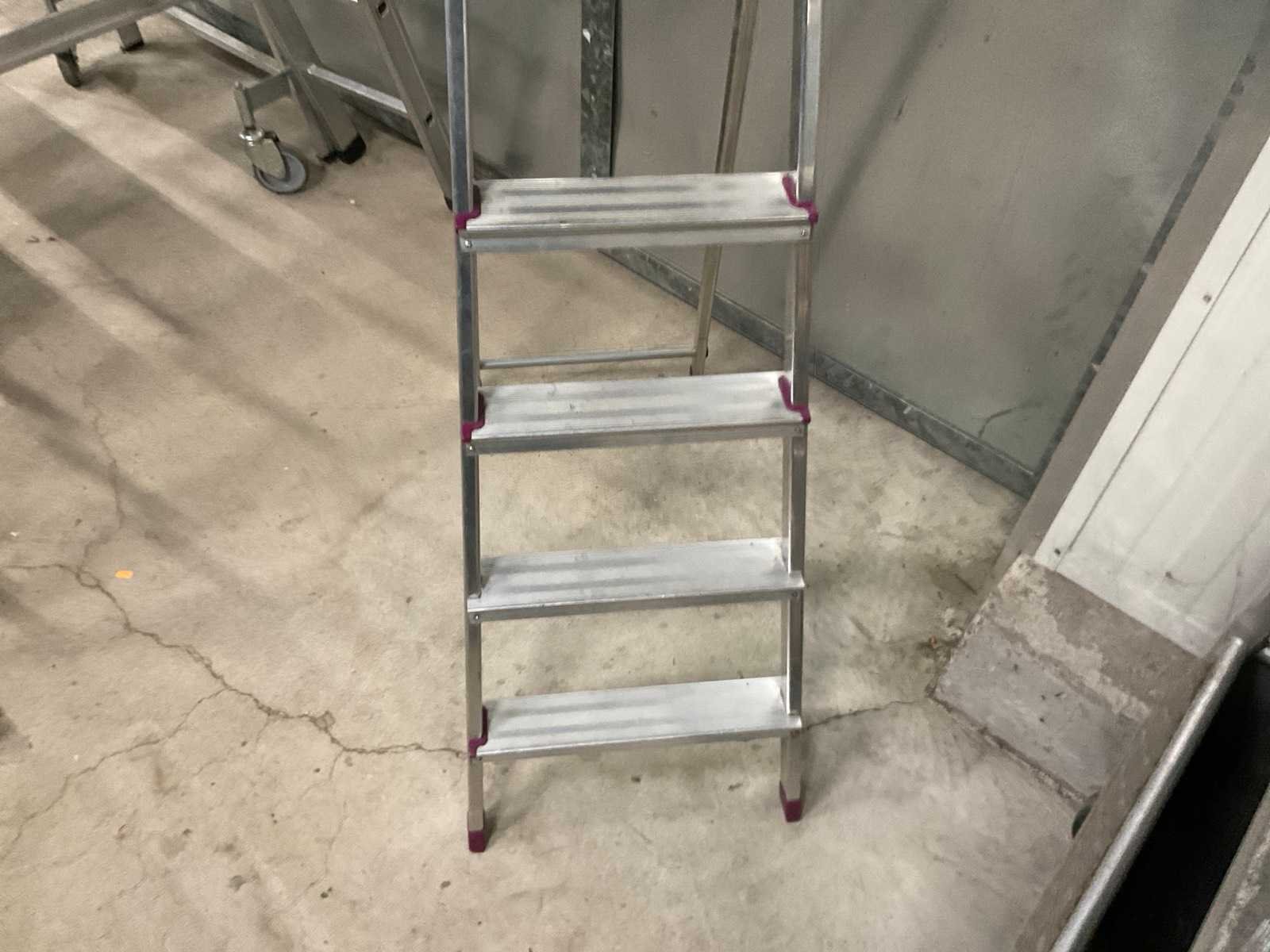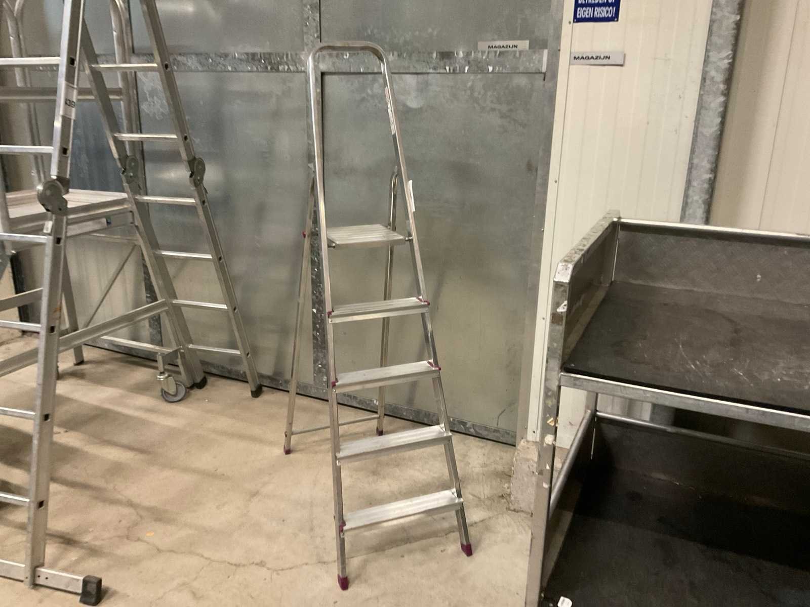 Stahoogte ca. 105 cm. Merk: Corda Aantal treden: 5 Aluminium: true Oplooptrap: true Enkel: true Totale afmeting L: 1800mm Totale afmeting Breedte: 470mm