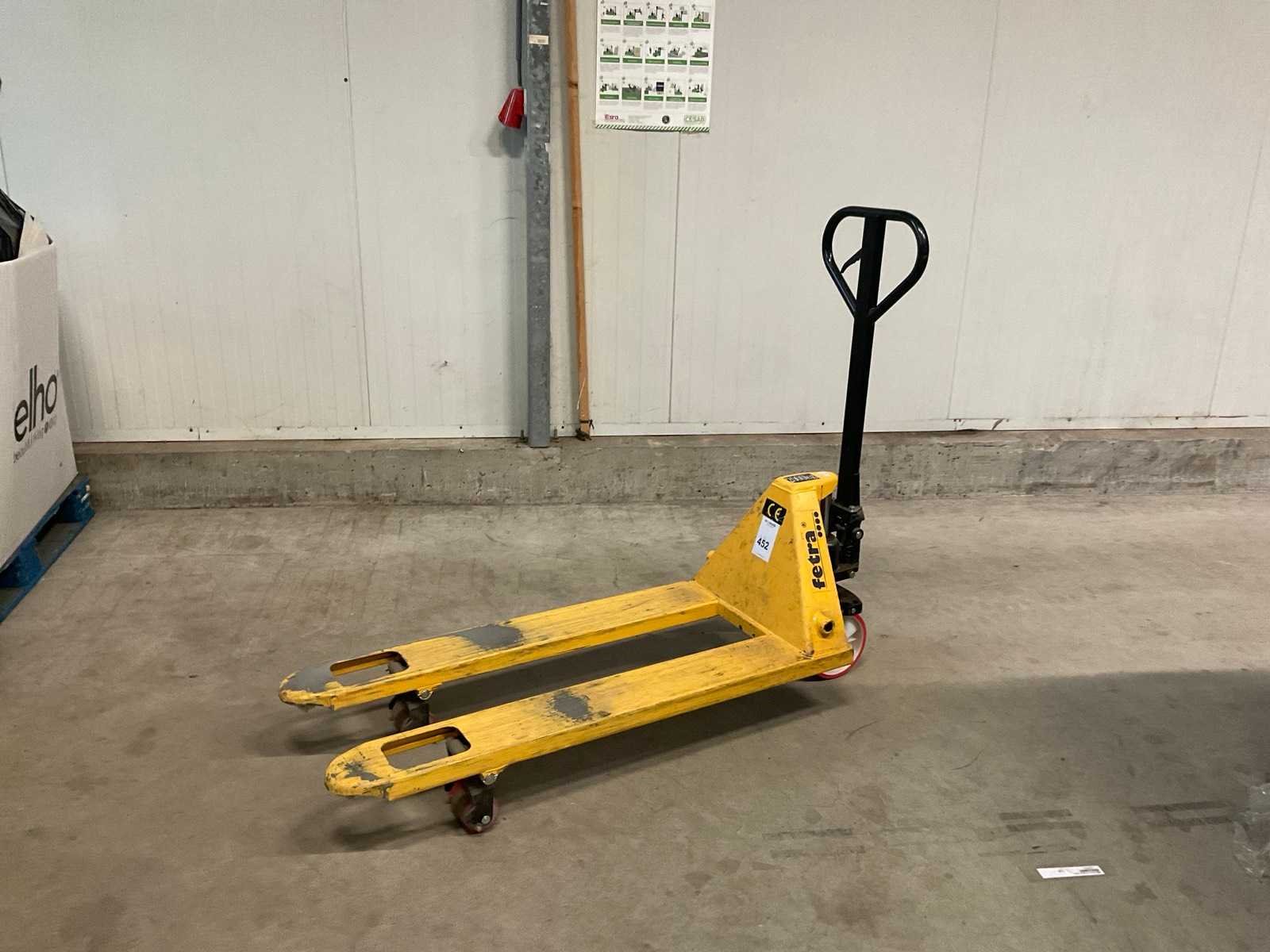 Merk: Fetra Type: 2114 Bouwjaar: 2018 Hefvermogen: 2000kg Hefhoogte: 200mm Lepellengte: 1150mm Eigen gewicht: 60kg Totale afmeting L: 1450mm Totale afmeting Breedte: 540mm Totale afmeting Hoogte: 1250mm