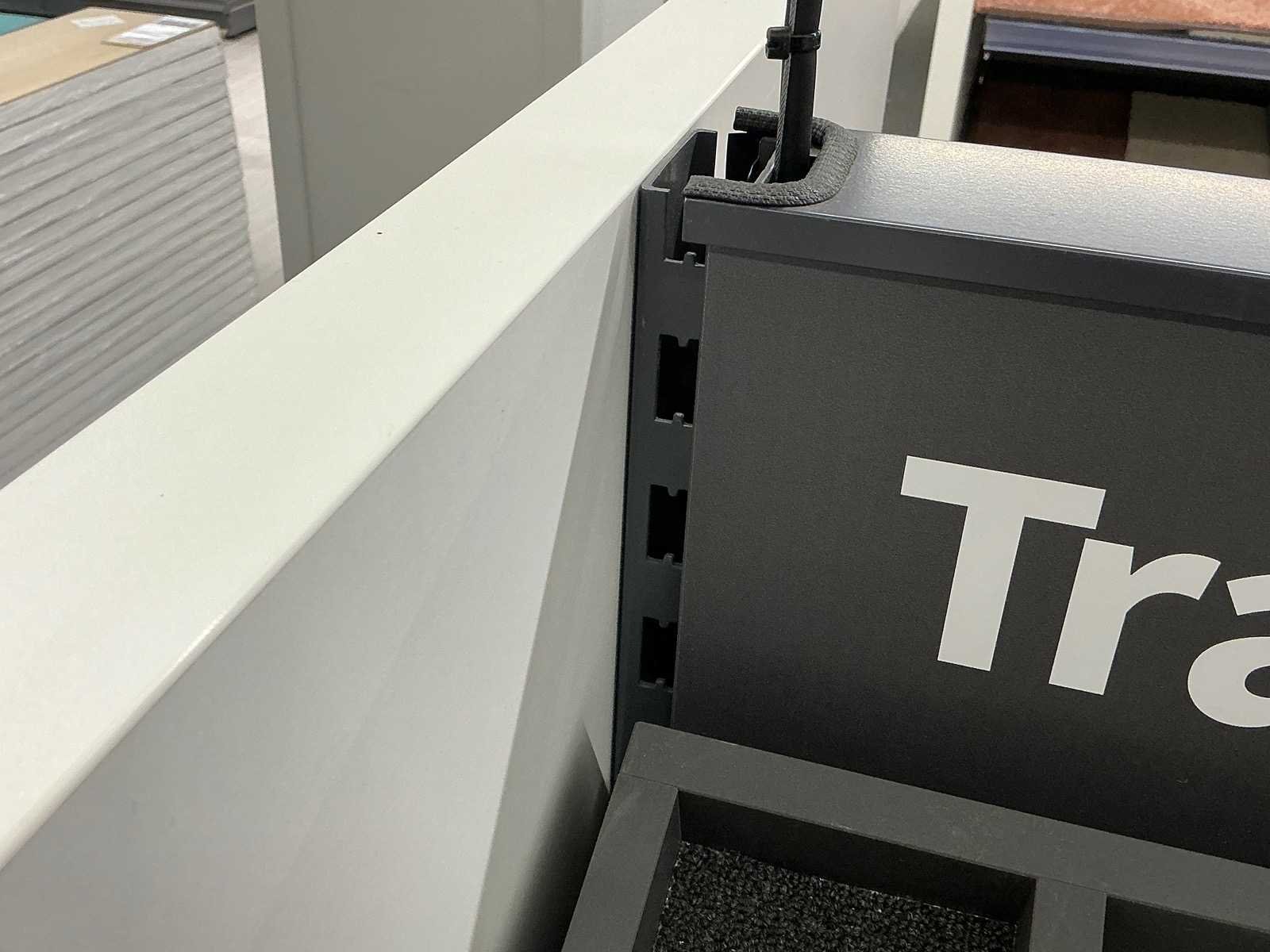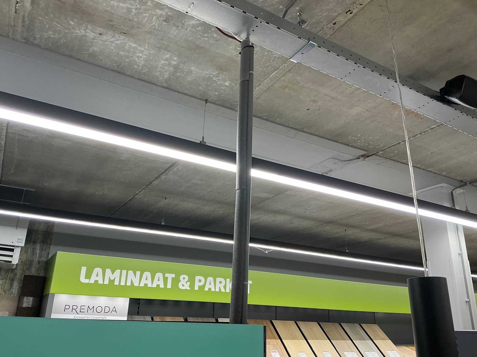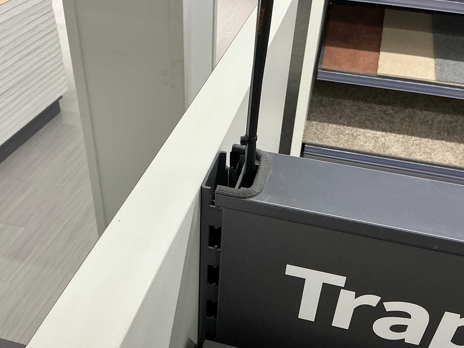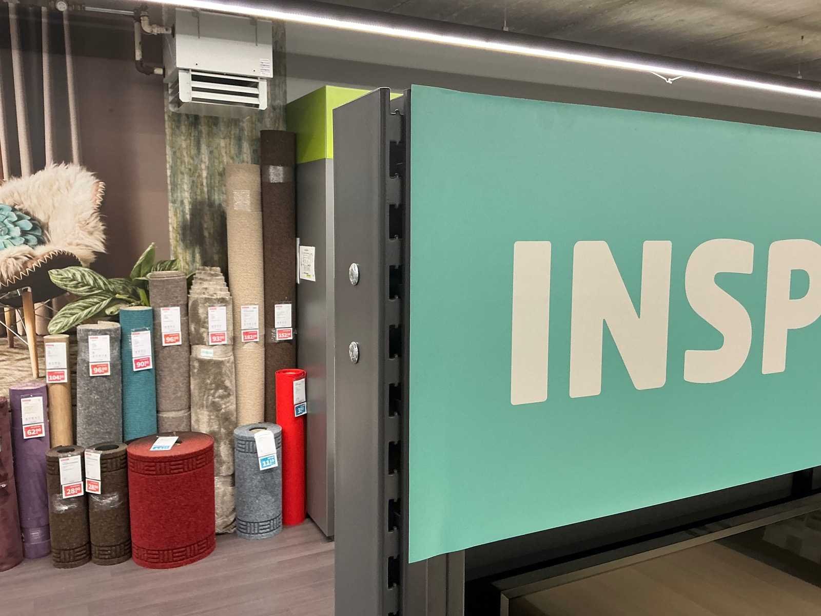 Exclusief stofsamples, boeken en beelscherm Inclusief inhoud. Totale afmeting L: 4100mm Totale afmeting Breedte: 1250mm Totale afmeting Hoogte: 1430mm