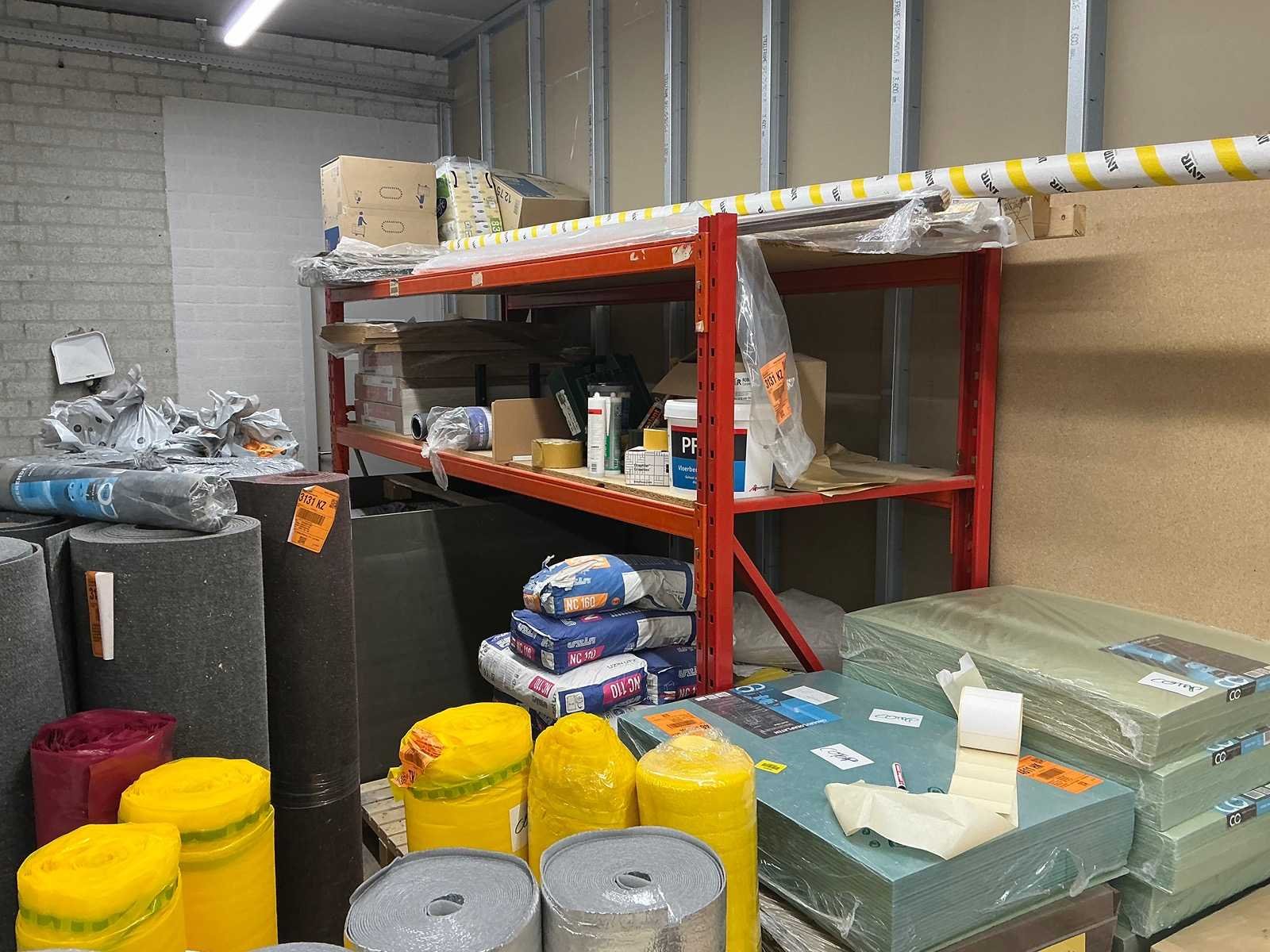 Dit kavel dient door de koper professioneel gedemonteerd te worden. 1 stelling is 240x450x290. 1 stelling is 300x90x200 1 stelling is 600x230x265 1 stelling is 550x80x280 2 stellingen zijn 290x90x195 Exclusief inhoud