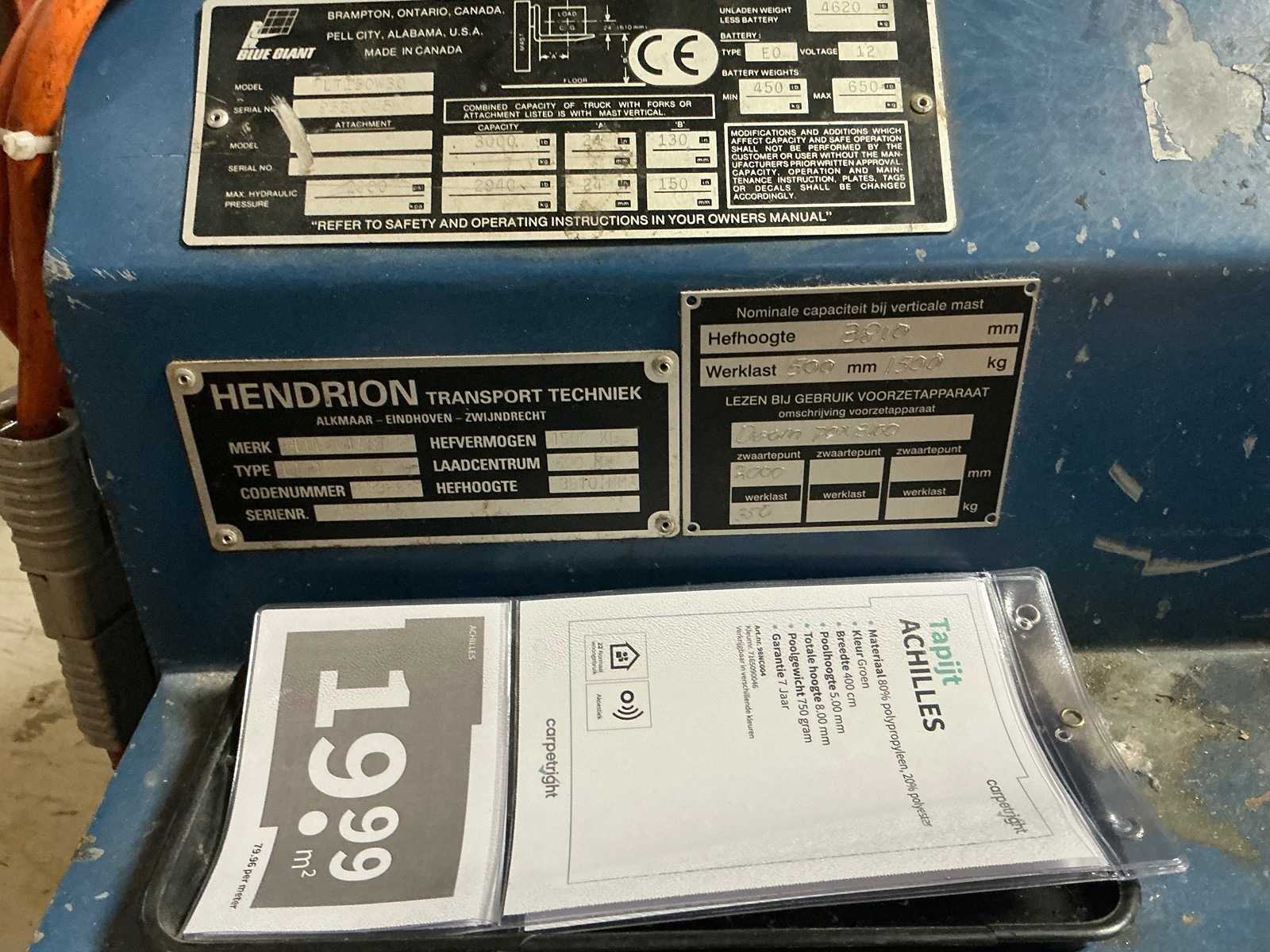 Rollenvork is 320cm Merk: Blue giant Totale afmeting L: 1600mm Totale afmeting Breedte: 1000mm Totale afmeting Hoogte: 23800mm