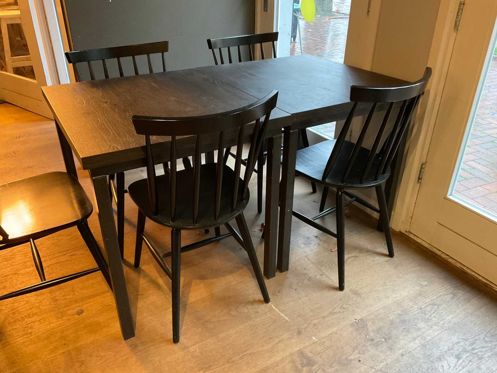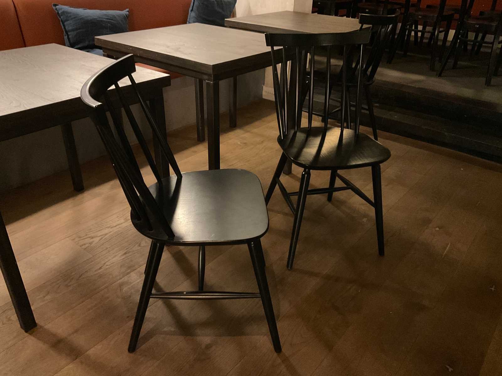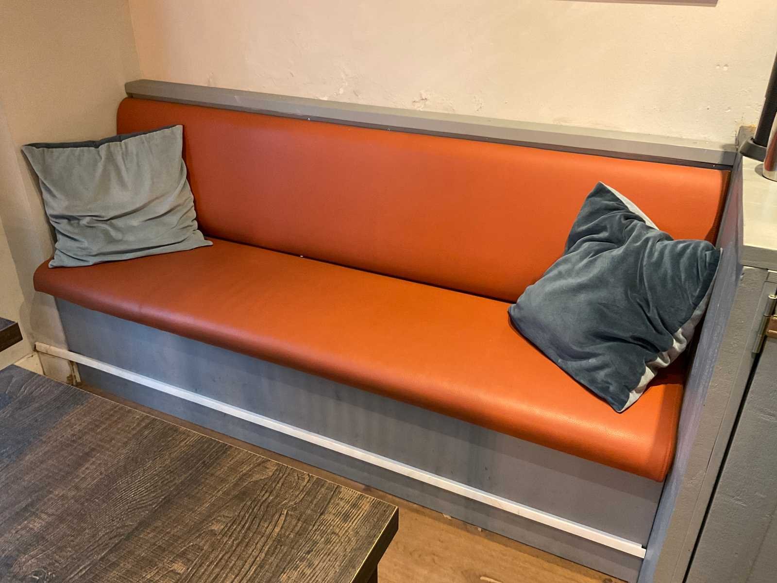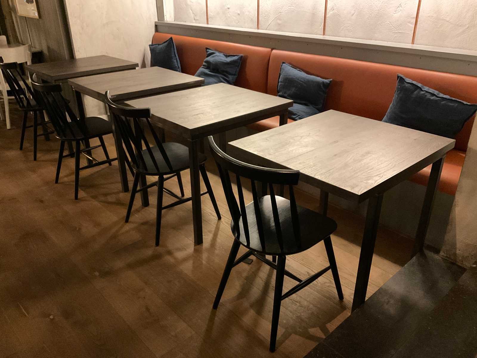 Bestaande uit 14 houten tafels afm ca. 70x80x74 cm 19 houten stoelen in 2 verschillende modellen 3 stuks Wandgemonteerde bank voorzien van kunstlederen bekleding afm ca. 351x62x101 cm, 361x62x101 cm en 187x60x101 cm, zithoogte ca. 46 cm Kussens