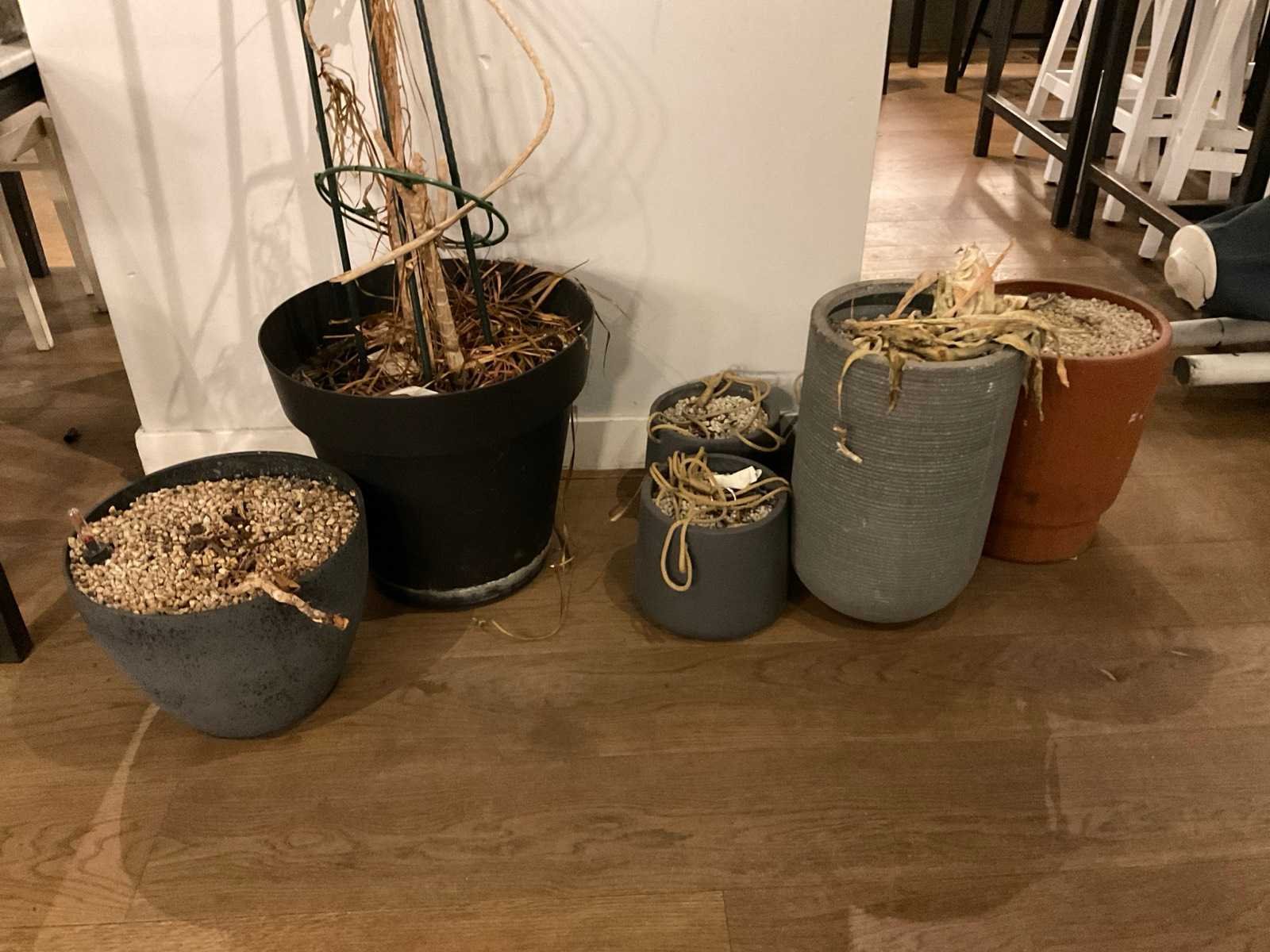 Houten wandmeubel met diverse decoratie alsmede plantenbakken Totale afmeting L: 305cm Totale afmeting Breedte: 20cm Totale afmeting Hoogte: 47cm