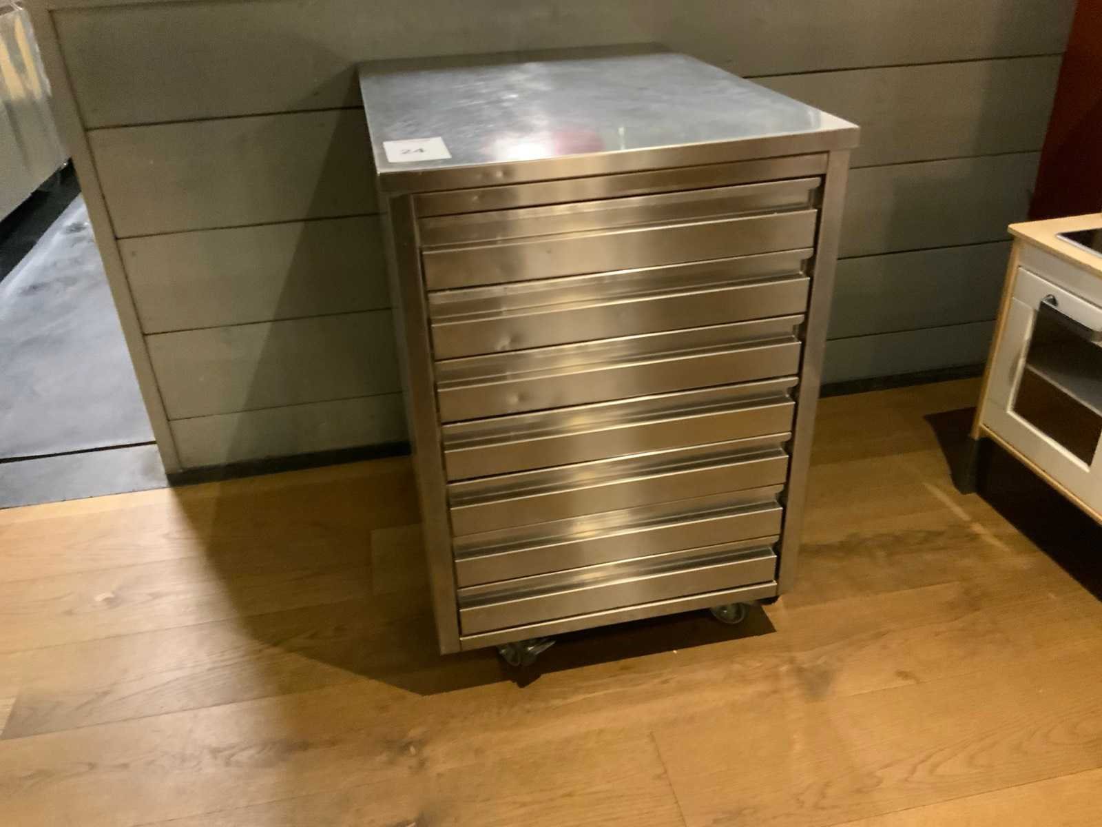 Mobiel, voorzien van 7 lades met uitneembare kunststof bakken Rvs: true Lengte: 58cm Breedte: 80cm Hoogte: 82cm