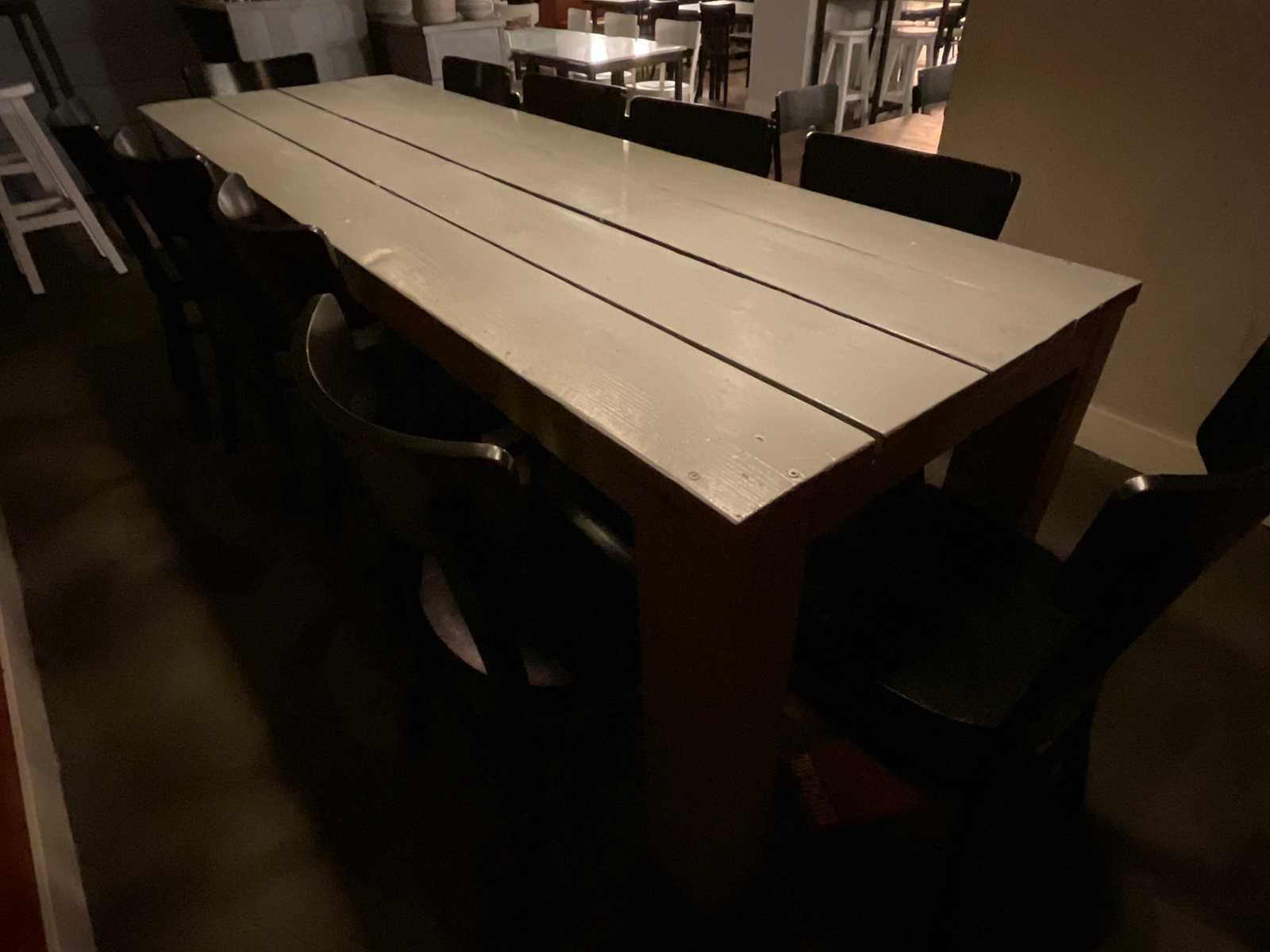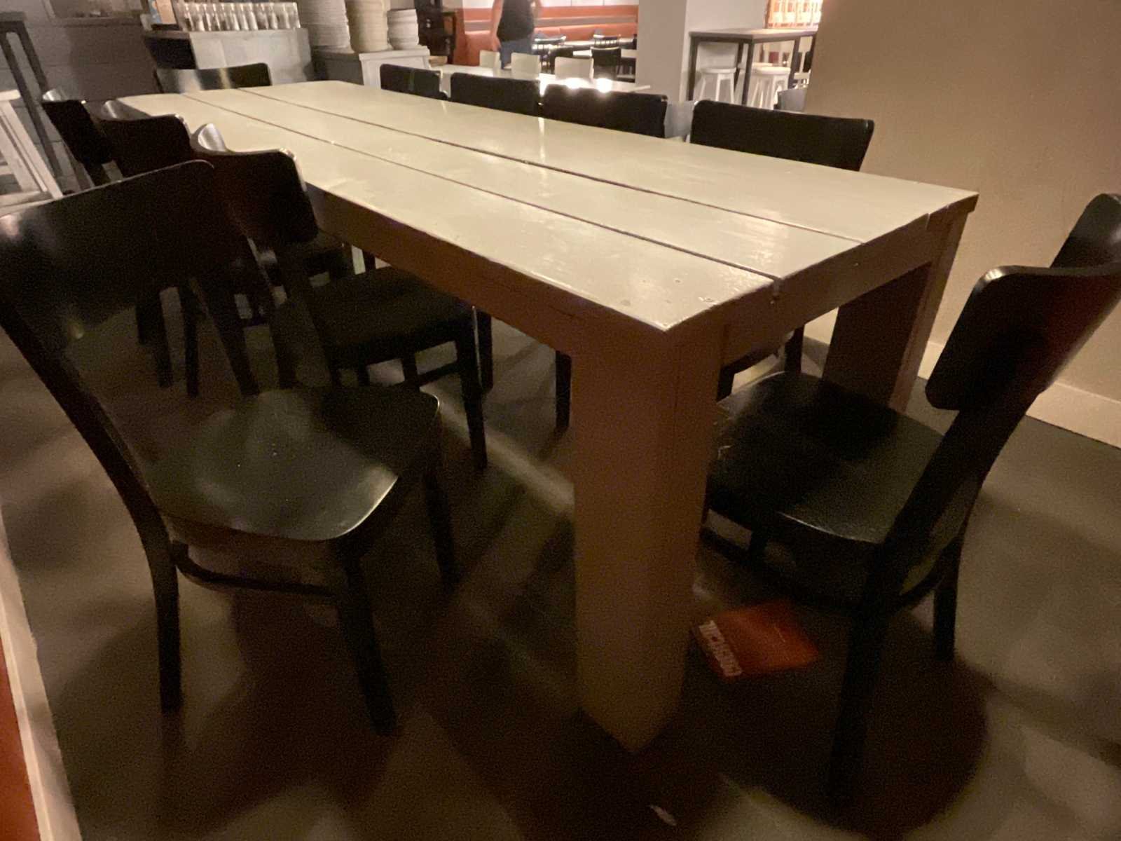Houten tafel met 10 stuks houten stoelen Merk: Ton Hout: true Totale afmeting L: 240cm Totale afmeting Breedte: 80cm Totale afmeting Hoogte: 77cm