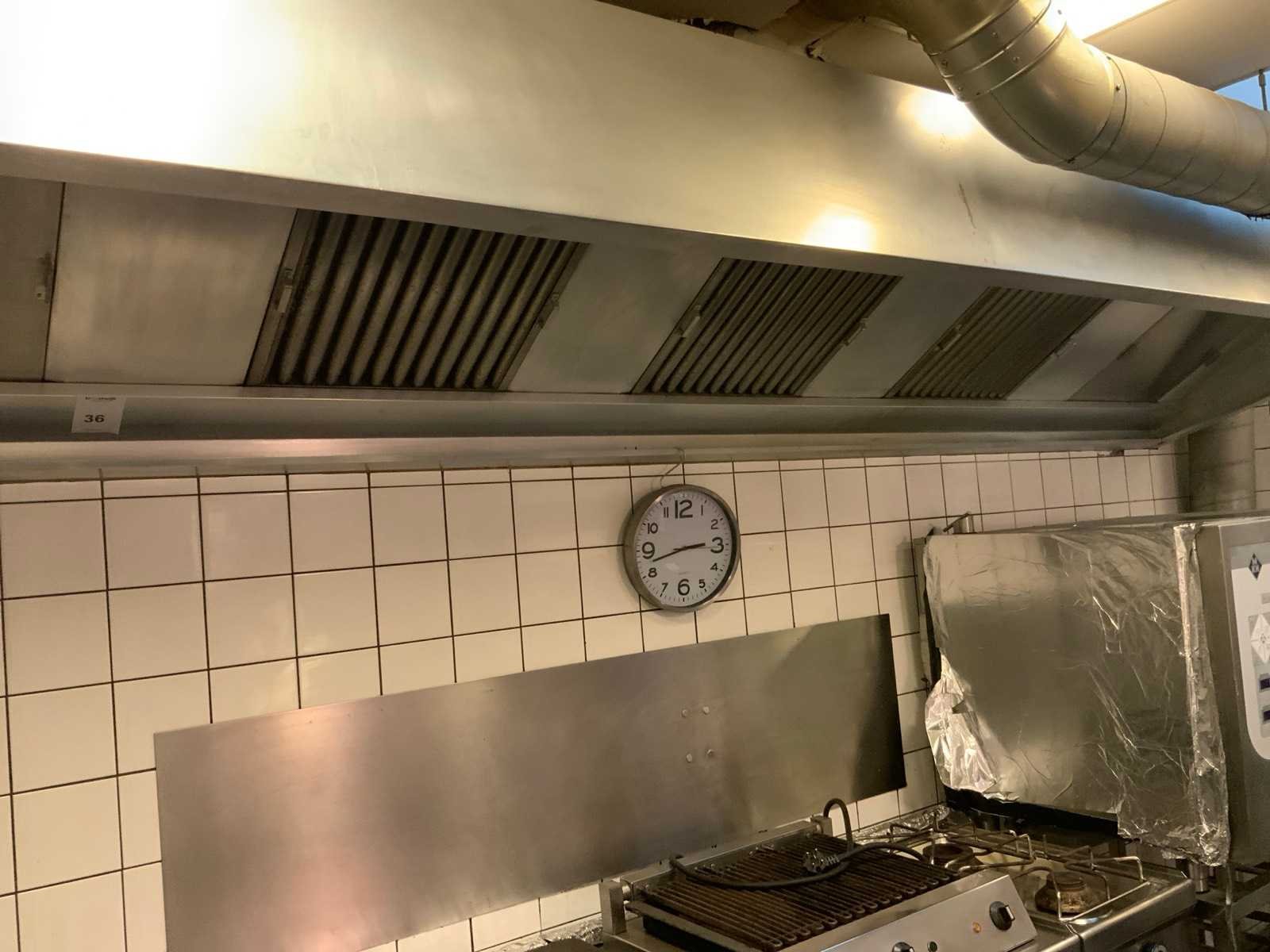 De zichtbare afzuigbuis maakt geen onderdeel uit van het kavel Materiaal: RVS Totale afmeting Breedte: 860mm Totale afmeting L: 4000mm Totale afmeting Hoogte: 650mm