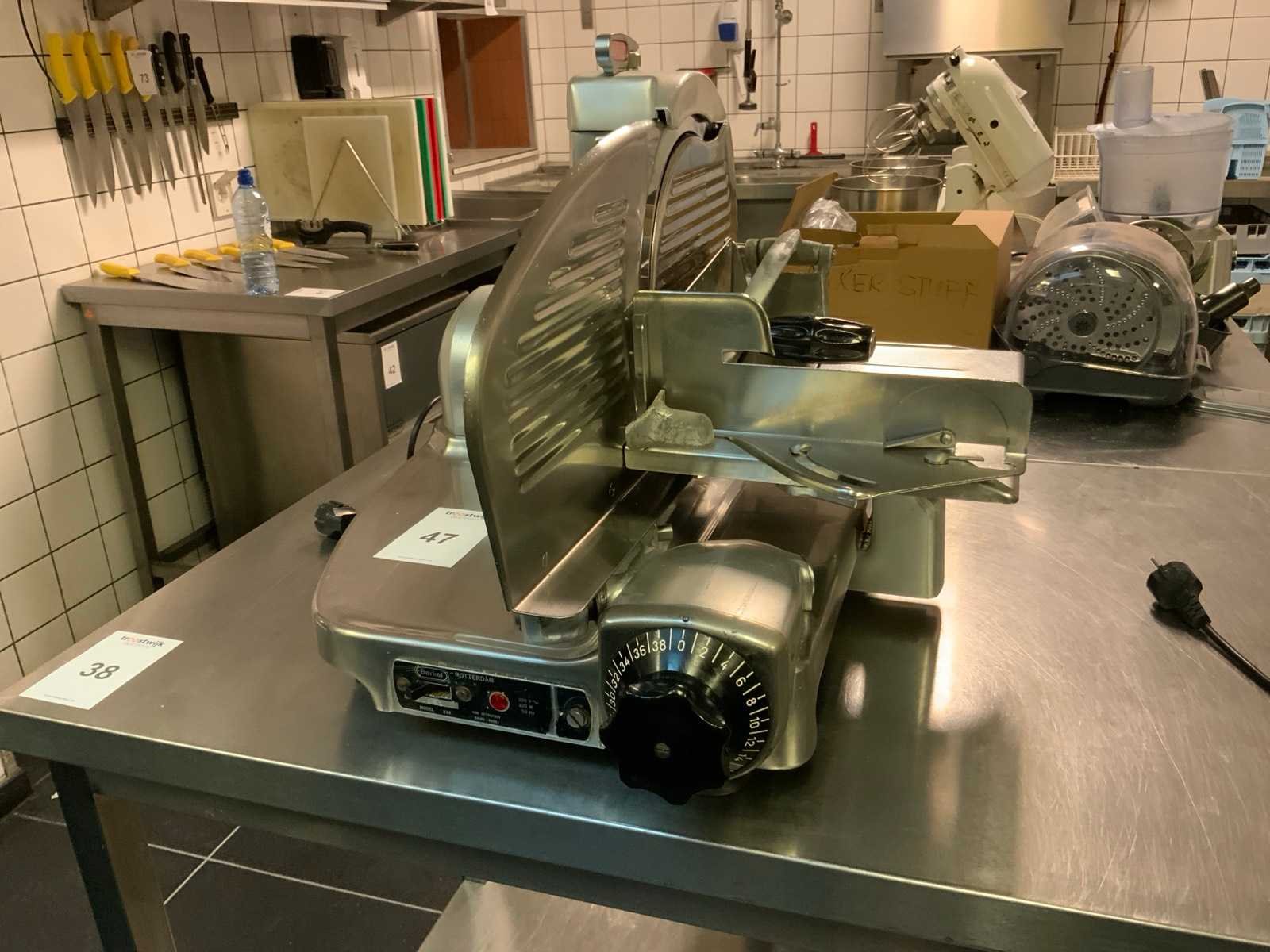 Merk: Berkel Type: 834 Serienummer: 76350 Diameter snijblad: 300mm Aansluiting: 230V Totale afmeting L: 600mm Totale afmeting Breedte: 600mm Totale afmeting Hoogte: 460mm