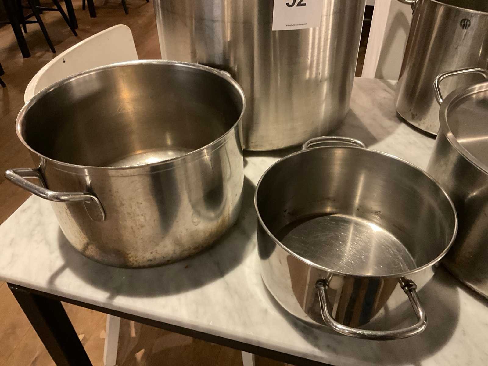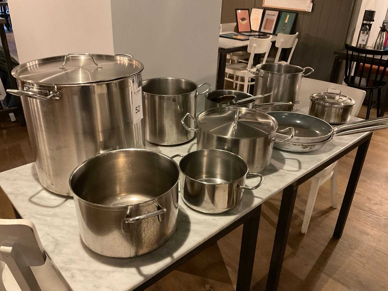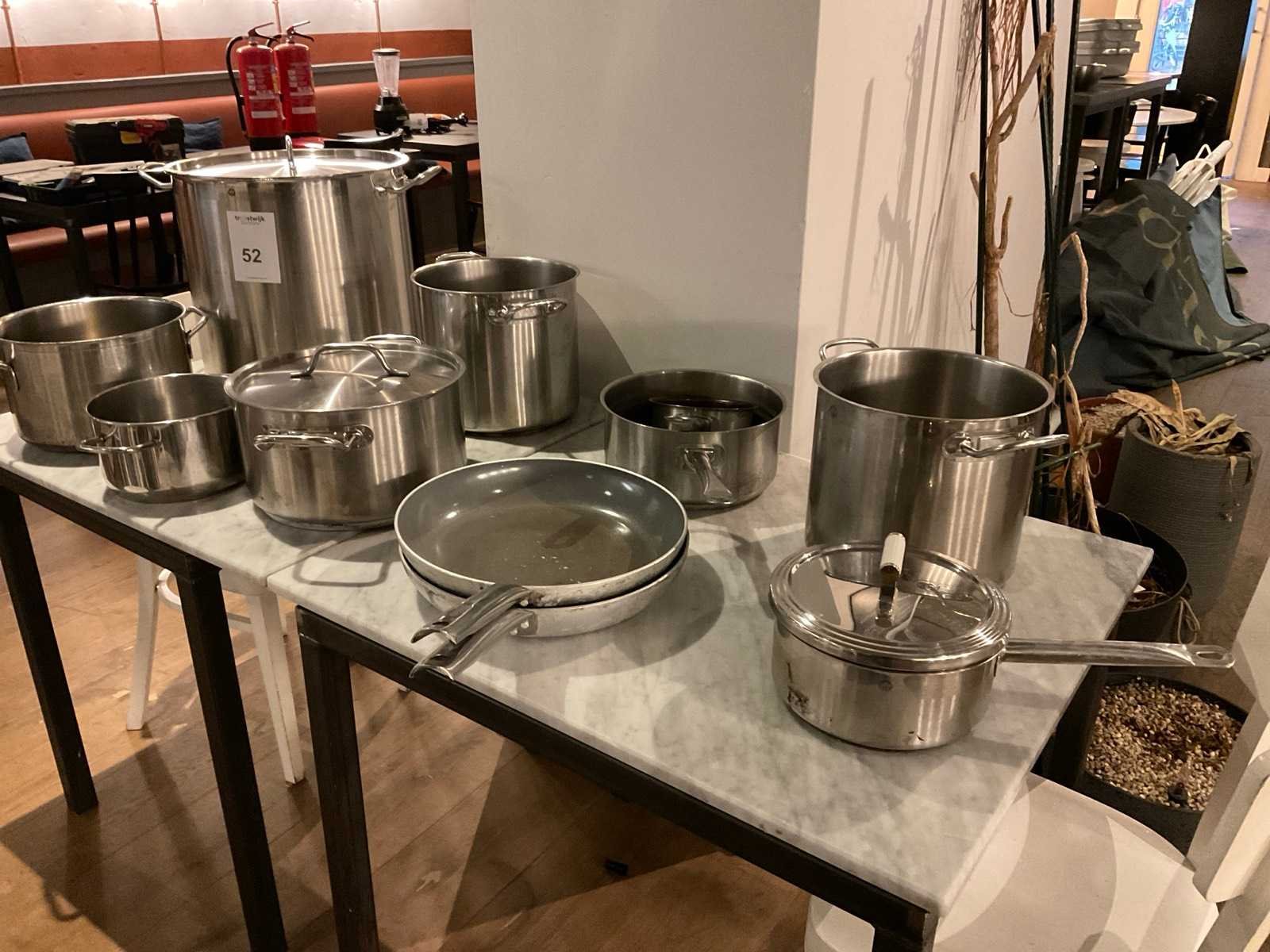 Diverse kookpannen en steelpannen waarvan grootste ø 38 cm hoogte 37 cm