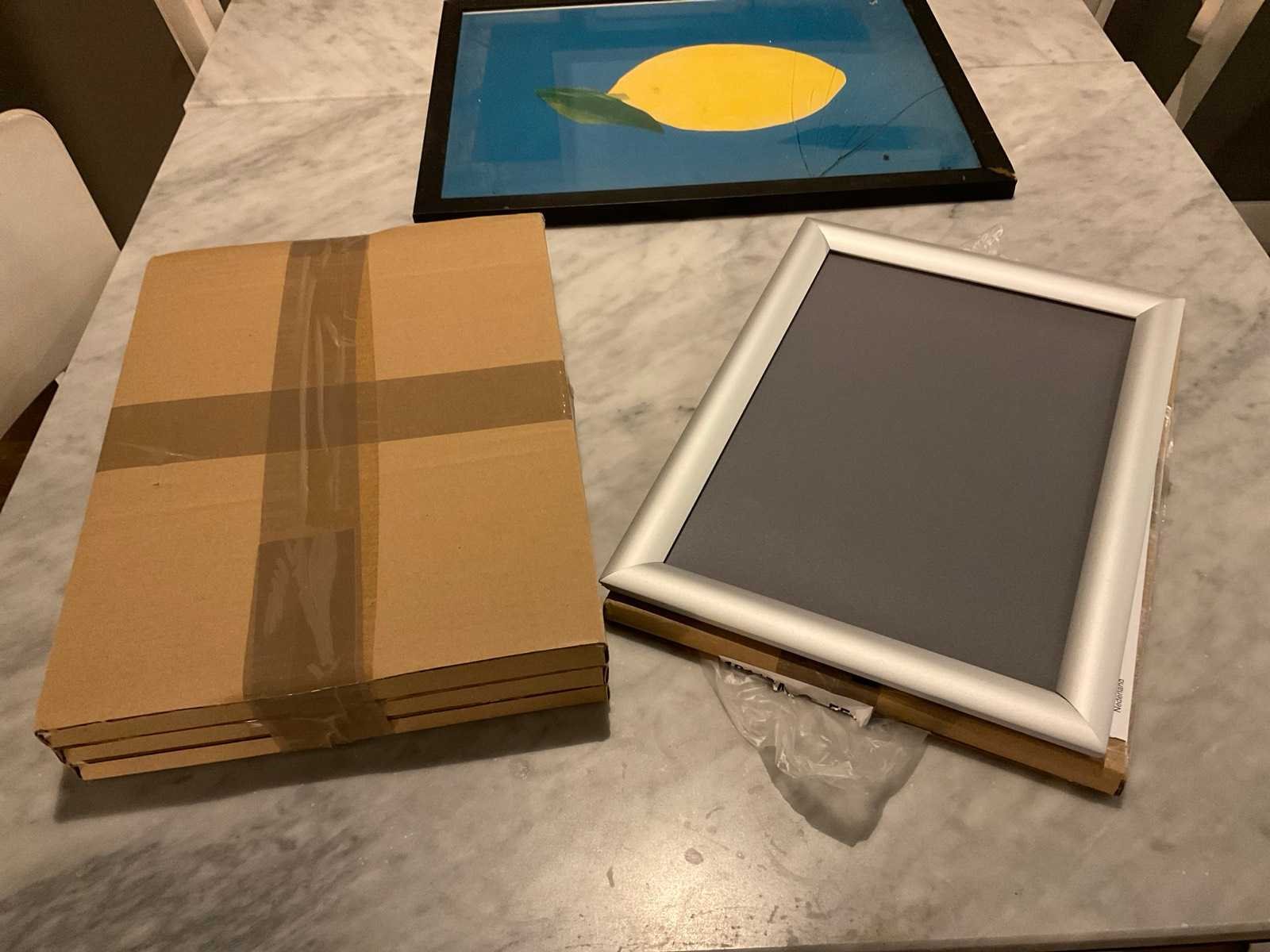 Ca 16 stuks diverse lijsten in diverse maten waaronder 3 stuks afm ca. 53x73 cm en 6x afm ca. 16x21 cm Alsmede gesigneerde zeefdruk en 4 stuks click lijsten