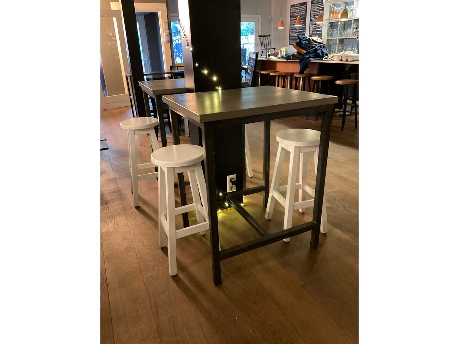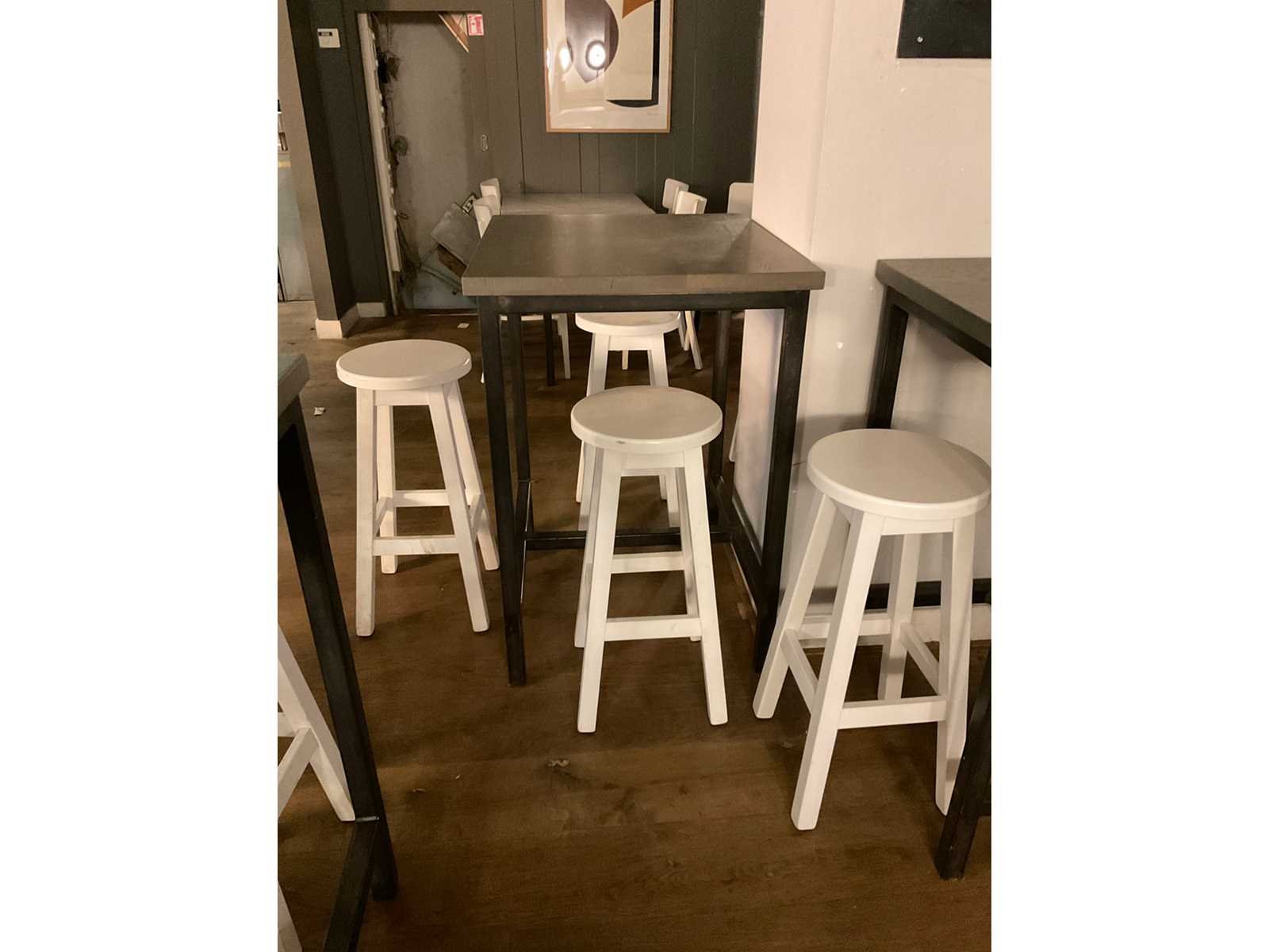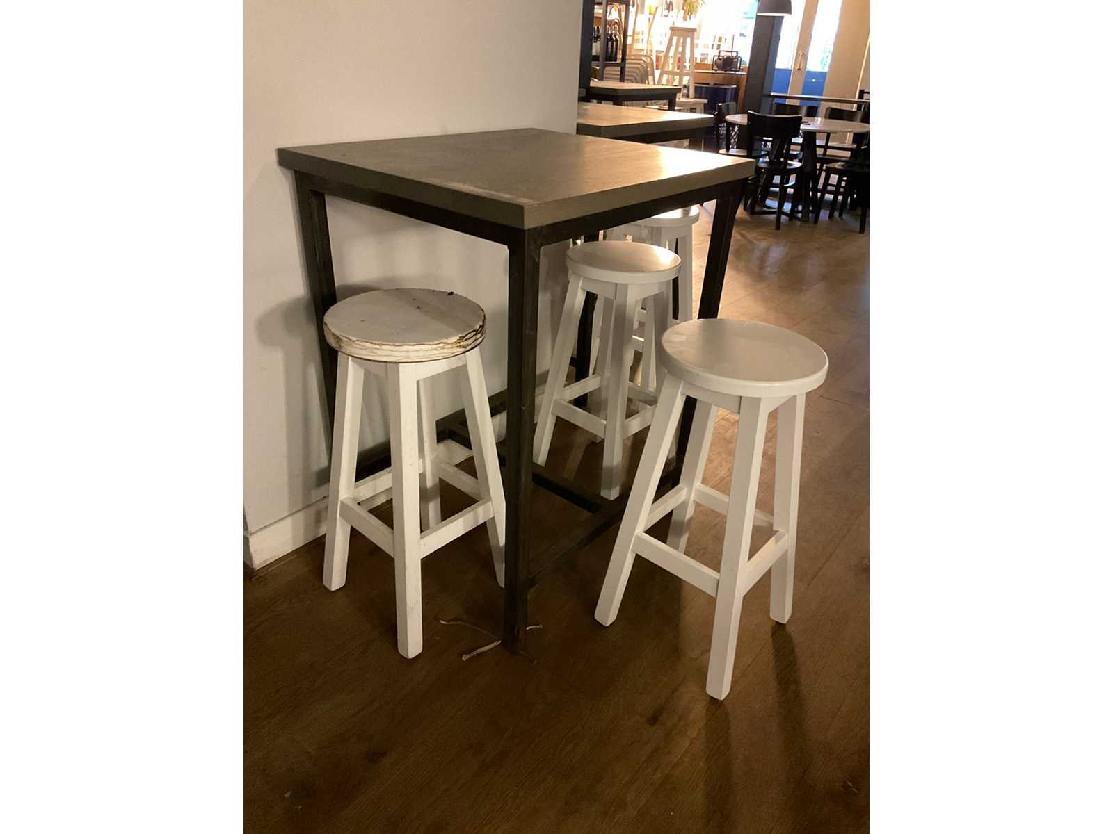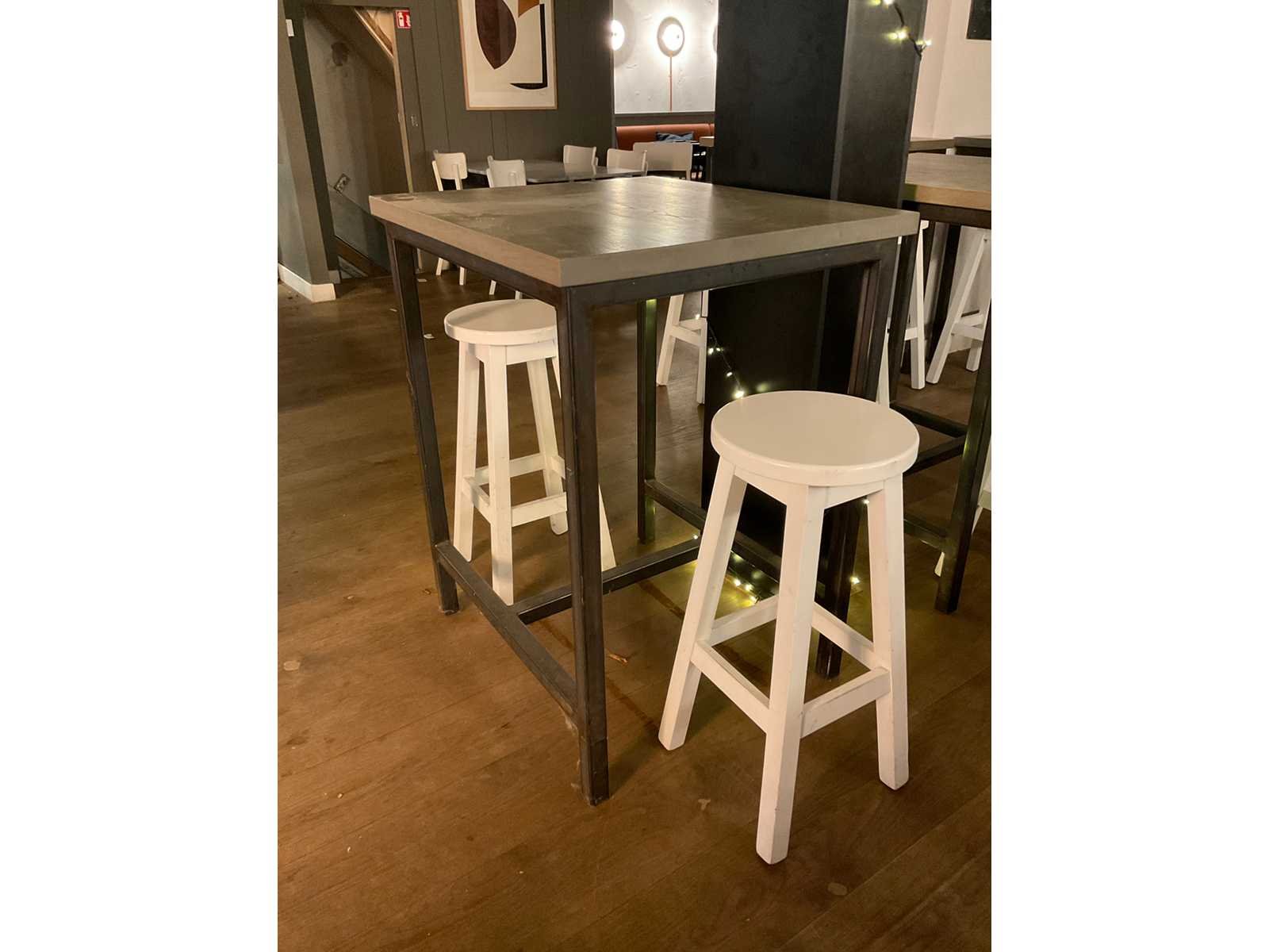 Bestaande uit 6 statafels en 15 barkrukken afm ca. Ø 33 cm, hoogte ca. 73 cm Totale afmeting L: 80cm Totale afmeting Breedte: 70cm Totale afmeting Hoogte: 101cm Hout: true Metaal: true