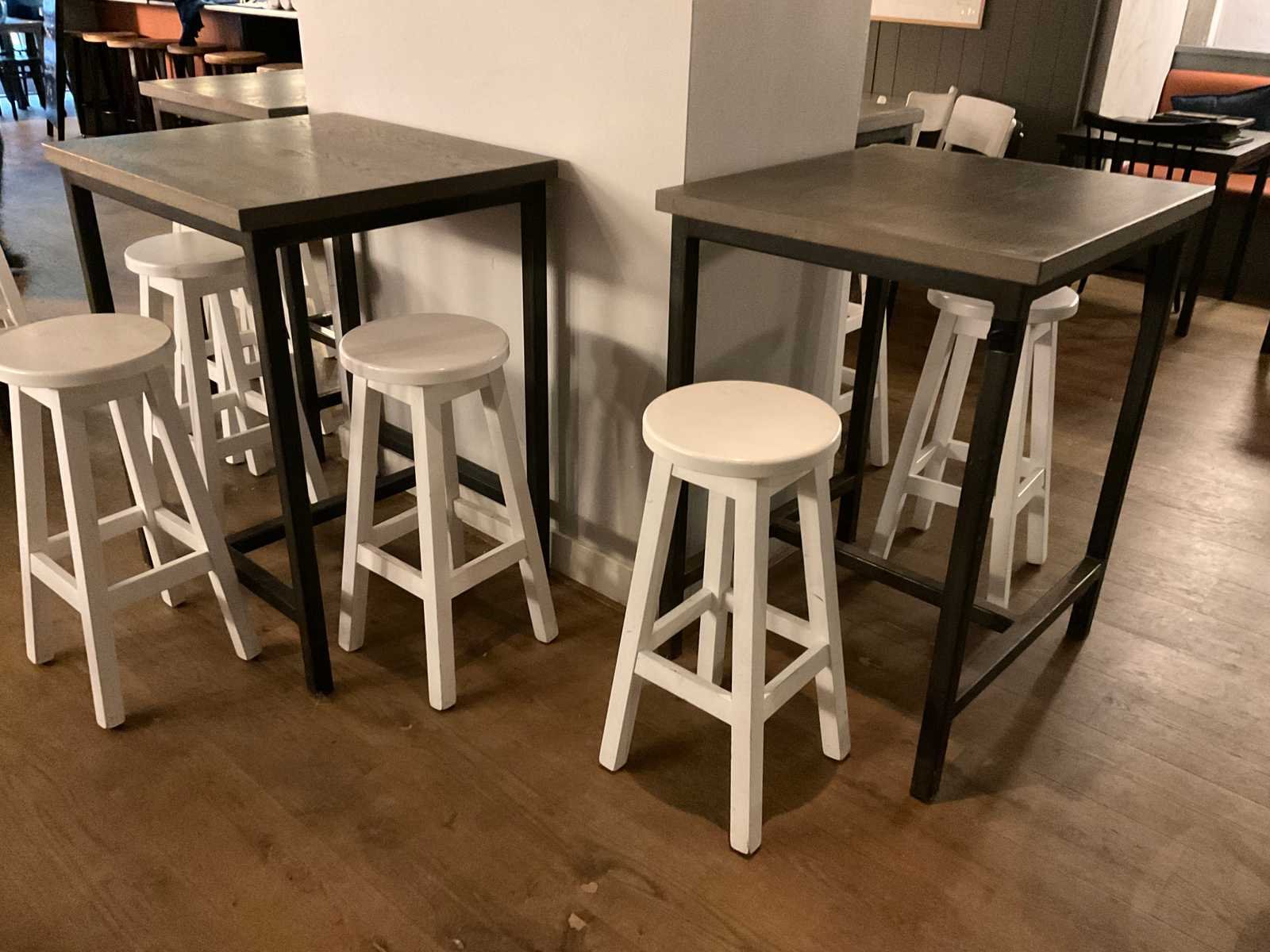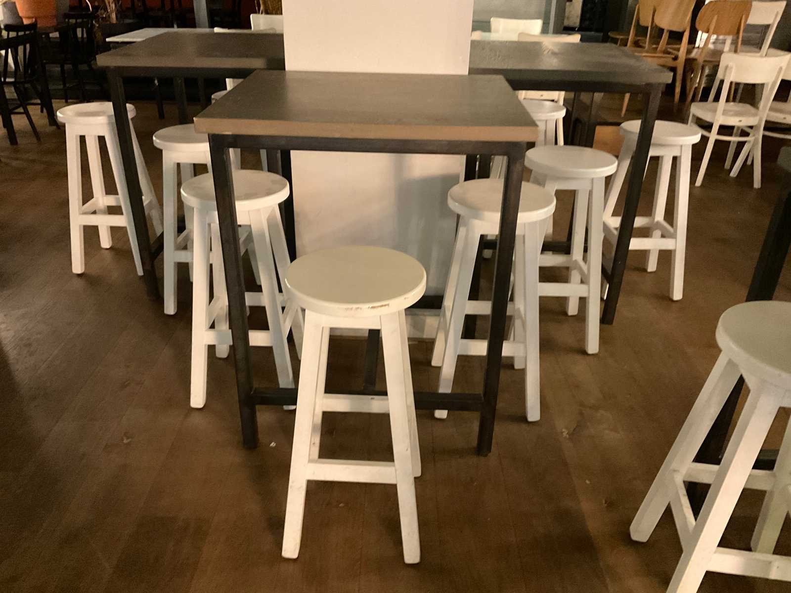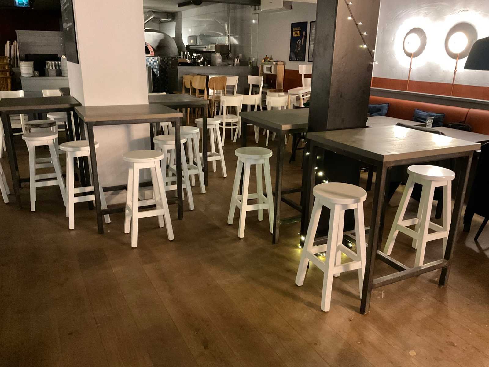 Bestaande uit 6 statafels en 15 barkrukken afm ca. Ø 33 cm, hoogte ca. 73 cm Totale afmeting L: 80cm Totale afmeting Breedte: 70cm Totale afmeting Hoogte: 101cm Hout: true Metaal: true