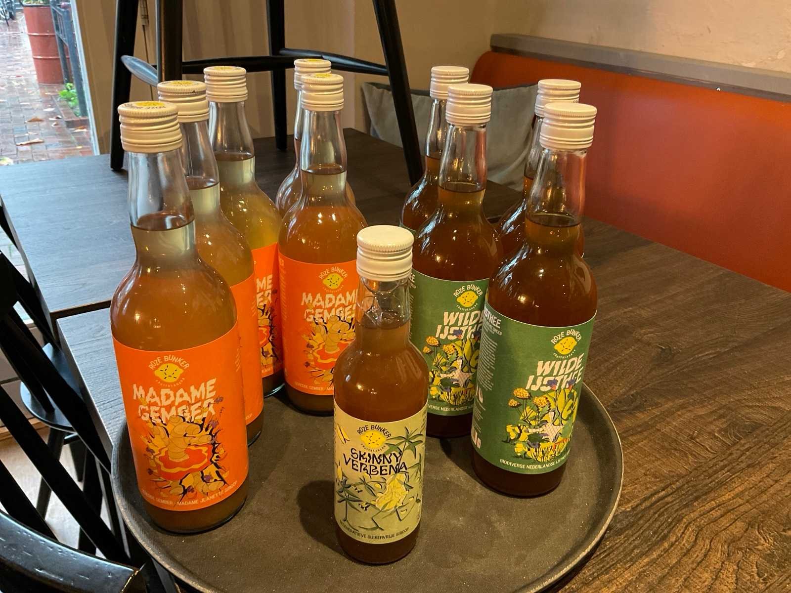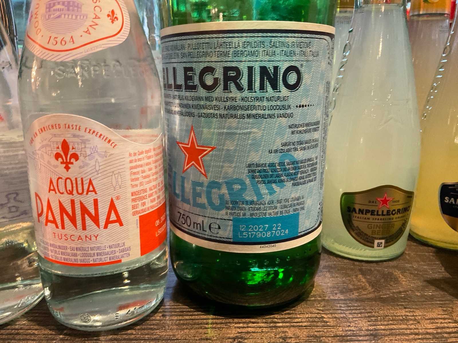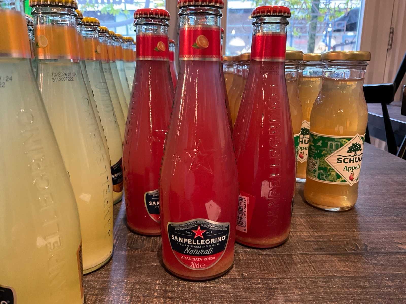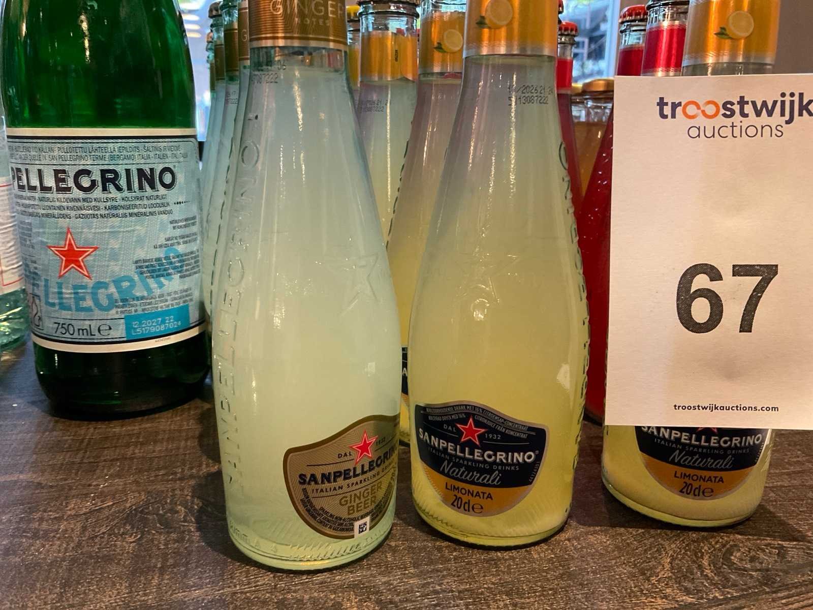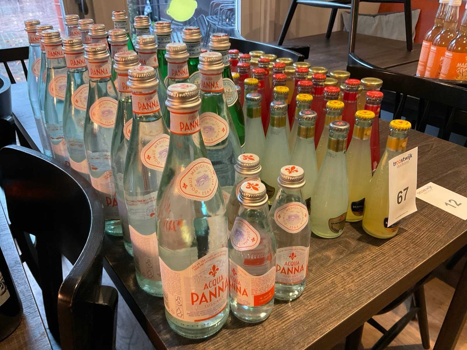 Diverse flessen water, ginger beer, limonata, appelsap en siroop Merk: Pellegrino