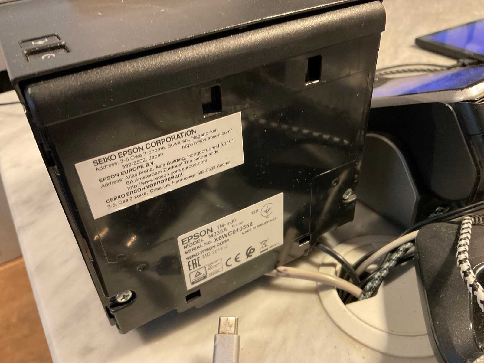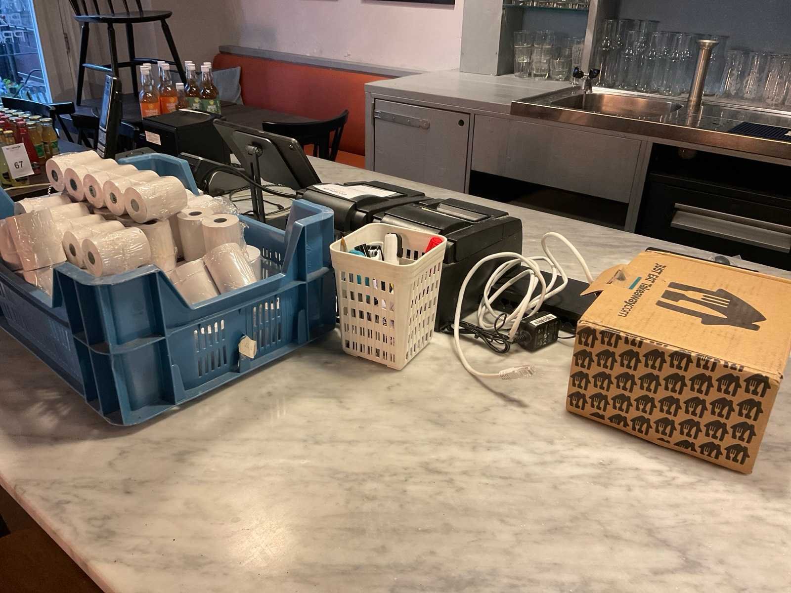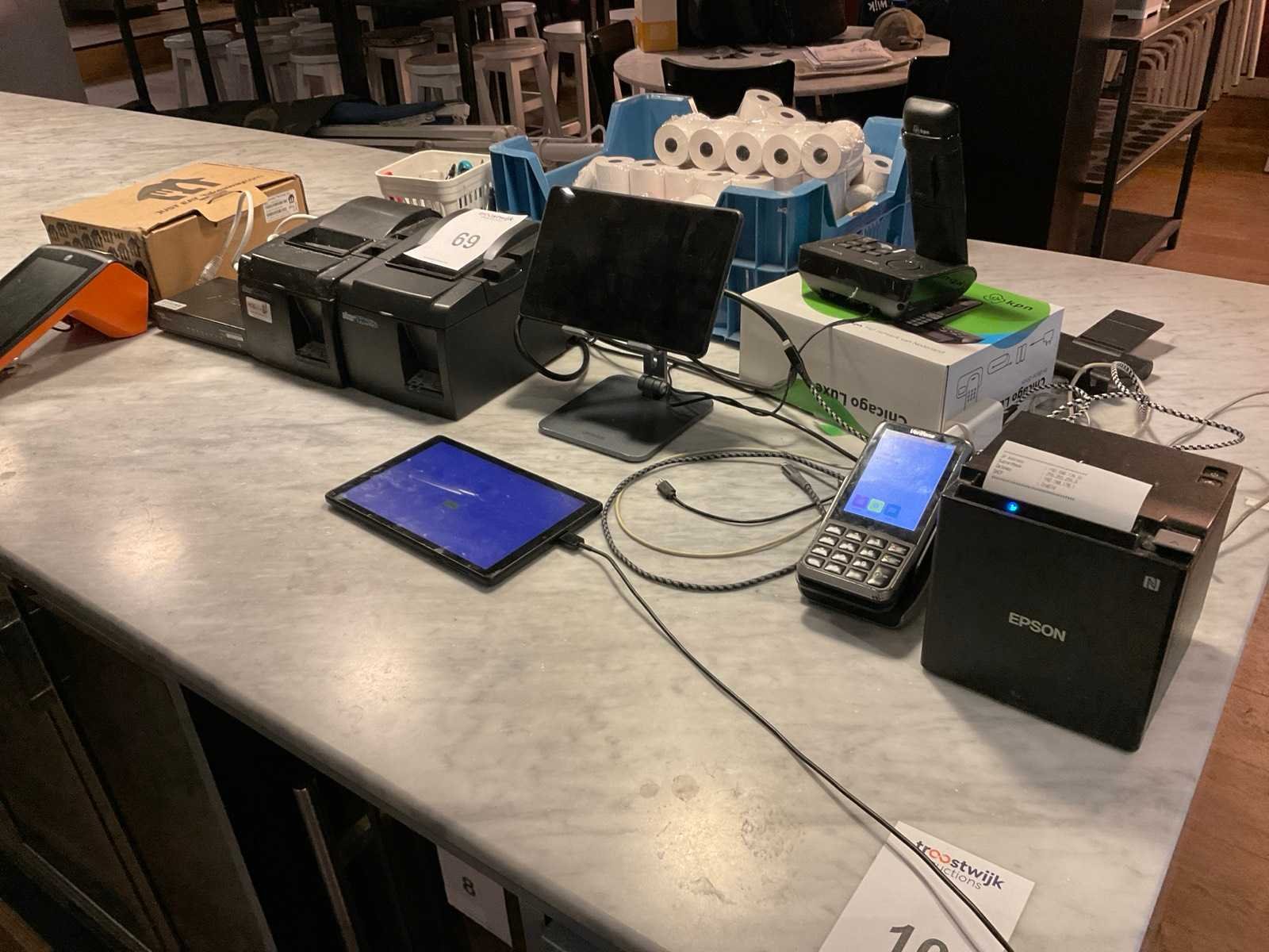 Bestaande uit 2 star bonprinters, Epson bonprinter, kpn telefoon, Asus 10 poorts switch, Verifone pinautomaat Lenovo en tcl tablet Merk: Epson, star