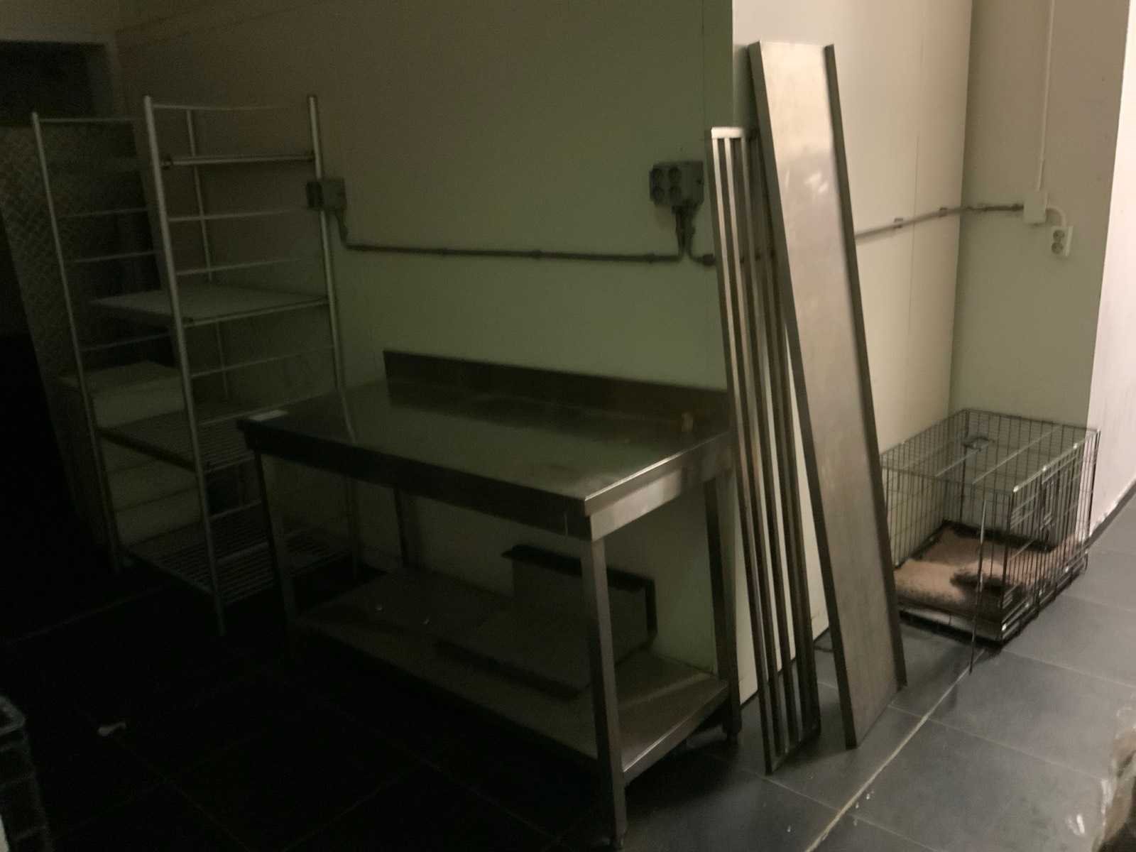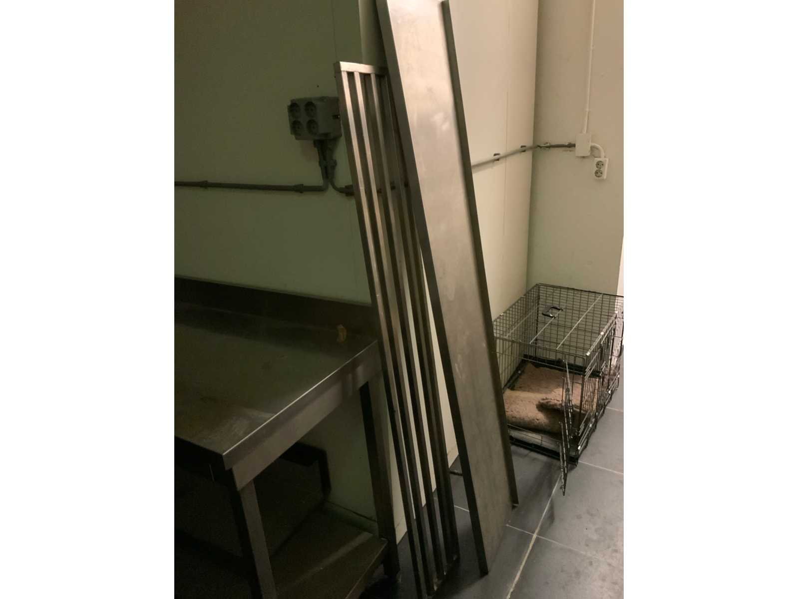 Rvs werktafel, wandplank, roosters, traanplaat, bench en afvalbak