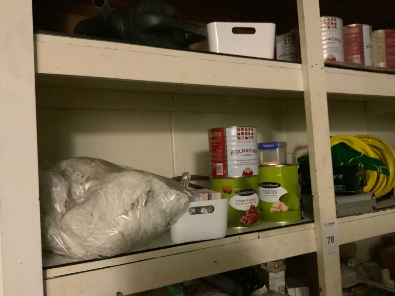Bestaande uit oa: emballage, decoratief glaswerk, gastro norm bakken, blikken tomaten puree, olijf olie, meel, deeg, reinigingsmiddel, vershoudfolue en dispensers in 4 stelling secties