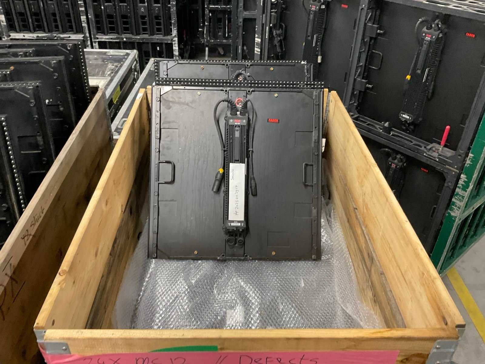 Waarvan (24x) defect; incl. (2x) houten palletbox Merk: ROE Type: MC-12H Pixel pitch: 12.5 Helderheid: 6000nits Frequentie: 4000Hz Totale afmeting L: 600mm Totale afmeting Breedte: 600mm