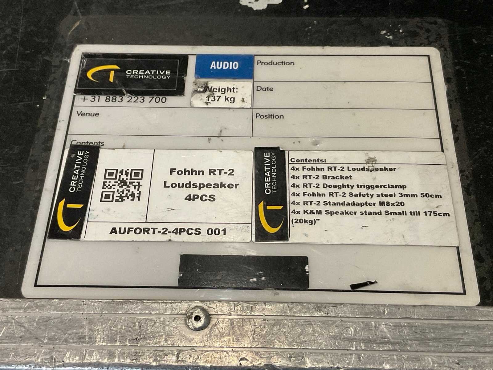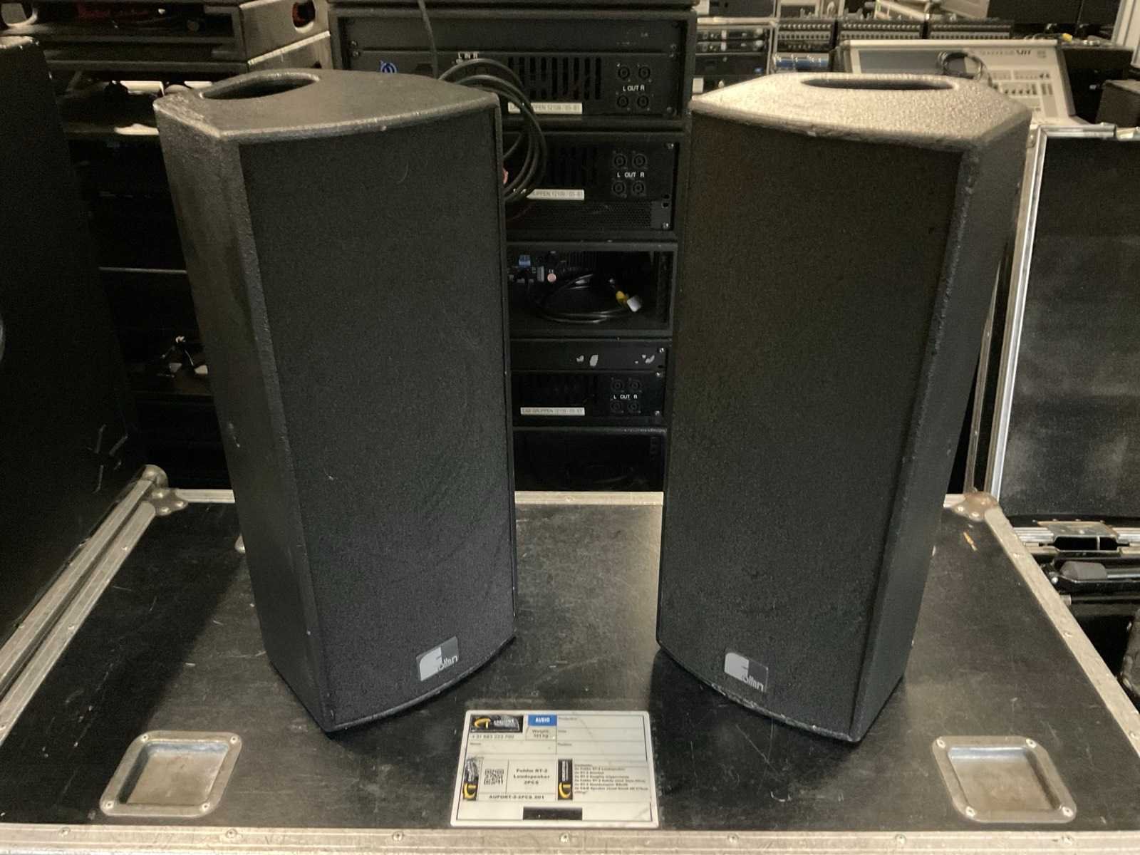 Incl. (2x) “K&M” luidspreker statief en diverse toebehoren in flightcase; afm. ca. 1200x600x800 mm Merk: Fohnn Type: RT-2 Capaciteit.: 18O Vermogen: 250W Met flightcase: true Totale afmeting L: 260mm Totale afmeting Breedte: 270mm Totale afmeting Hoogte: 600mm