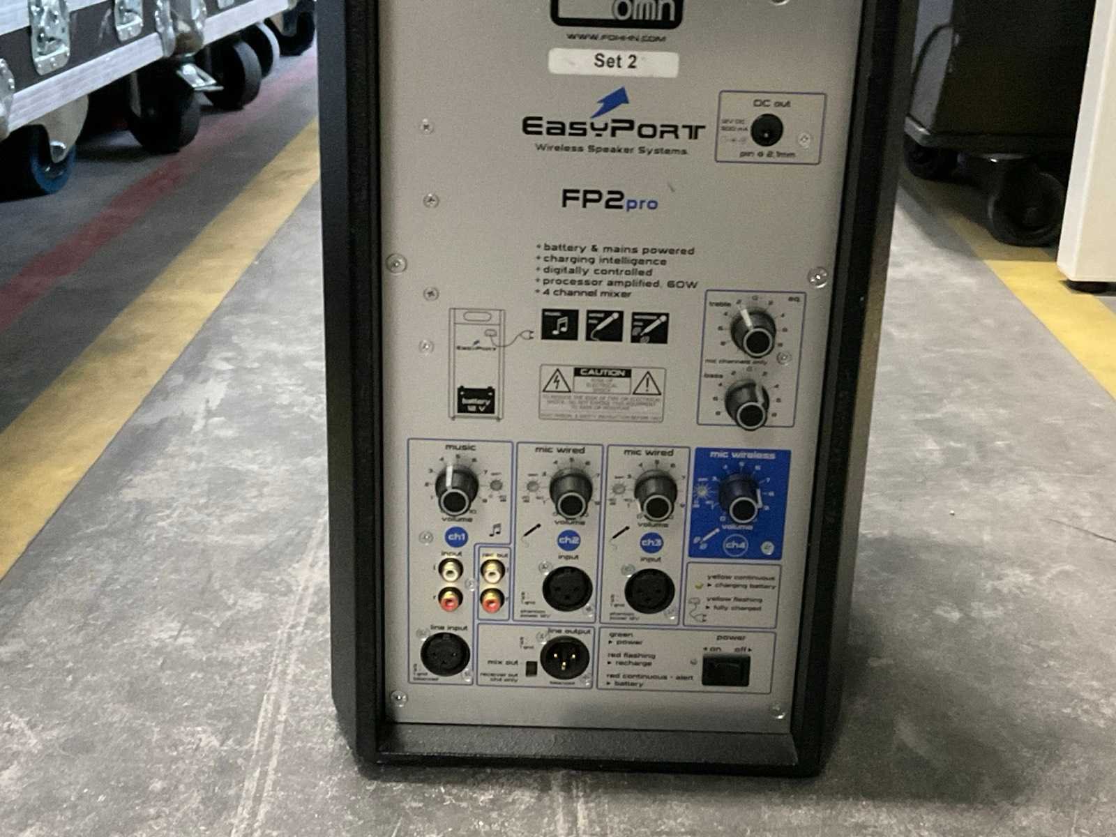 Incl. (1x) “Sennheiser” ontvanger; type E300; (1x) “Sennheiser” microfoon; type EW300; met draagtas Merk: Fohhn Type: FP-2 Pro Vermogen: 60W Totale afmeting L: 240mm Totale afmeting Breedte: 270mm Totale afmeting Hoogte: 520mm