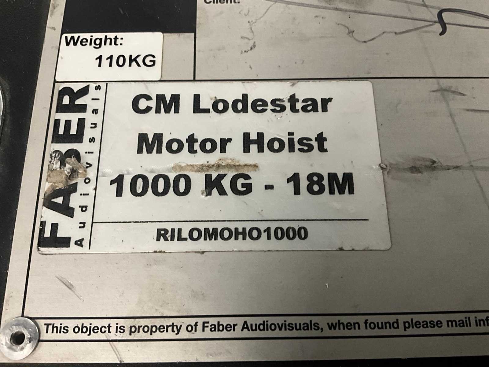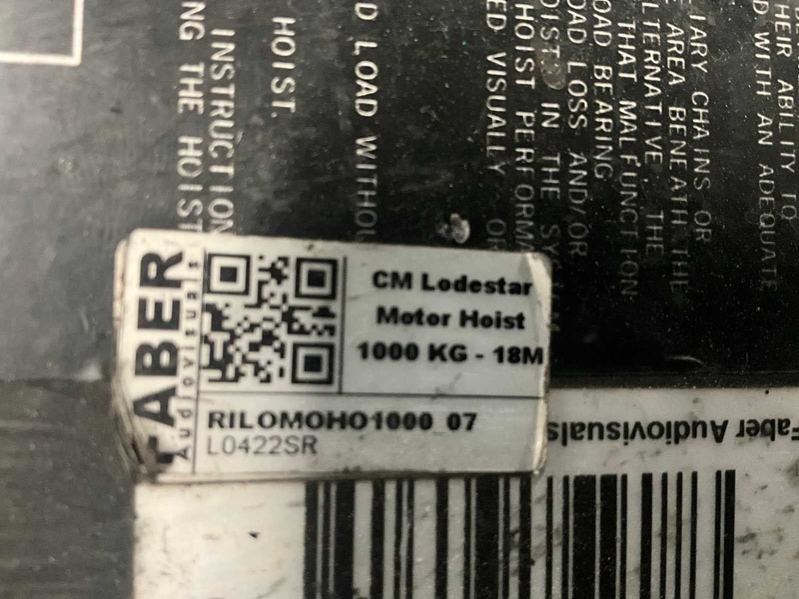 Inclusief kabels. Merk: CM Lodestar Type: Motor Hoist Capaciteit.: 1000kg Hijshoogte: 18m Met flightcase: true
