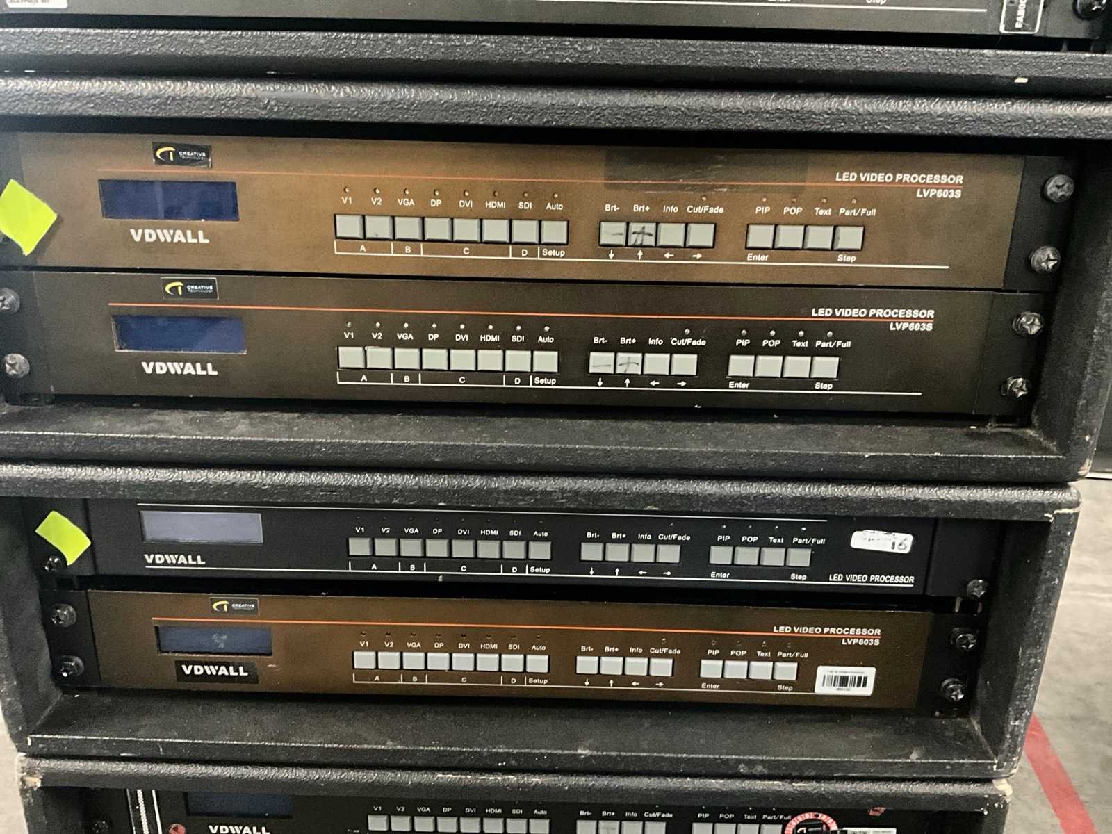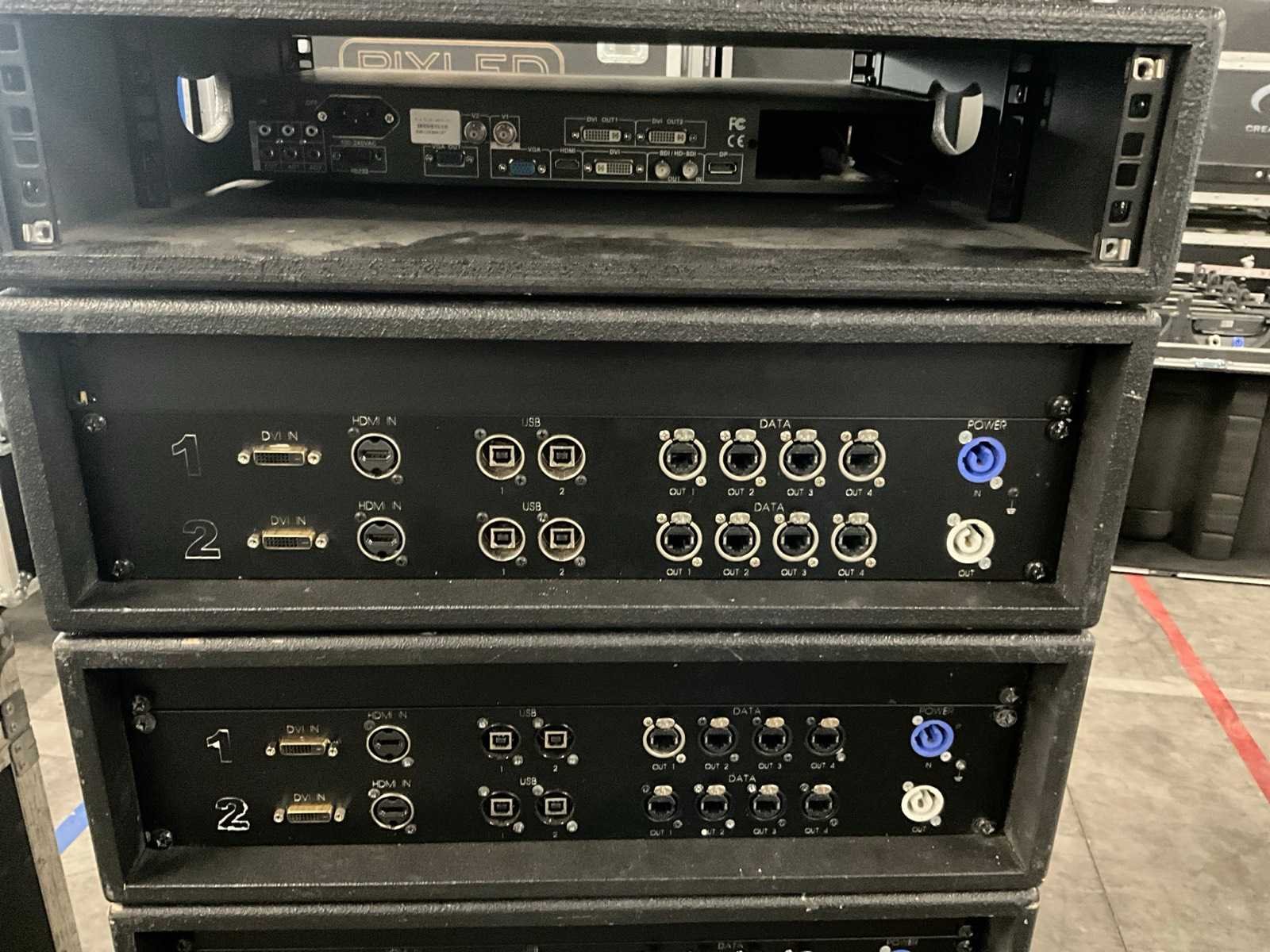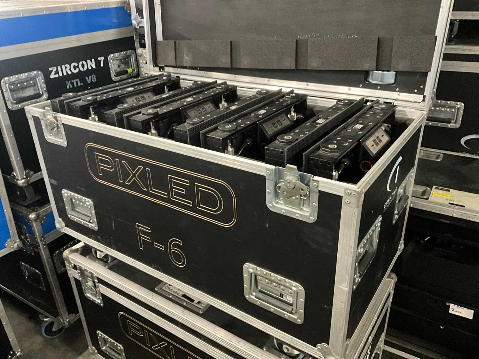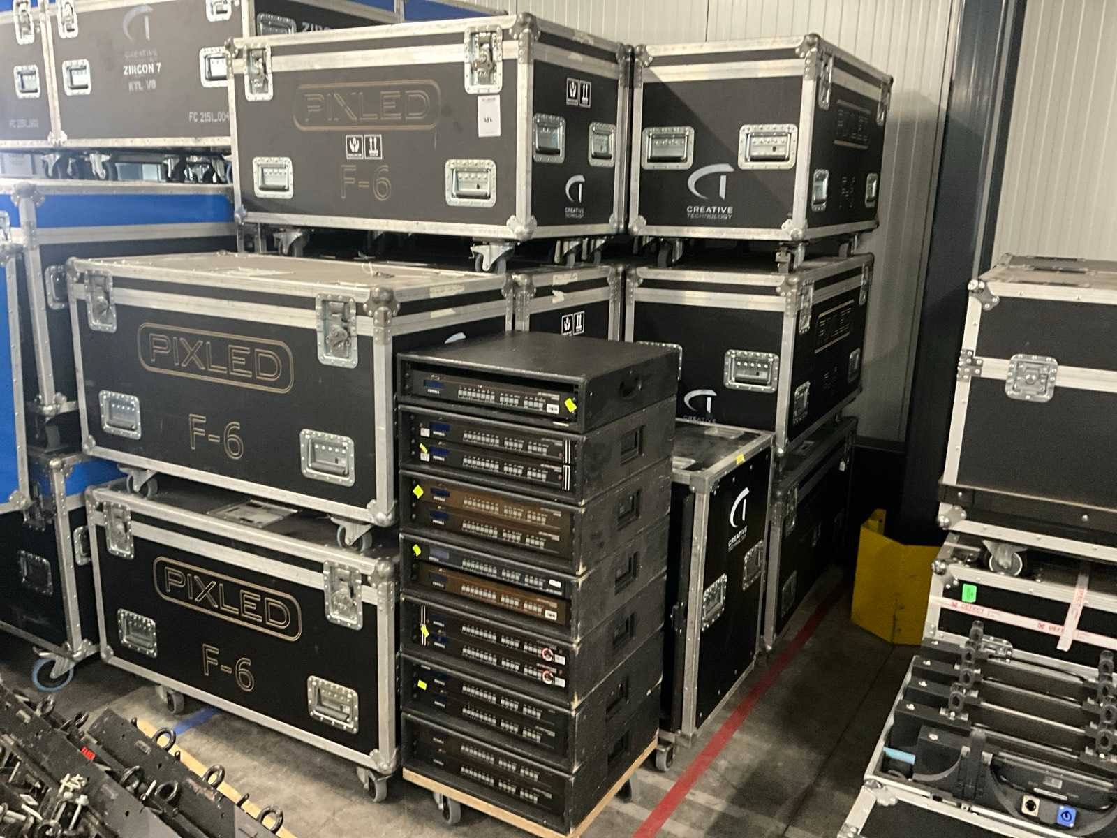 Bestaande uit: 14x flightcase met 8 panelen ( 500x500mm), 112 panelen totaal, 13x VDWALL LVP 603S Led video processor. Merk: Pixled Type: F6 Indoor: true Met flightcase: true