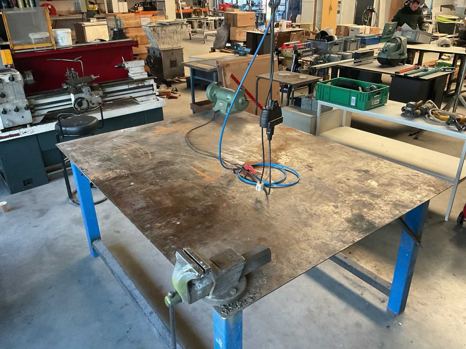 Stalen werkbank met bankschroef + verlichting
