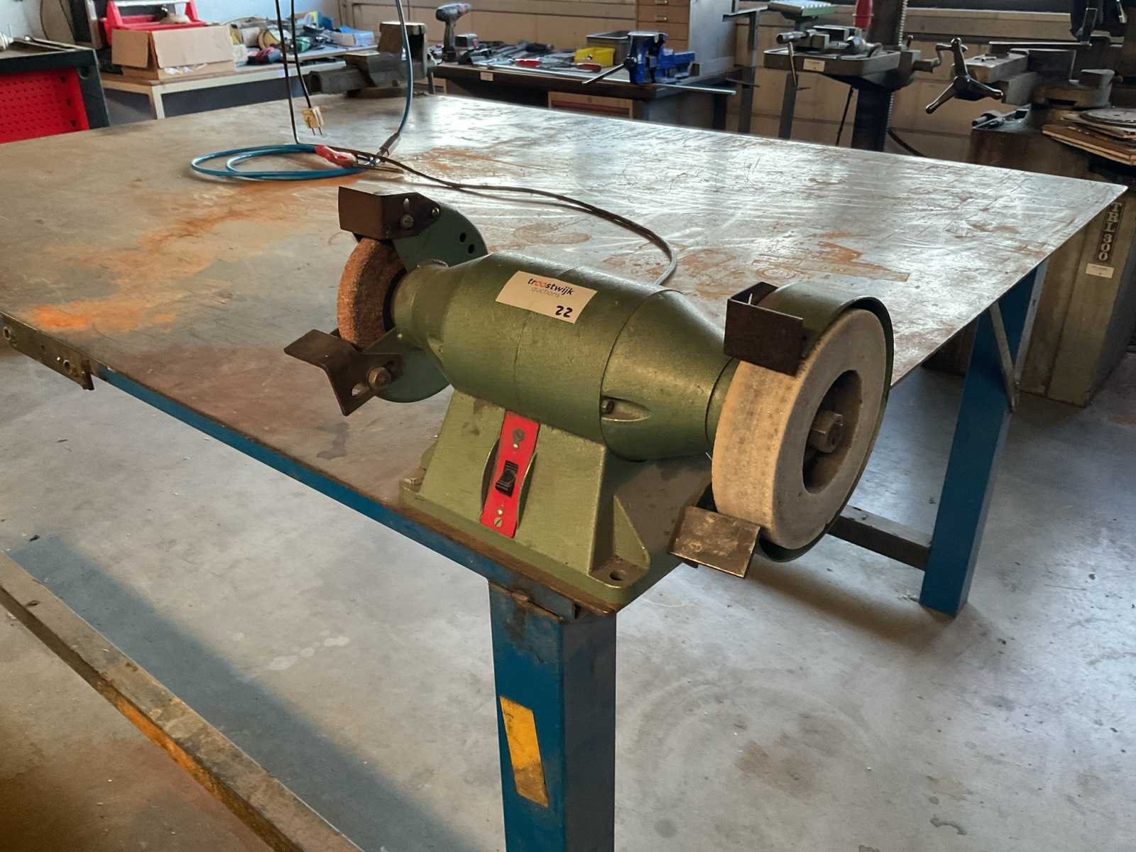 Incl verlichting, bankschroef en slijpmachine. De verlichting dient vakkundig te worden gedemonteerd. Kosten van schade aan pand zijn voor rekening van de koper. Breedte: 150mm Lengte: 200mm Hoogte: 90mm