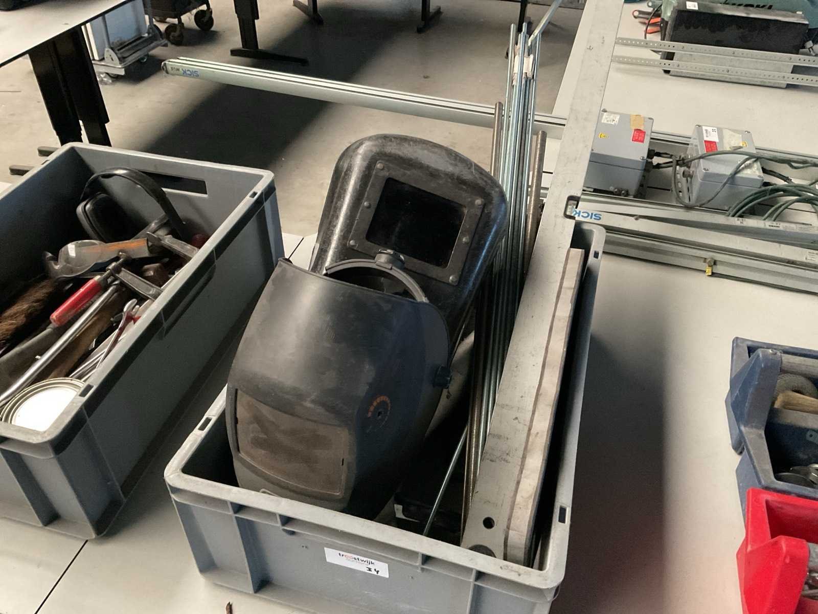 2 laskappen Waterpas 120 cm Waterpas 60 cm Draadeind 100 cm Divers gereedschap