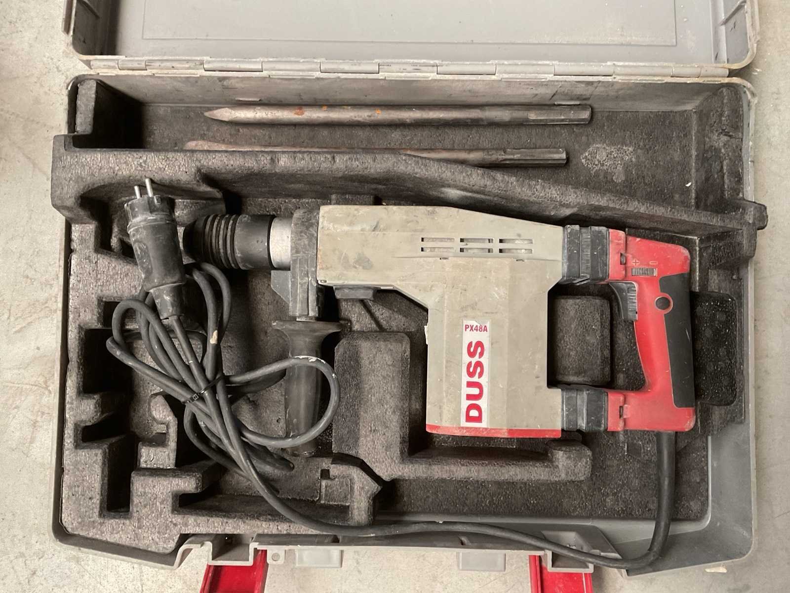 Met beitels Merk: Duss Type: PX48A Serienummer: 14187 Vermogen: 920W Met koffer: true Aansluiting: 230V