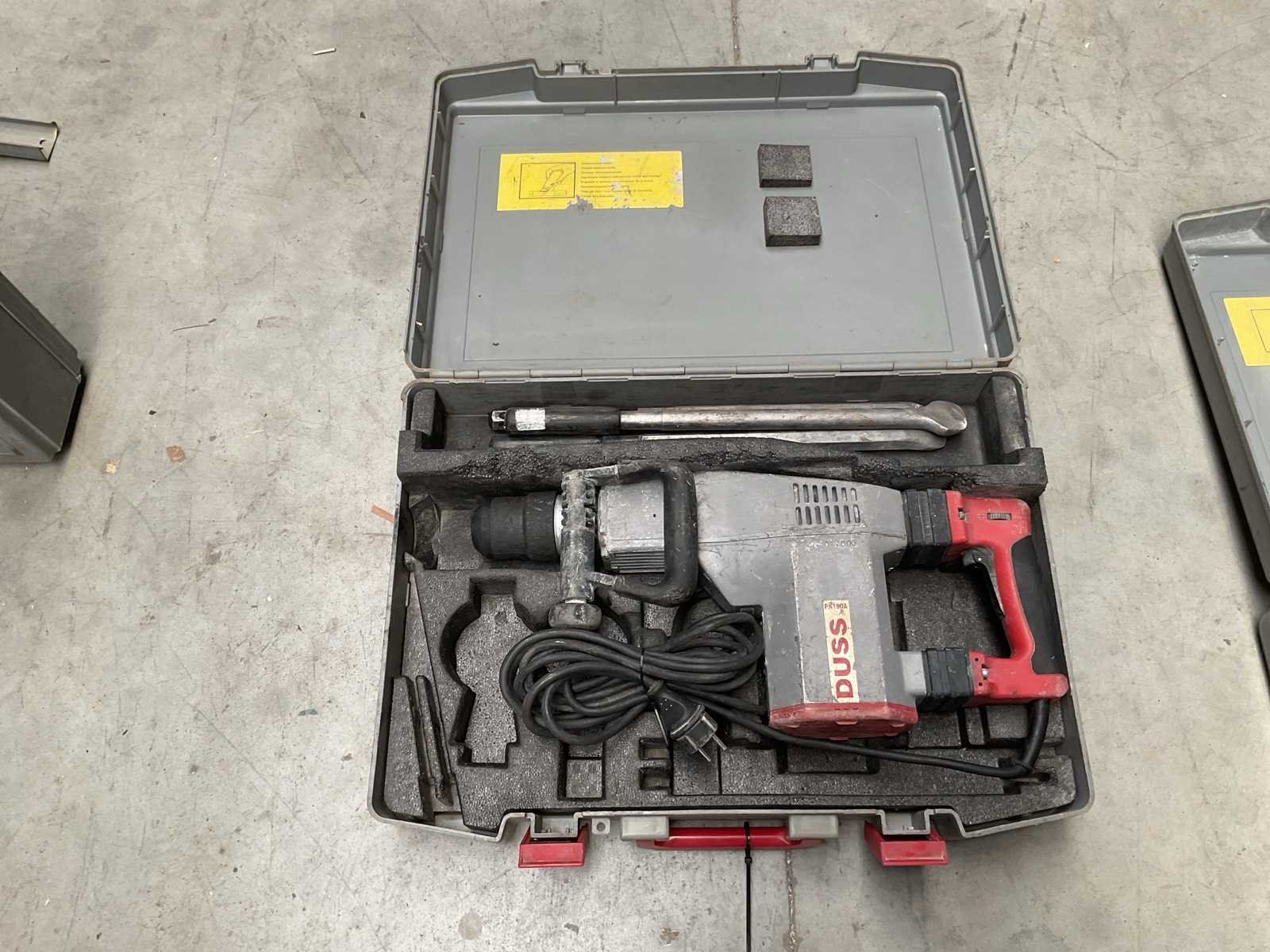 Met beitels Merk: Duss Type: PK160A Serienummer: 22300 Vermogen: 1300W Met koffer: true Aansluiting: 230V