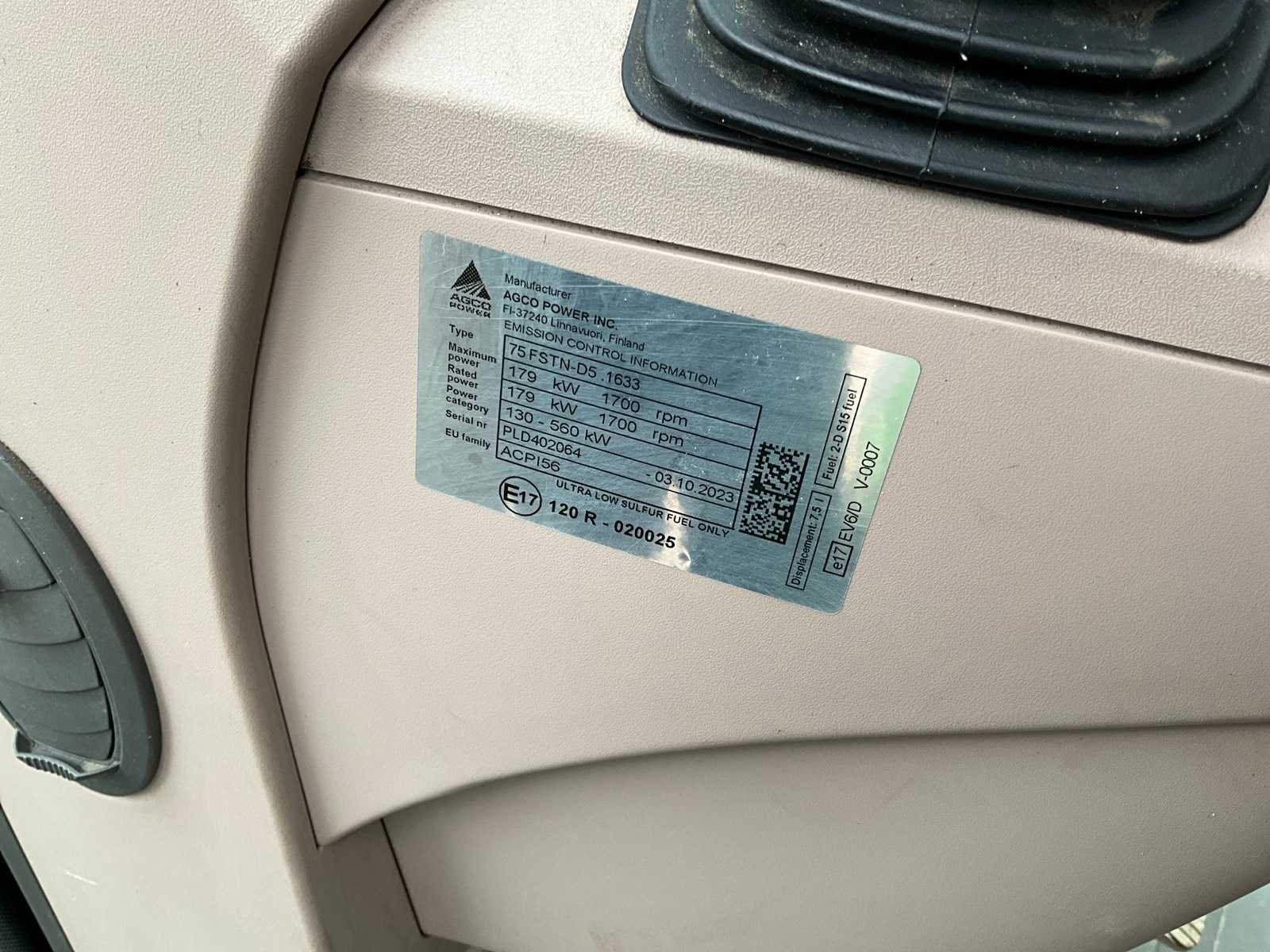Voorzien van Vario Grip luchtdruk wisselsysteem, luchtgeveerde cabine, geveerde vooras, load sensing, ISOBUS aansluiting, luchtrem aansluiting, extra stroom aansluiting, hydraulische topstang, spatbord bediening, elektrisch verstelbare spiegels, adblue, fronthef, front aftakas, K80/2x K50 onder trekhaak, werkverlichting, boven trekhaak, stoelverwarming, voor verdere specificaties zie bijlage Merk: Fendt Type: 724 Bouwjaar: 2024 Serienummer: WAM70823C00F01144 Kenteken: T-77-FXT Motorvermogen (kW): 179kW Afgelezen urenstand: 2250 Versnellingsbaktype: Vario Aantal hydraulische ventielen voor: 1 Aantal hydraulische ventielen achter: 4 Bandenmaat voor: Trelleborg 710/60R30 Bandenmaat achter: Trelleborg 900/60R38 Fronthefinrichting: true Frontaftakas: true Cabine: true Luchtgeveerde stoel: true Chassisnummer: WAM70823C00F01144 Datum eerste toelating: 2024-01-09
