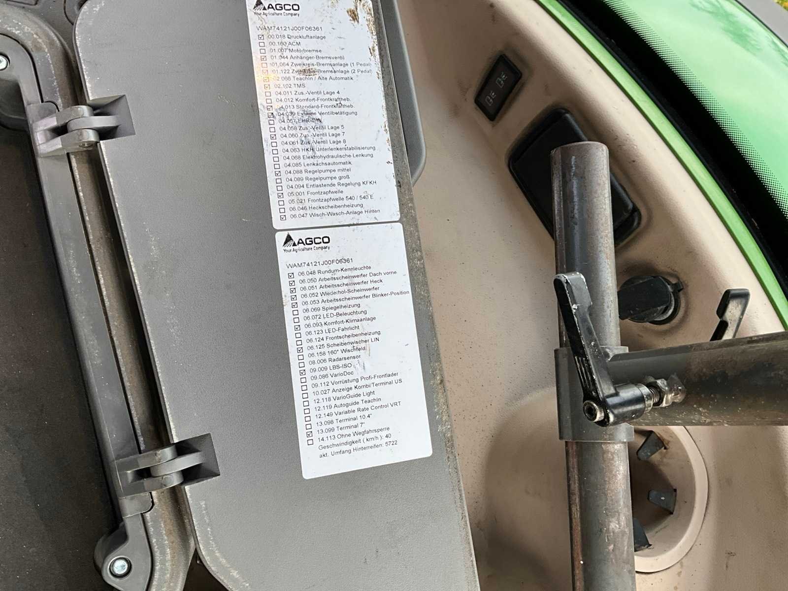 540/540e/1000/1000e aftakas, voorzien van geveerde vooras, lucht geveerde cabine, GPS voorbereiding, luchtrem aansluiting, hydraulische topstang, load sensing, werkverlichting, spatbord bediening, K80/K50 onder trekhaak, ISOBUS aansluiting, boven trekhaak, adblue, climate controle, multifunctionele rijhendel, stoelverwarming, elektrische verstelbare spiegels, extra stroomstekker/aansluiting Merk: Fendt Type: 720 Profi Bouwjaar: 2017 Serienummer: H0B435031 Kenteken: THT-18-B Motorvermogen (kW): 147kW Afgelezen urenstand: 7339 Versnellingsbaktype: Vario Aantal hydraulische ventielen voor: 1 Aantal hydraulische ventielen achter: 4 Bandenmaat voor: 600/65R28 Bandenmaat achter: Trelleborg 710/70R38 Fronthefinrichting: true Frontaftakas: true Cabine: true Luchtgeveerde stoel: true Totale afmeting L: 5200mm Totale afmeting Breedte: 2700mm Chassisnummer: WAM74121J00F06361 Datum eerste toelating: 2017-06-30