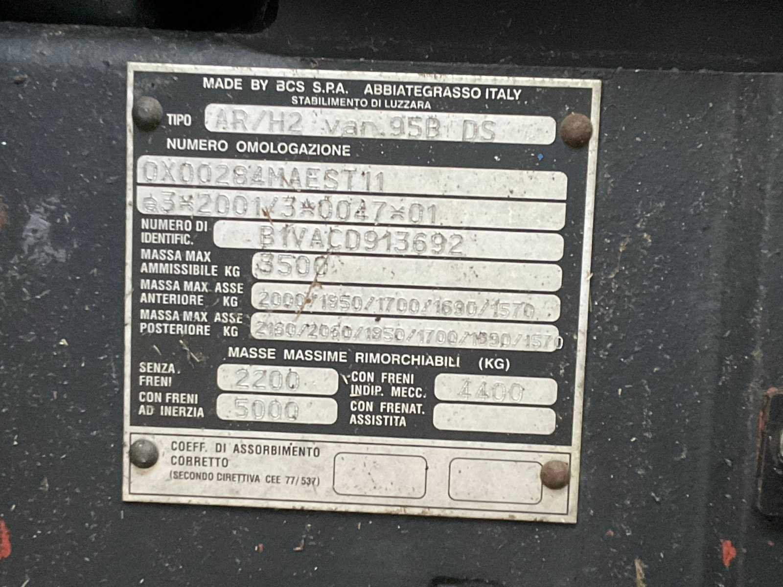 V.v. stuur- en knikfunctie; omkeerinrichting, gazonbanden, boven trekhaak, hydraulische topstang, hefinrichting met in breedte verstelbare vanghaken, vierwielaandrijving, Let op! achterruit niet aanwezig, Merk: BCS Type: Volcan 950 Dualsteer Bouwjaar: 2007 Serienummer: B1VAC0913692 Kenteken: THS-35-Z Afgelezen urenstand: 4808 Versnellingsbaktype: handgeschakeld Bandenmaat voor: 500/50-17 Bandenmaat achter: 500/50R17 Spoorbreedte: 1300mm Aantal hydraulische ventielen achter: 4 Cabine: true Luchtgeveerde stoel: true Datum eerste toelating: 2007-06-30