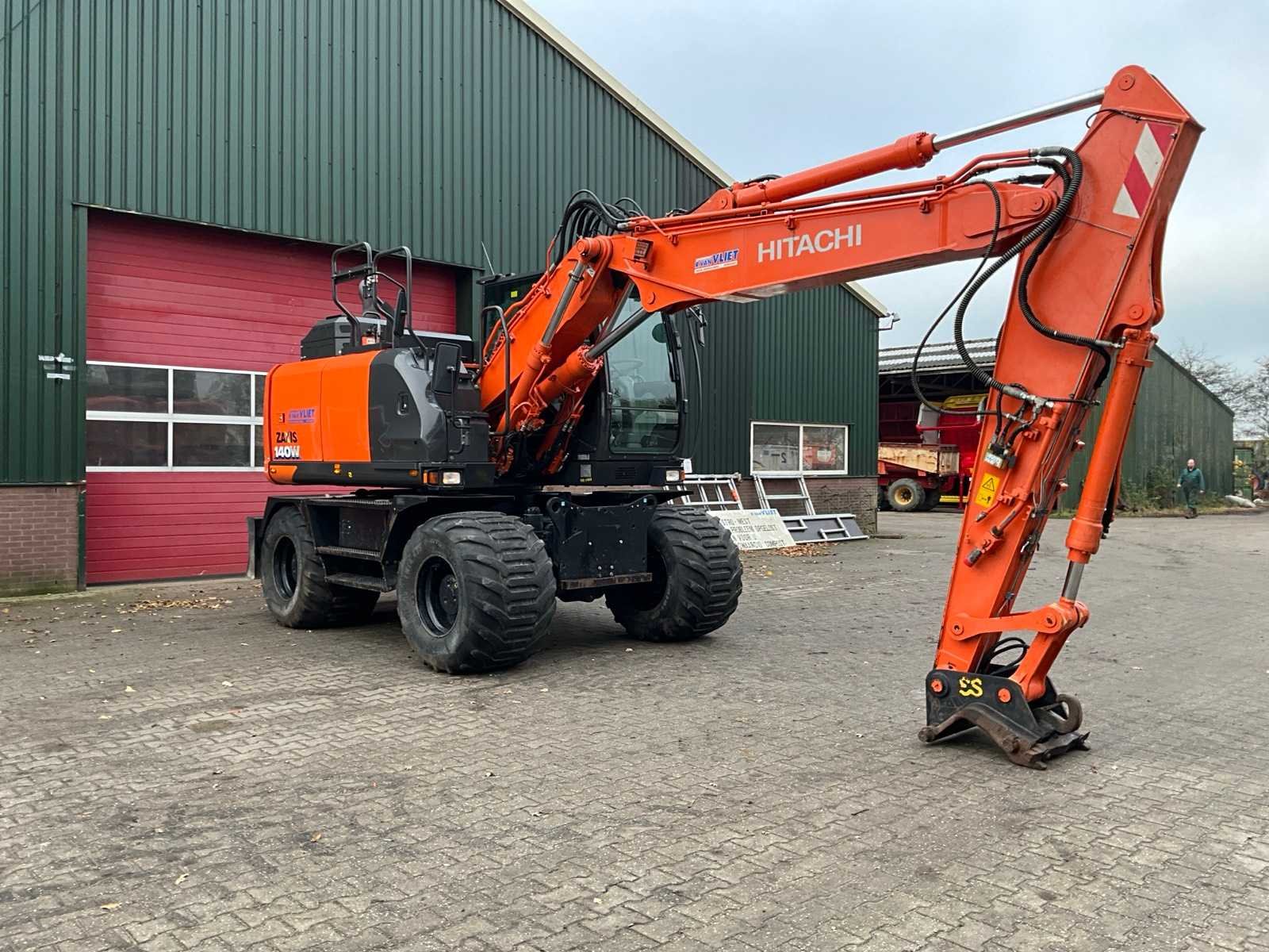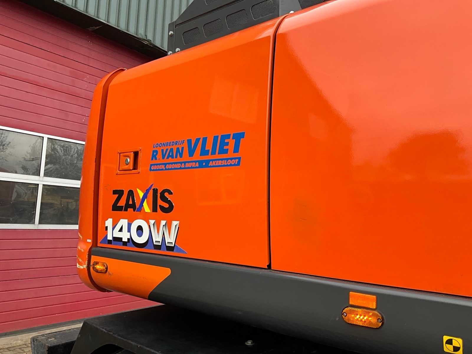 Voorzien van geledegiek, Eurosteel CW30 snelwissel, hydrauliek snelkoppeling (draaikantelstuk), extra functie, Led-werkverlichting, dozerblad met afneembare trekhaak, kettingkisten, camera, slangbreukbeveiliging, voor verdere specificaties zie bijlage Merk: Hitachi Type: ZX140W-6 Bouwjaar: 2019 Serienummer: HCMLAB5ZP00070632 Kenteken: THT-42-B Motorvermogen (kW): 105kW Brandstof: diesel Gieklengte: 7500mm Met graafbak: true Graafbak afm. b: 1850mm Bandenmaat: 710/40R22.5 Cabine: true Afgelezen urenstand: 5182 Totale afmeting Breedte: 2700mm Totale afmeting Hoogte: 3200mm