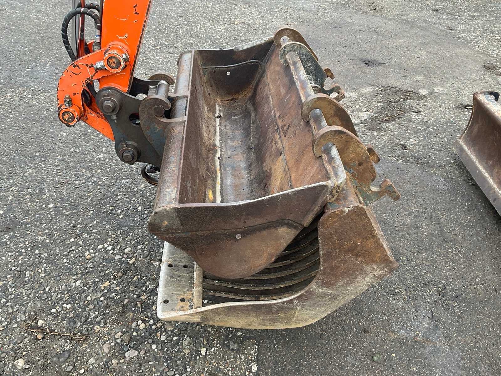 Voorzien van extra onderrollen, verstekgiek, CW05 snelwissel, 3x bak, extra functie, overdruk unit voorbereiding, slangbreukbeveiliging, kettingkist, startblokkering Merk: Hitachi Type: ZX 33U-5A CLR Bouwjaar: 2014 Merk motor: Yanmar Motorvermogen (kW): 21.2kW Aantal cilinders: 3 Brandstof: Diesel Bedrijfsgewicht: 3320kg Max. werkbereik: 4750mm Max. graafdiepte: 3130mm Inclusief graafbak: Yes Graafbak afm. l: 1200mm Graafbak afm. b: 260mm Graafbak afm. h: 430mm Rups breedte: 300mm Afgelezen urenstand: 5687