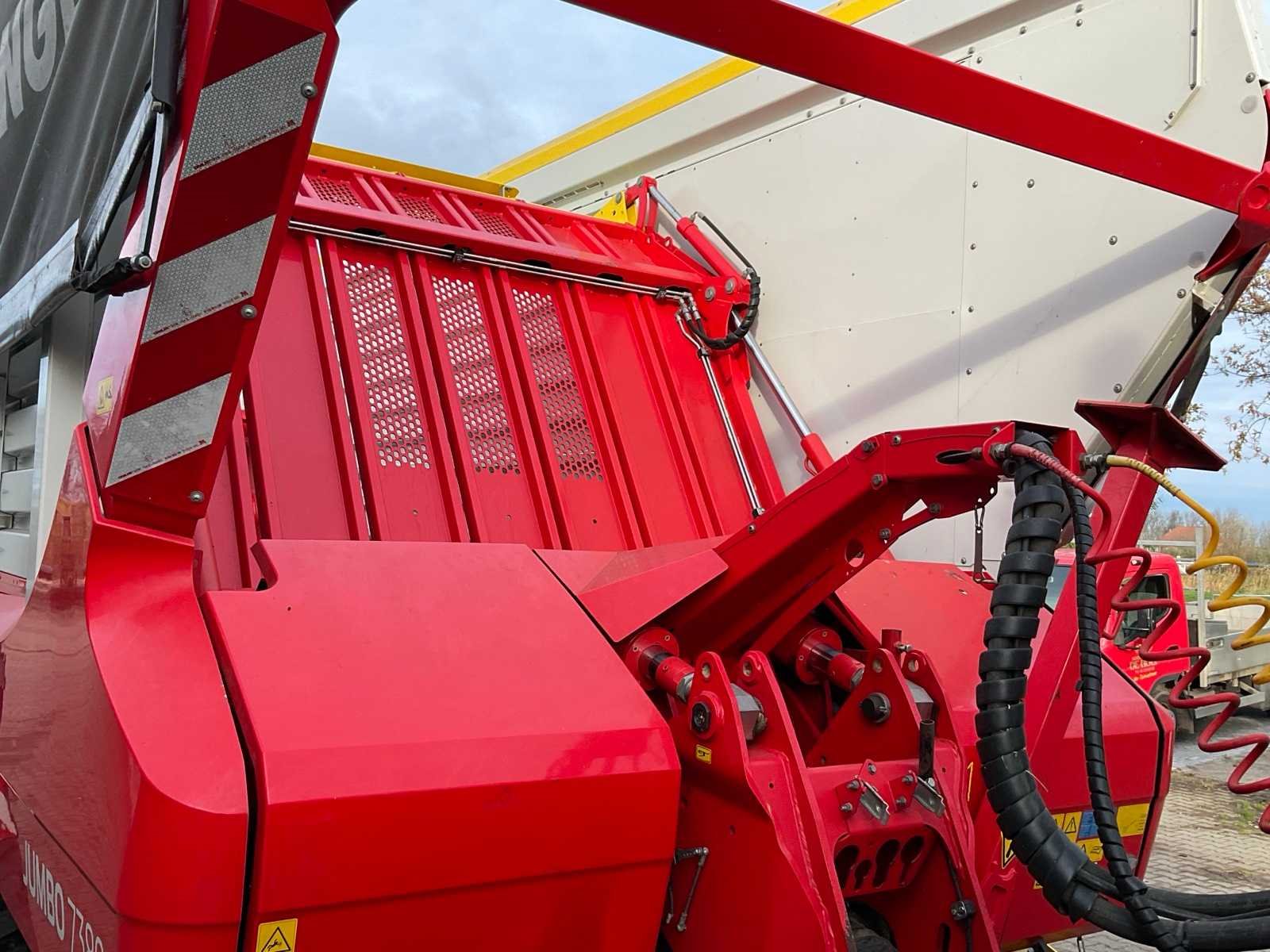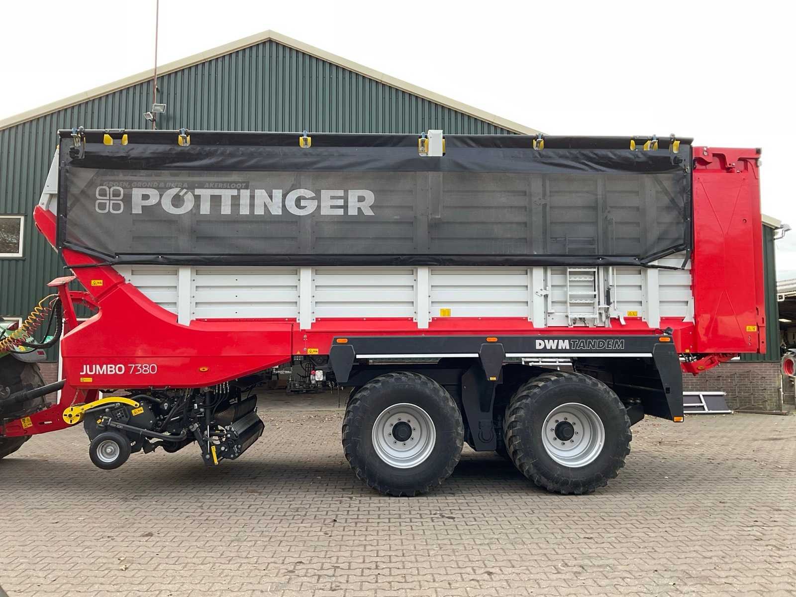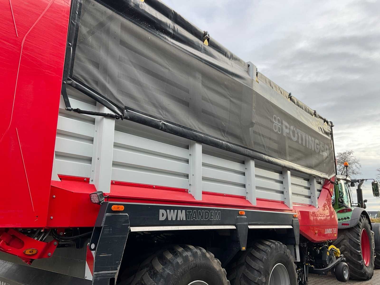Voorzien van DWM Tandem onderstel, 8x Vredestein banden, elektrisch/hydraulische aangestuurde stuuras, 38 m3 water inhoud, stekende pick-up, werkbreedte pick-up 2450 mm, verstelbare loopwielen, ISOBUS bediening, bedieningspaneel, beweegbaar kopschot, afdekkleppen, verdiepte laadvloer, snelheid verstelbare bodemketting, load sensing, uitklapbare messenbalk (vanuit cabine + externe bediening), led werkverlichting, verstelbare dissel, K80/K50 kogelkoppeling Merk: Pottinger Type: Jumbo 7380 DWM Tandem Bouwjaar: 2022 Serienummer: VBP00010015000162 Kenteken: LRH-11-K Opslagcapaciteit: 38 Met onderstel: true Bandenmaat: 600/55R26.5 Maximaal aantal messen: 47 Doseerapparaat: true Vulautomaat: true Stuuras: true Afgelezen urenstand: 836