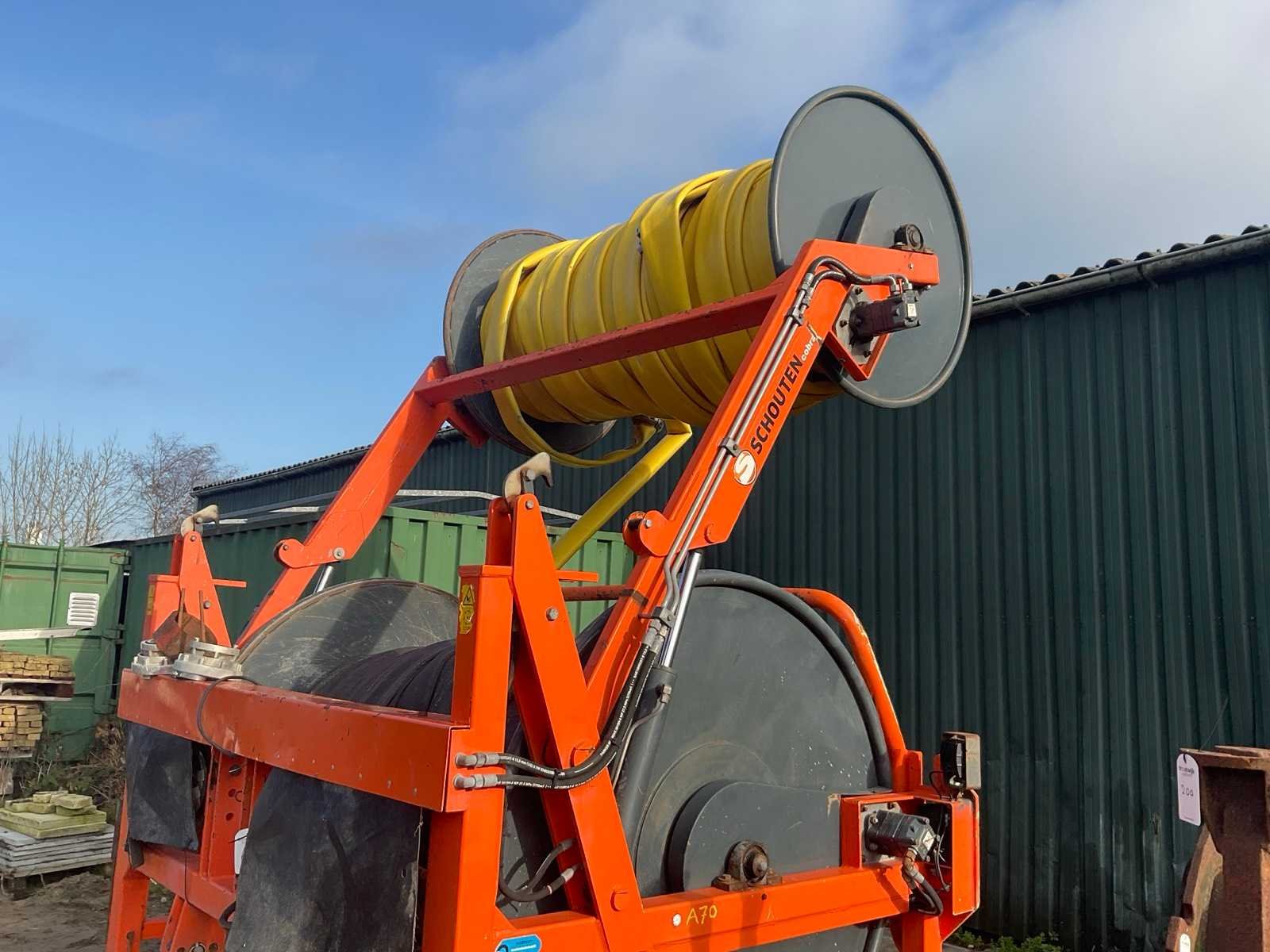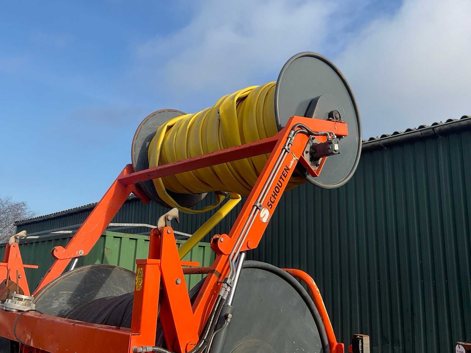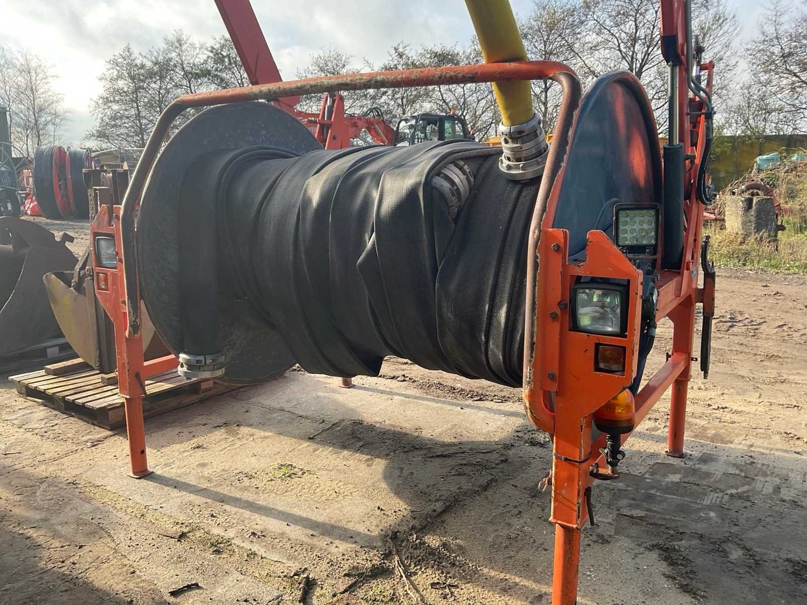Circa 360 mtr 6” transportslang, circa 340 mtr 4” sleepslang, driepunt aansluiting, hydraulische aandrijving, trekhaak, verlichting, dubbele rol snelheid, Merk: Schouten Totale afmeting L: 2600mm Totale afmeting Breedte: 1800mm Totale afmeting Hoogte: 3500mm