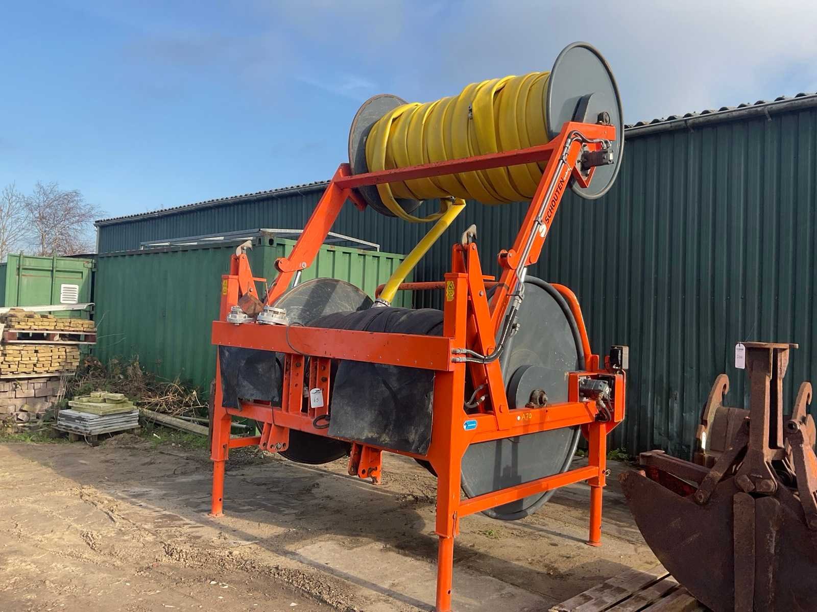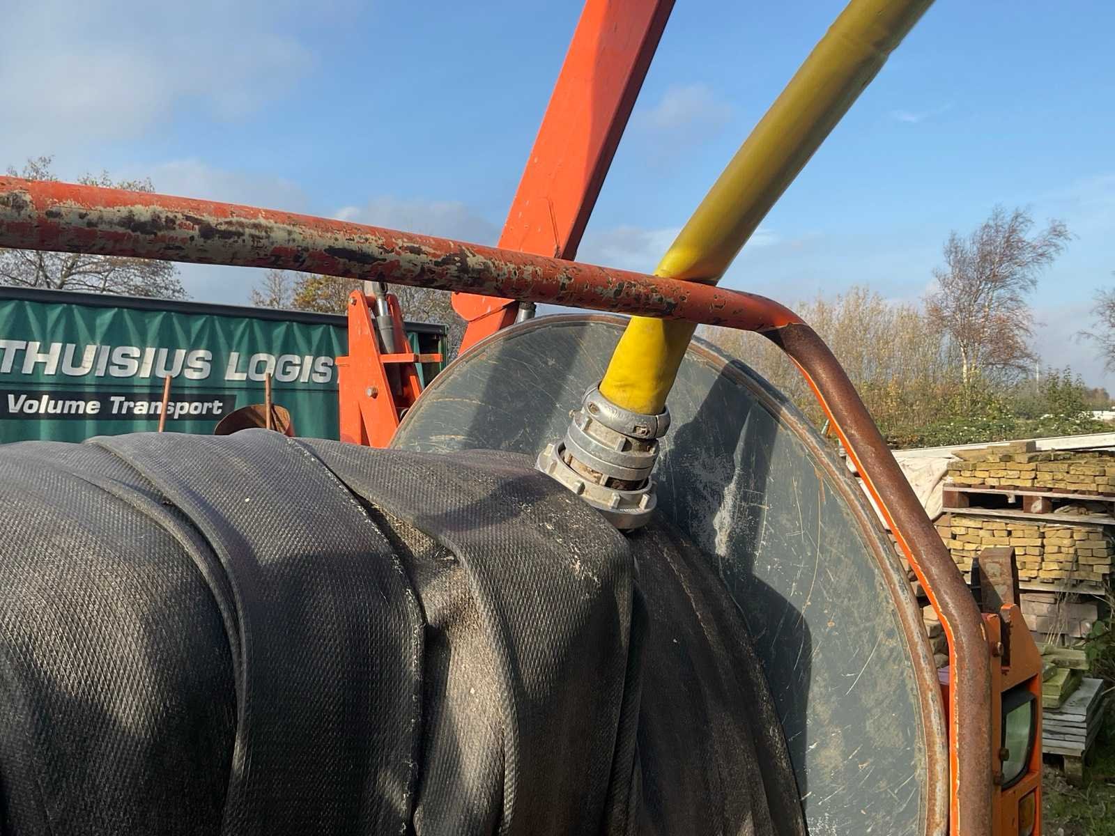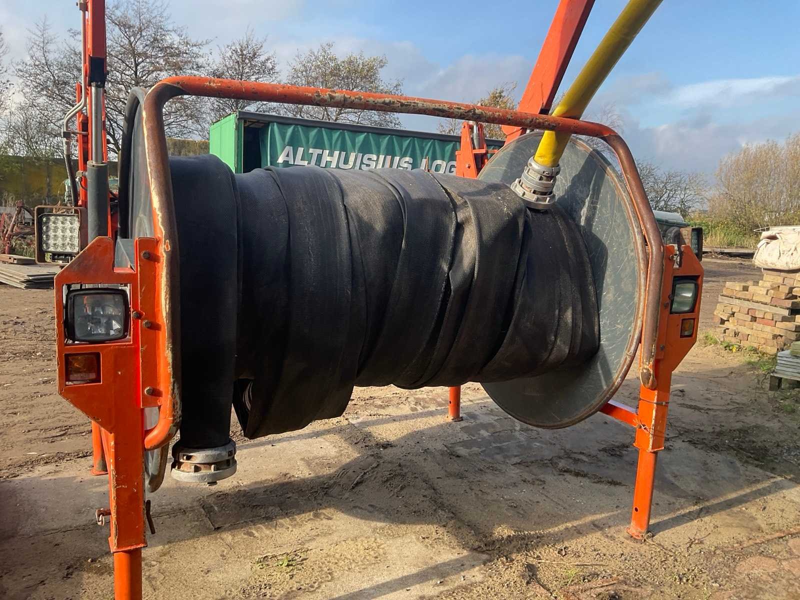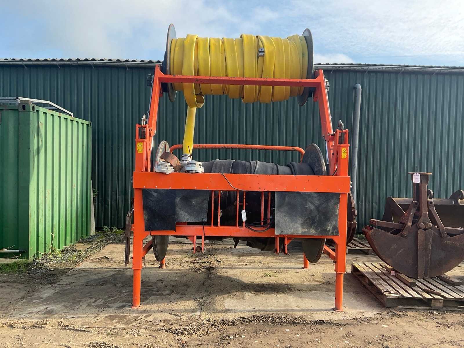 Circa 360 mtr 6” transportslang, circa 340 mtr 4” sleepslang, driepunt aansluiting, hydraulische aandrijving, trekhaak, verlichting, dubbele rol snelheid, Merk: Schouten Totale afmeting L: 2600mm Totale afmeting Breedte: 1800mm Totale afmeting Hoogte: 3500mm