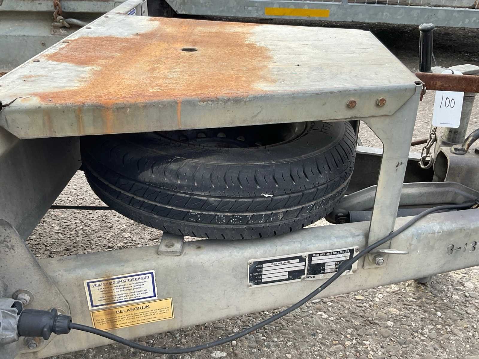 V.v. vaste oprijplaat; lengte ca. 1250 mm Merk: I For Williams Type: GX84 Bouwjaar: 2011 Chassisnummer: SCK60000B0590114 Aantal assen: 2 Laadbak afmeting l: 250cm Laadbak afmeting b: 127cm Ledig gewicht: 500kg Laadvermogen: 2200kg Datum eerste toelating: 2011-06-23 Datum eerste toelating (NL): 2011-06-23 Kenteken: 16-WG-XG